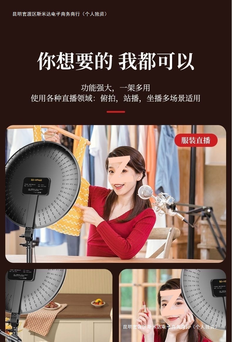 • 1.7m 라이트 스탠드 + 3개의 카메라 위치 + 16CM 전체 화면 조명