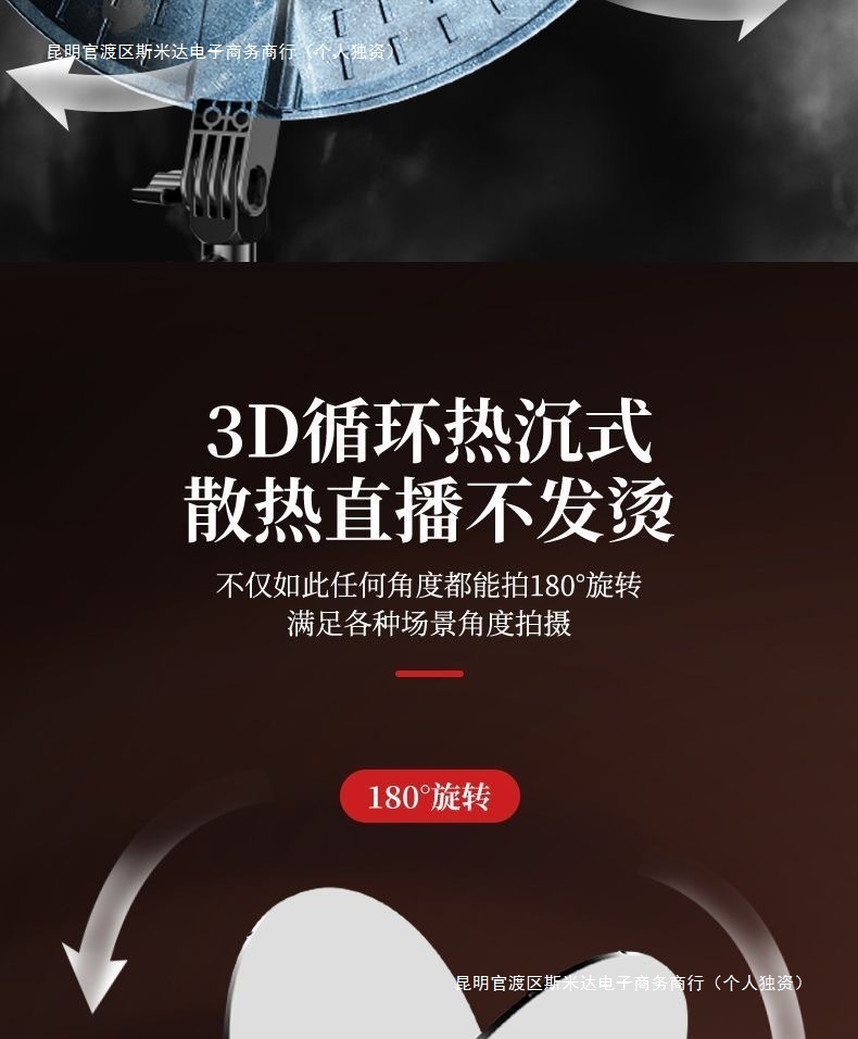 • 2.1m 라이트 스탠드 + 3개의 카메라 위치 + 16CM 전체 화면 조명