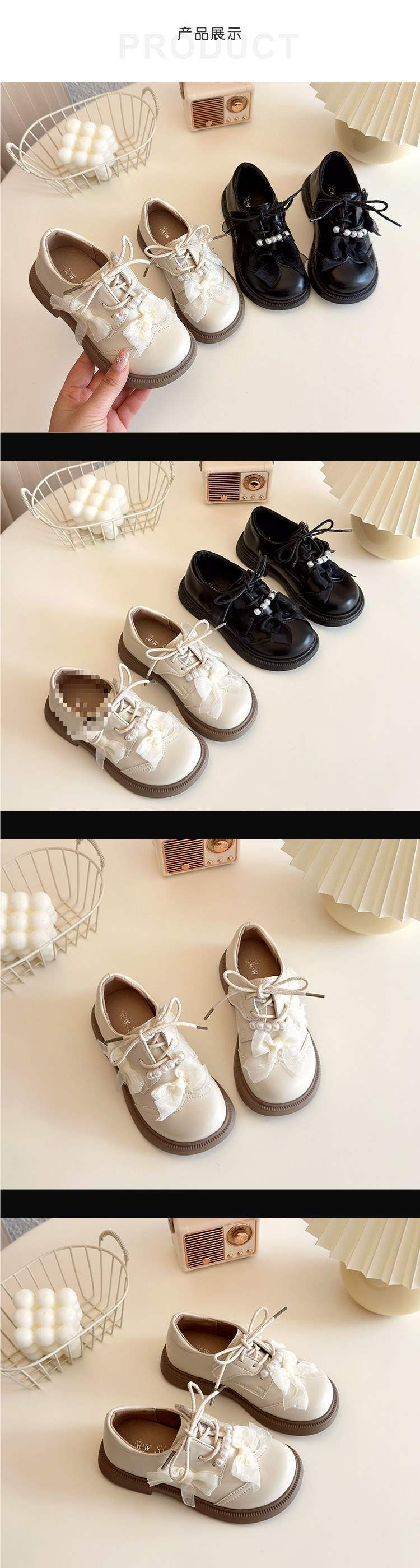 2025 봄 새로운 여자 패션 달콤한 꽃 작은 가죽 신발 어린이 영국 스타일 공주 신발 패션 가죽 신발스토어 가기