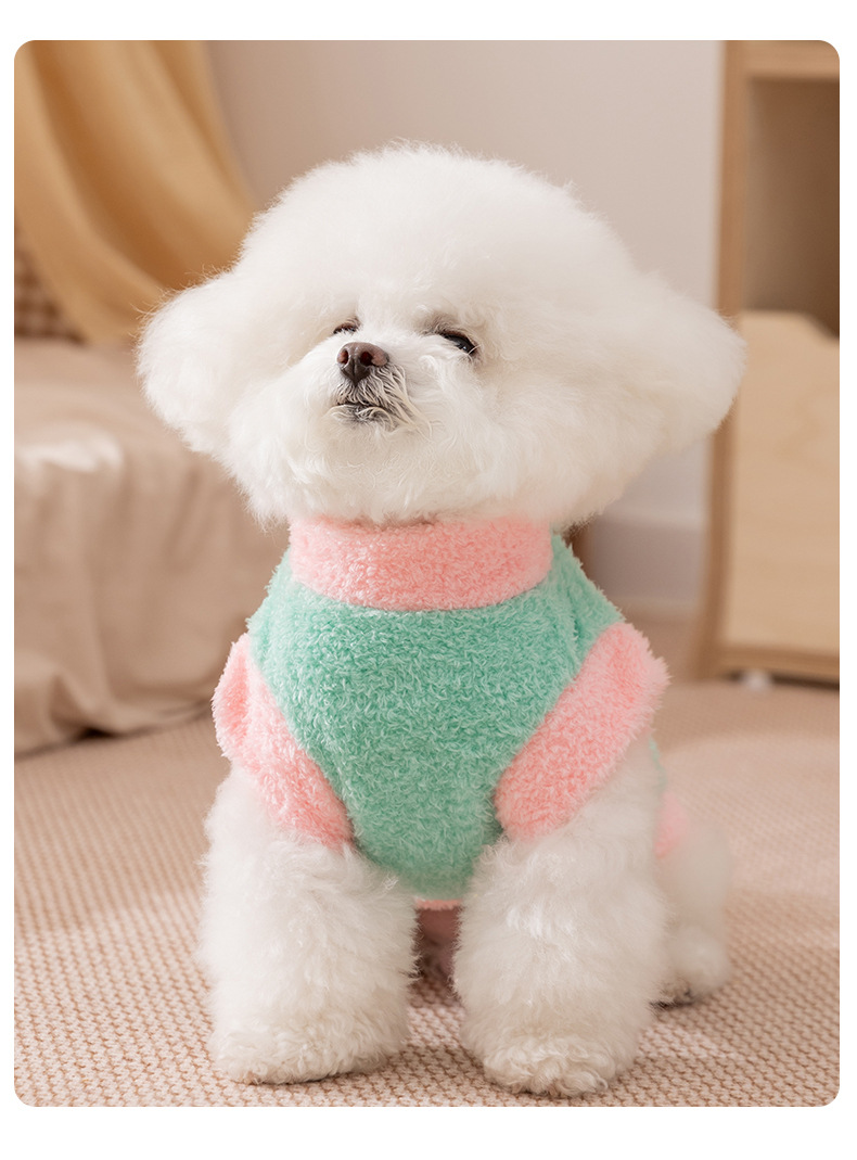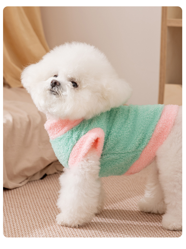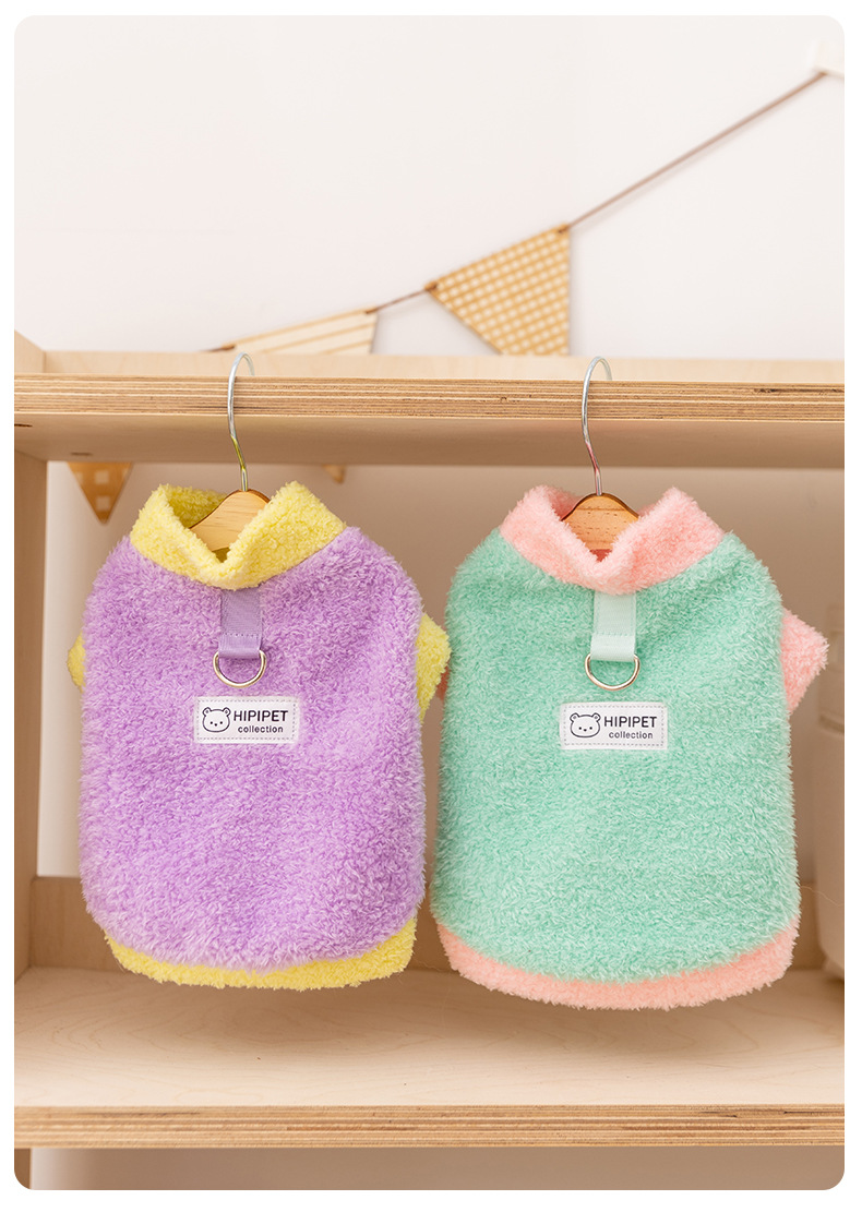가을 겨울 강아지 심플 배색 플리스 옷 테디 비숑 소형견 고양이 따뜻한 양복 애완동물 옷스토어 가기