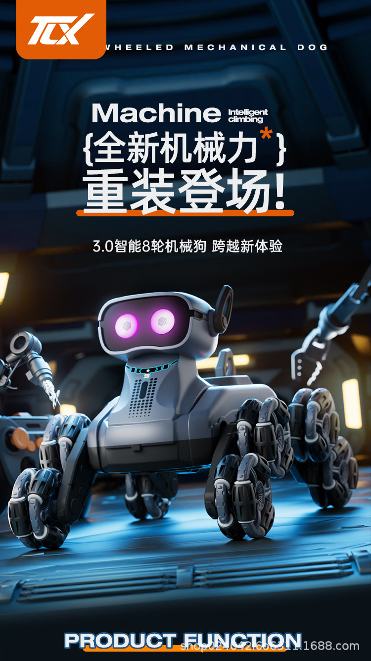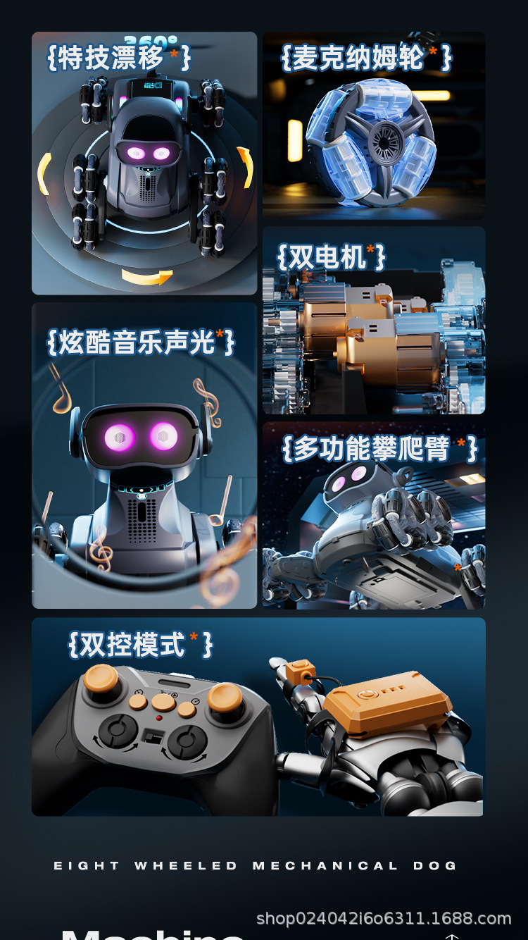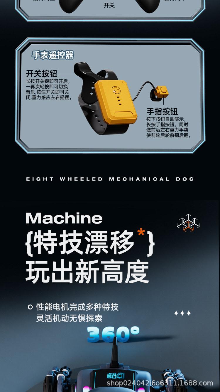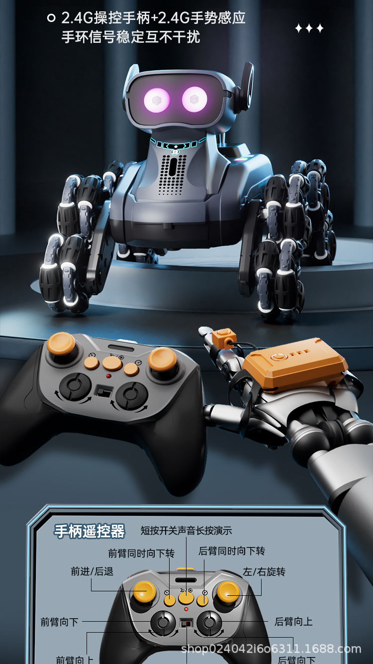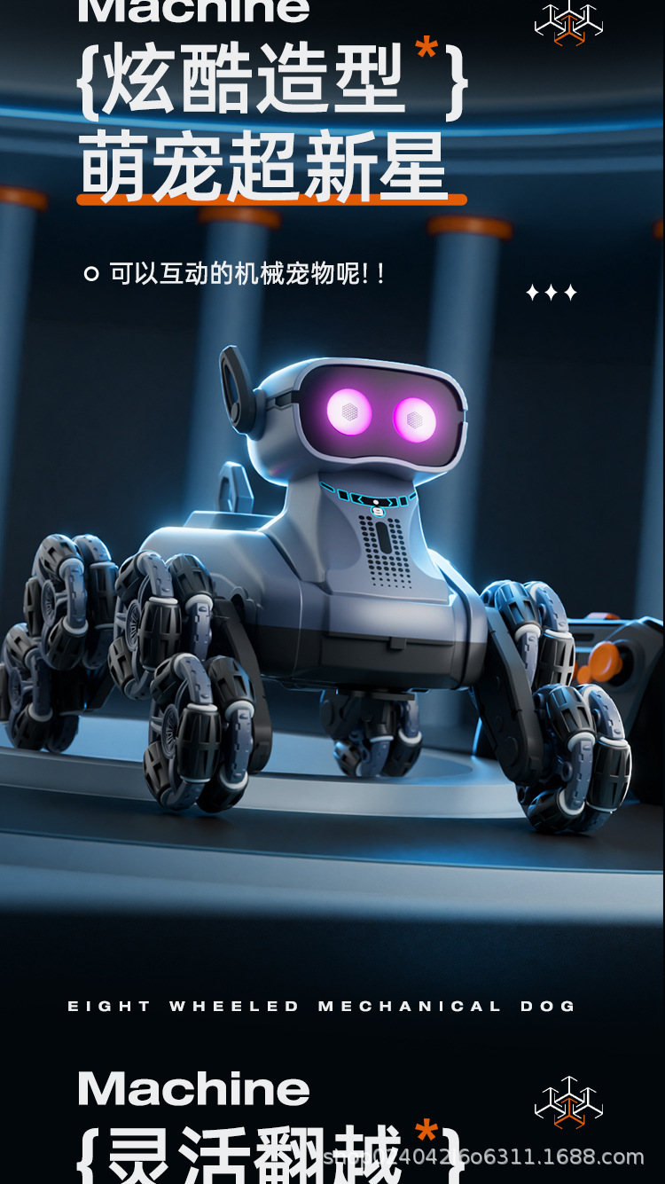 국경 간 어린이 8 륜 원격 제어 스턴트 자동차 드리프트 빛 음악 지능형 로봇 개 장난감 전기 로봇스토어 가기
