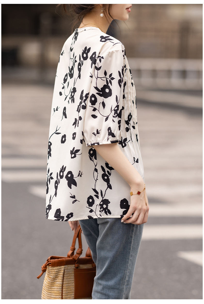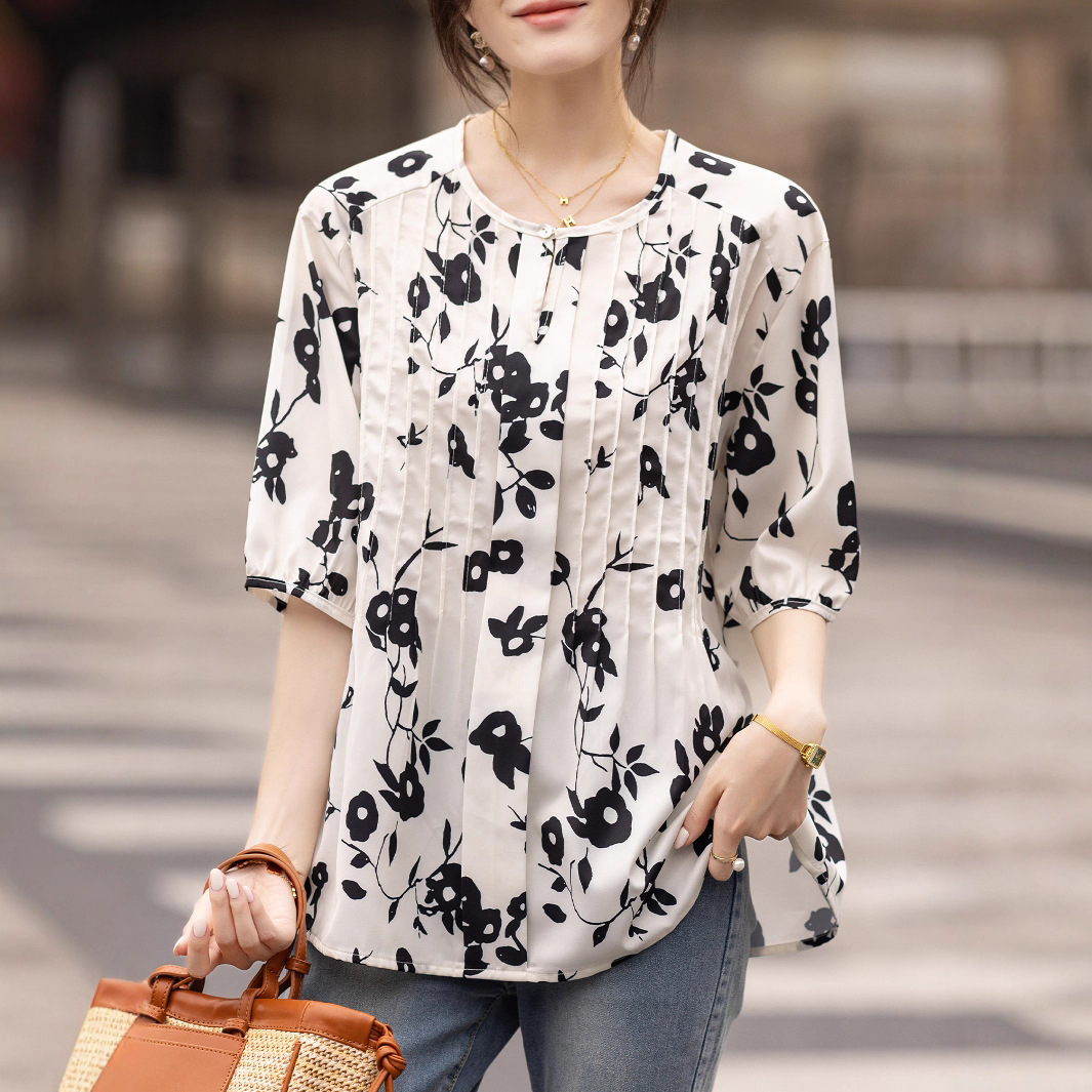 msdm2996 프렌치 하이엔드 쉬폰 프린트 셔츠 2025 여름 신상 슬림 루즈 다용도 탑
