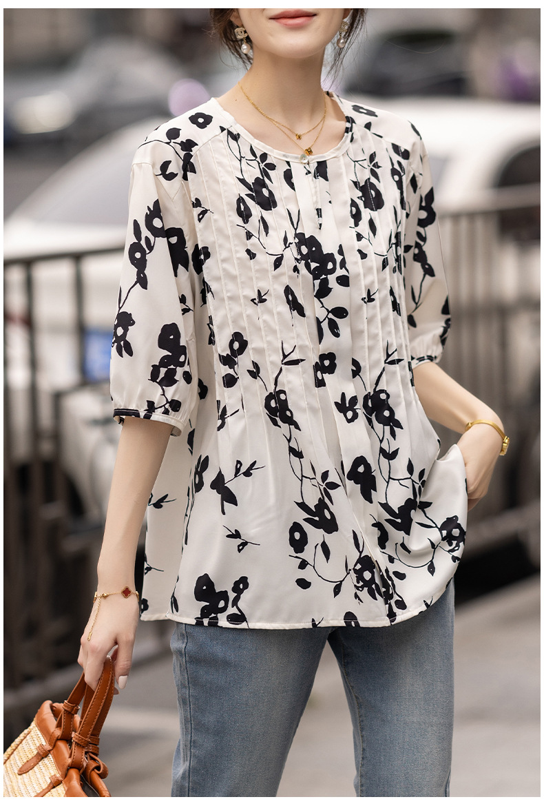 msdm2996 프렌치 하이엔드 쉬폰 프린트 셔츠 2025 여름 신상 슬림 루즈 다용도 탑스토어 가기
