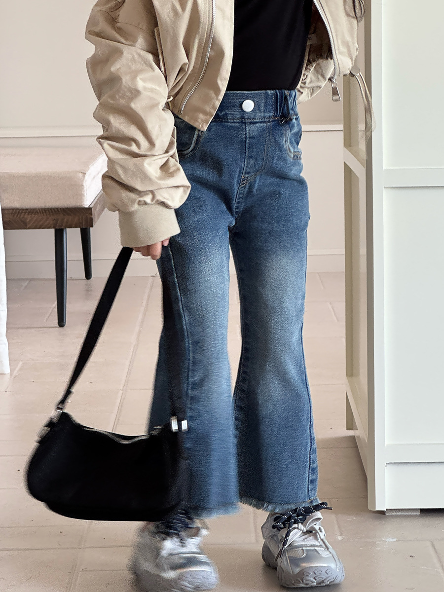 Yuyu Princess Girls 아메리칸 레트로 디스트레스드 청바지 아동용 로우 엣지 스트레치 슬림 플레어 팬츠 마이크로 플레어 팬츠