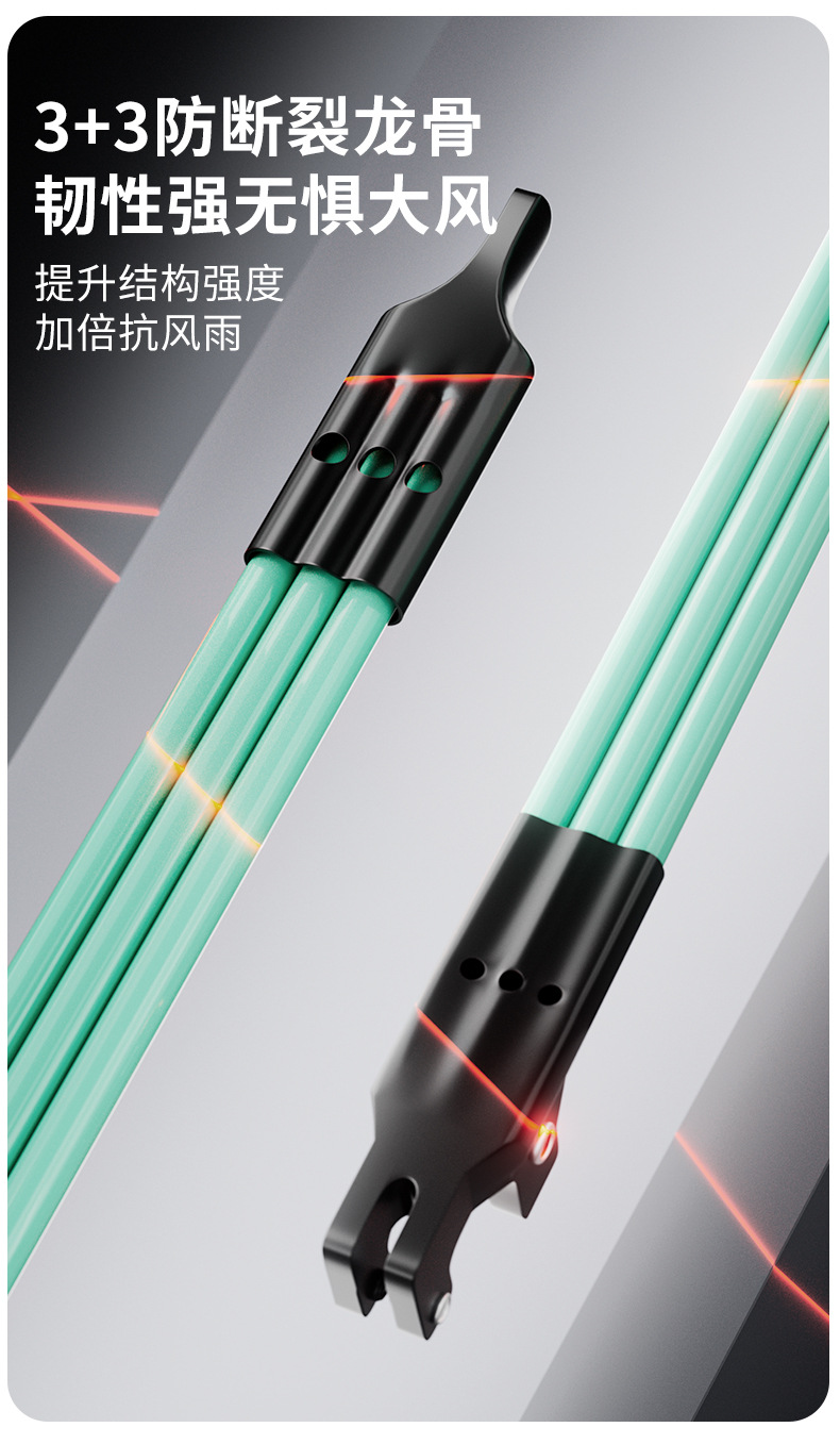 • 완전 자동 10개 강철 뼈 [60개 유리 섬유 뼈 이중 + 두꺼워지고 확대됨 + 접히지 않는 넓은 등반 벨트] - 펄스 그린
