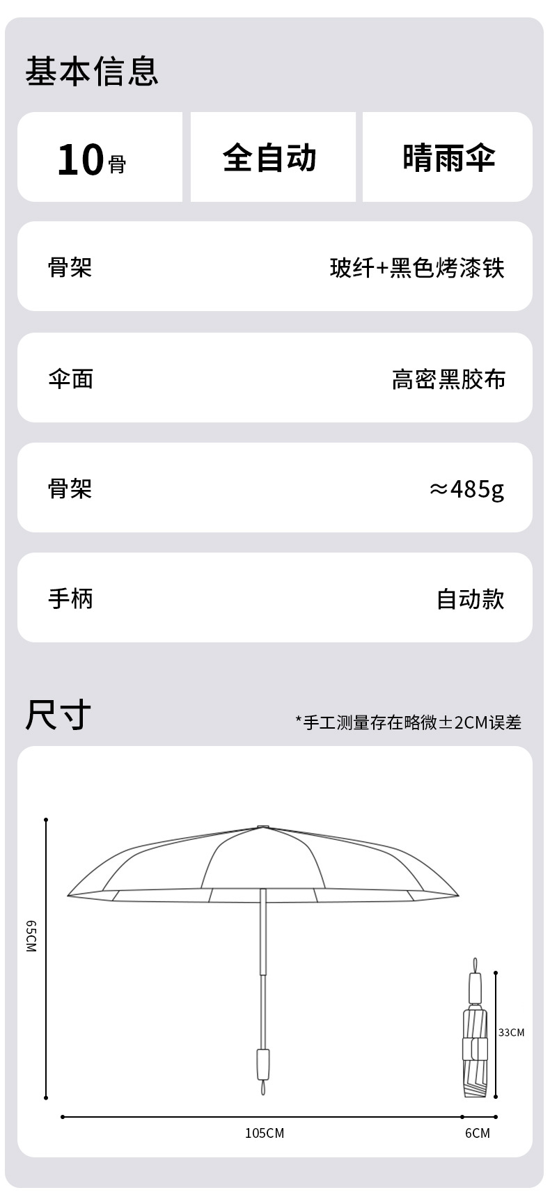 • 전자동 10개 강철 뼈 [60개 유리 섬유 뼈 이중 + 두꺼워지고 확대됨 + 접히지 않는 넓은 등반 벨트] - Zhizi 분말