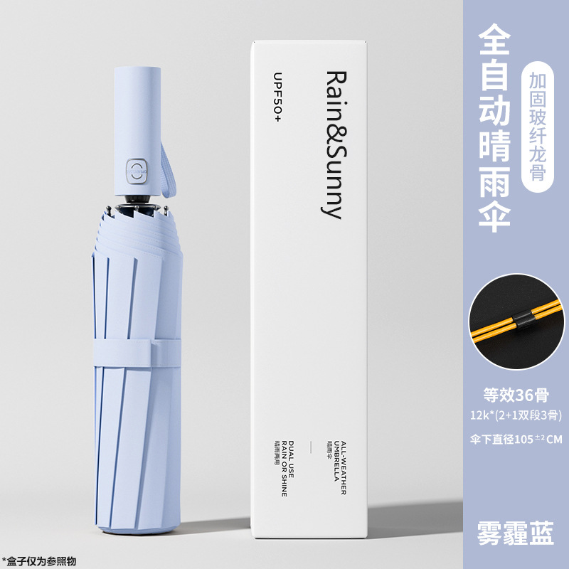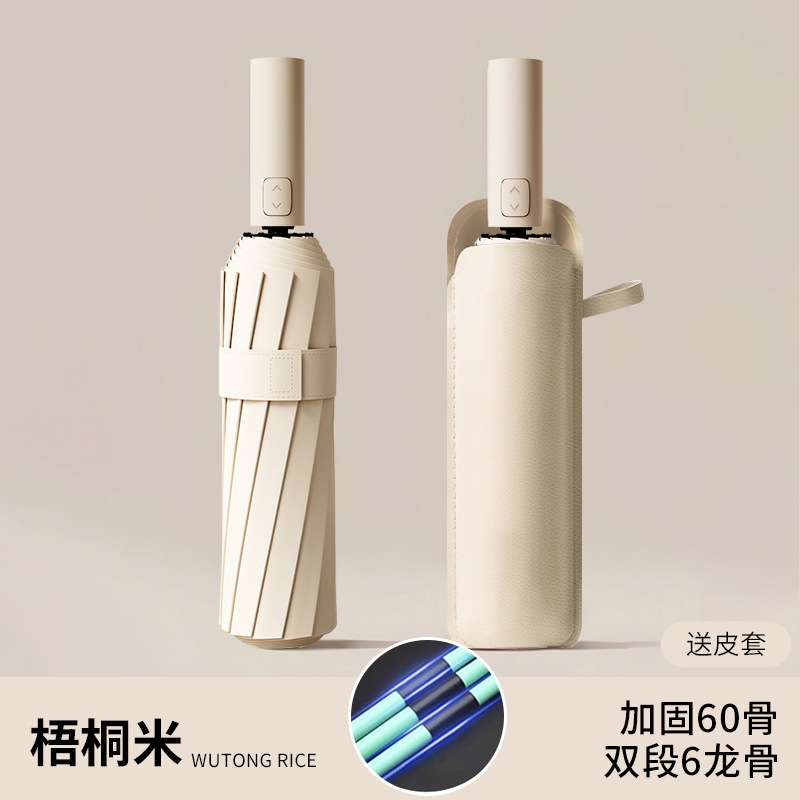 테크놀로지 스타일 자동 접이식 강화 폭풍우 방지 우산 두꺼워지고 더 큰 비 또는 빛 양산 우산 태양 보호 우산
