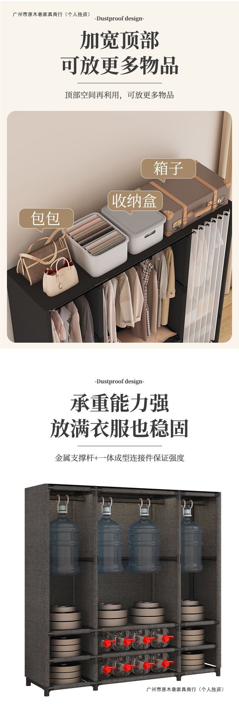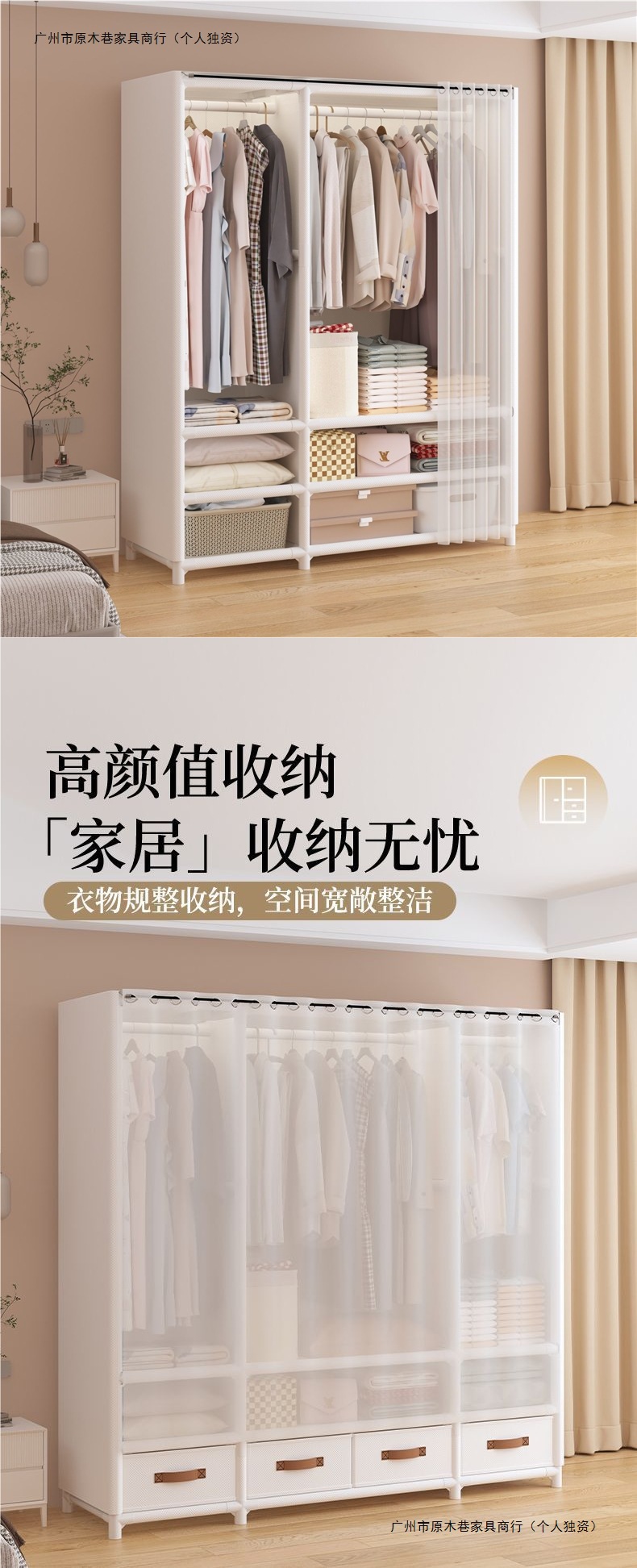 • 기간 한정 이벤트 가격, 다층 대용량 + 옷장레일 + 방진커튼