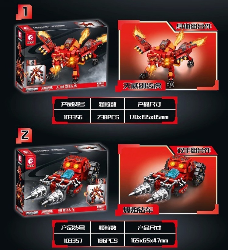 센바오 블록 철제 메카 시리즈 불꽃 호랑이 전사 디엔웨이 통합 로봇 소년용 교육용 퍼즐 레고와 호환