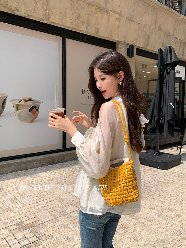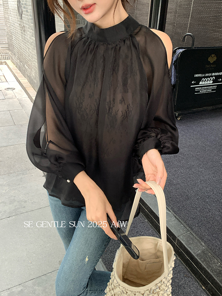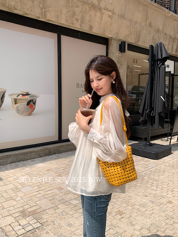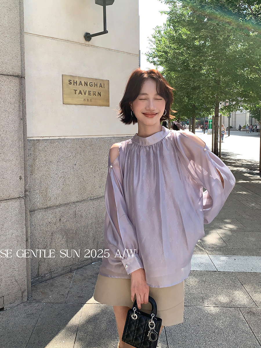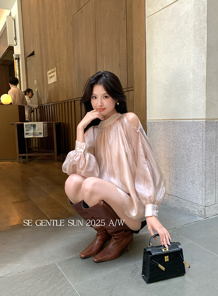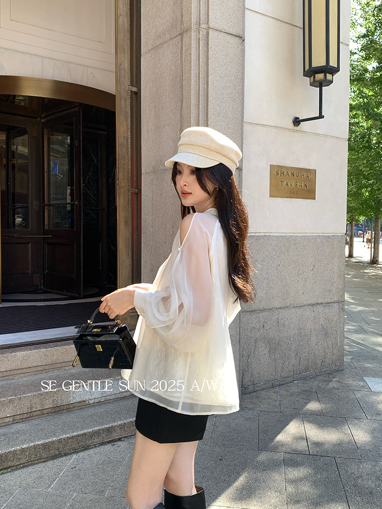 Xiuxixi 2025 가을 화이트 라벨 한국 스타일 다목적 기질 레이스 업 쉬폰 긴팔 셔츠 여성상의 89490