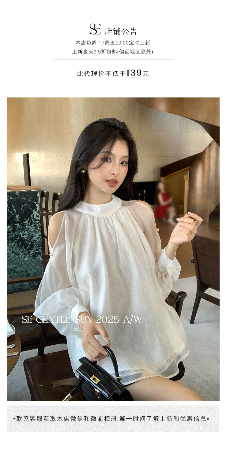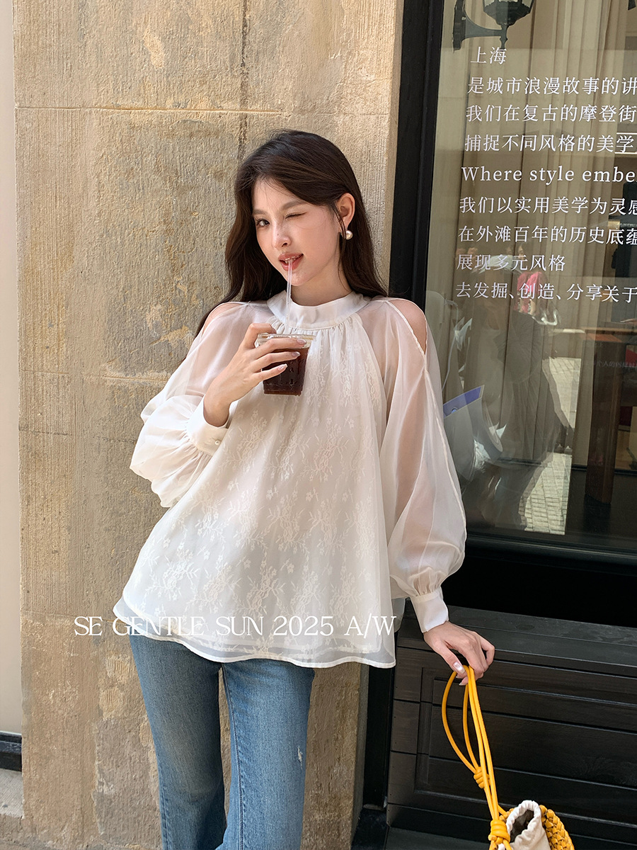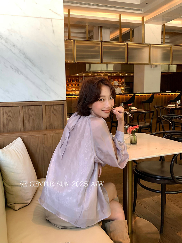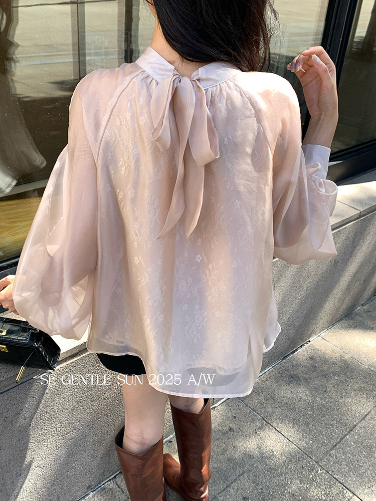 Xiuxixi 2025 가을 화이트 라벨 한국 스타일 다목적 기질 레이스 업 쉬폰 긴팔 셔츠 여성상의 89490스토어 가기