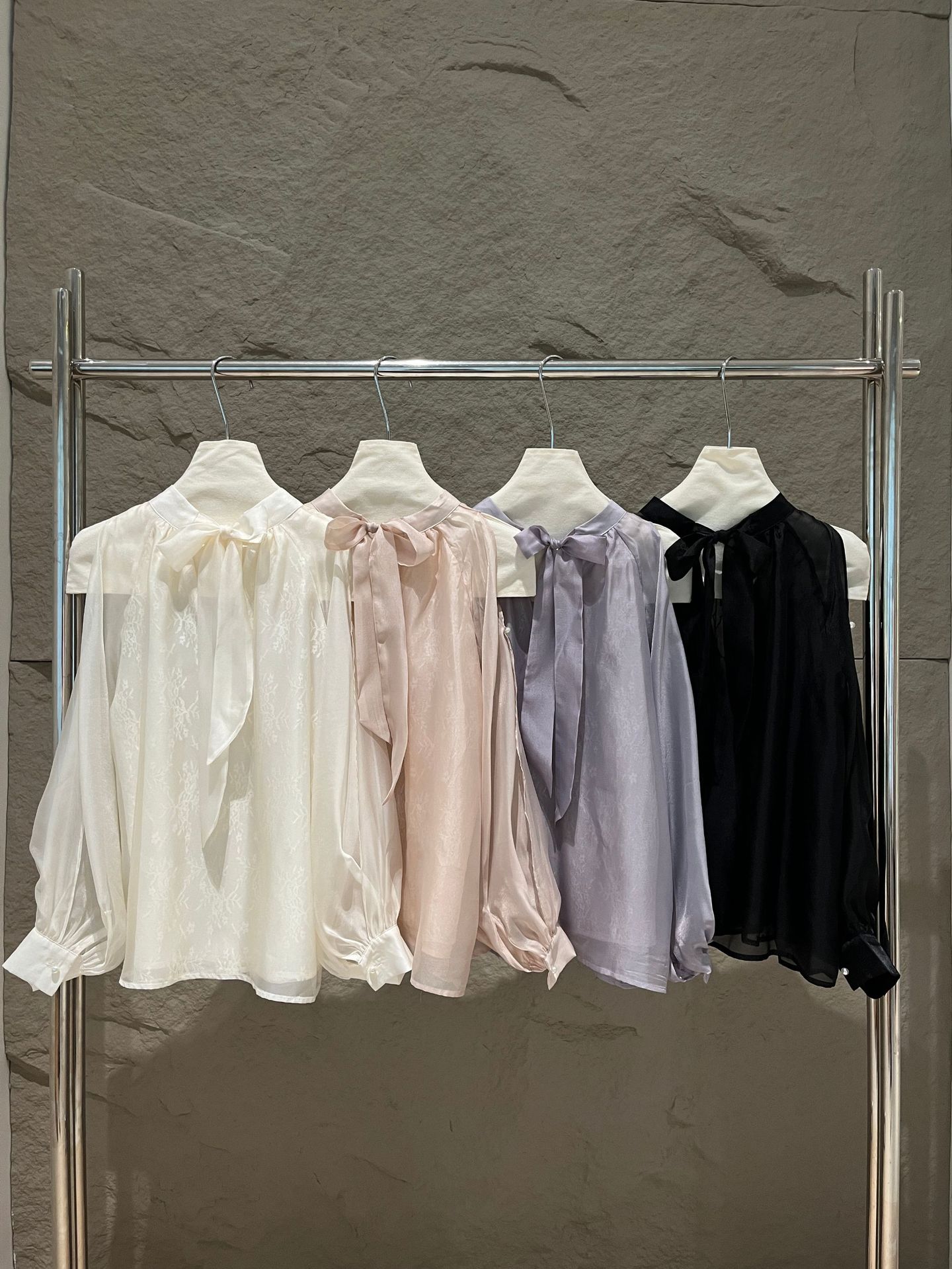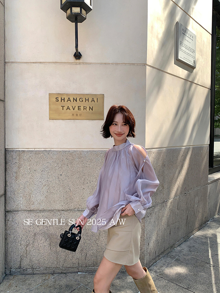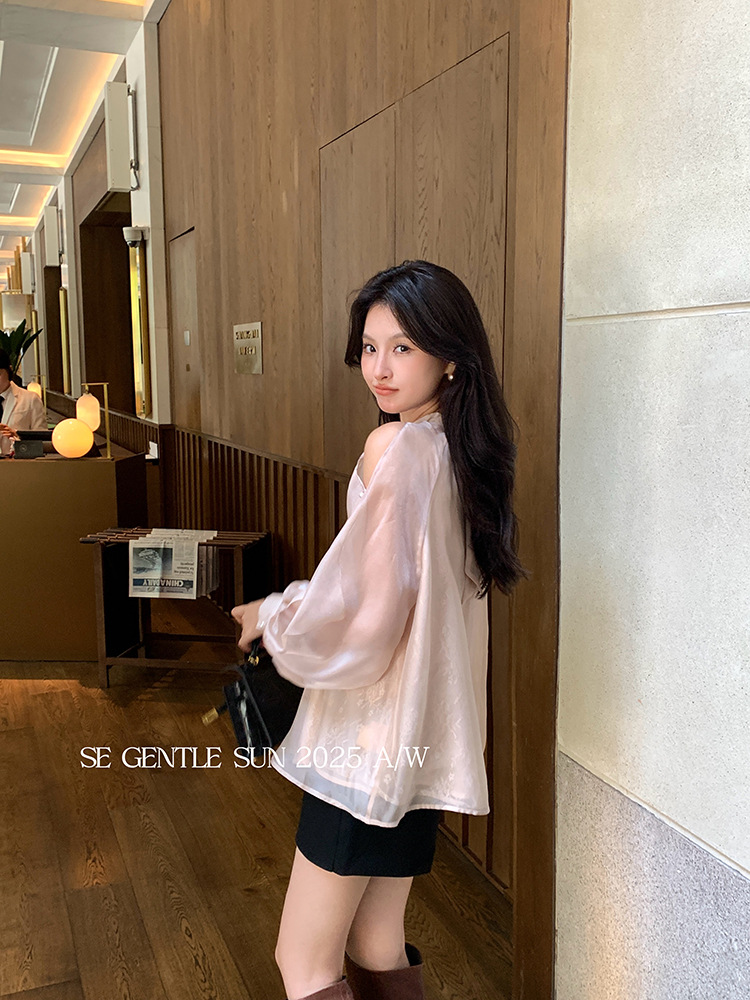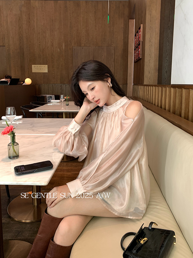 Xiuxixi 2025 가을 화이트 라벨 한국 스타일 다목적 기질 레이스 업 쉬폰 긴팔 셔츠 여성상의 89490스토어 가기