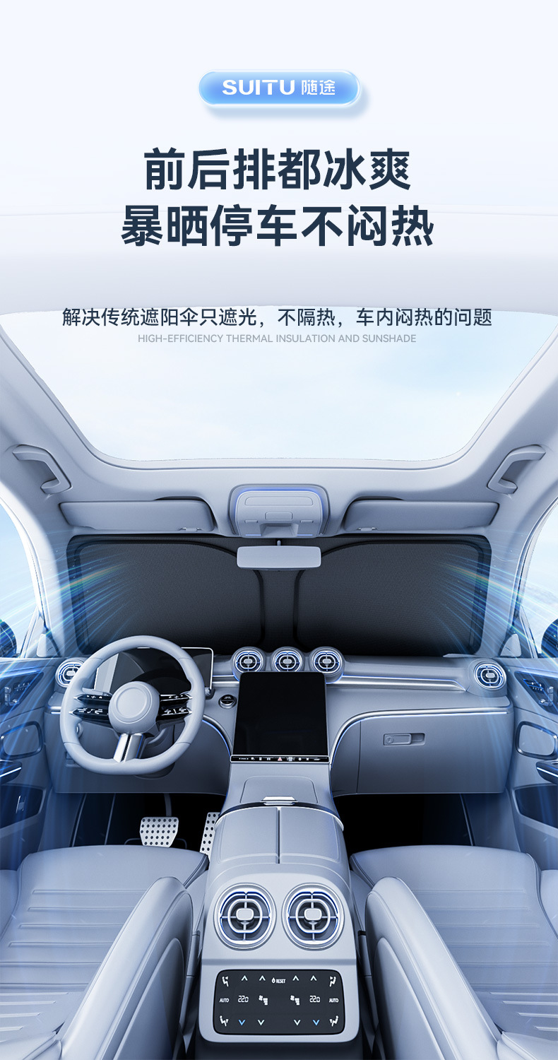 强烈的阳光从侧窗直射进来,不仅刺眼,影响驾车,难以忍受,高温还会损坏到车内的真皮内饰,本遮阳挡,有效隔热及高温照射,方便使用!