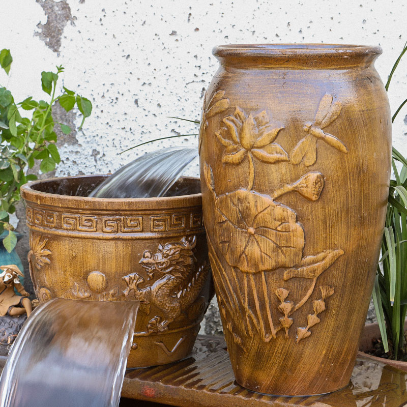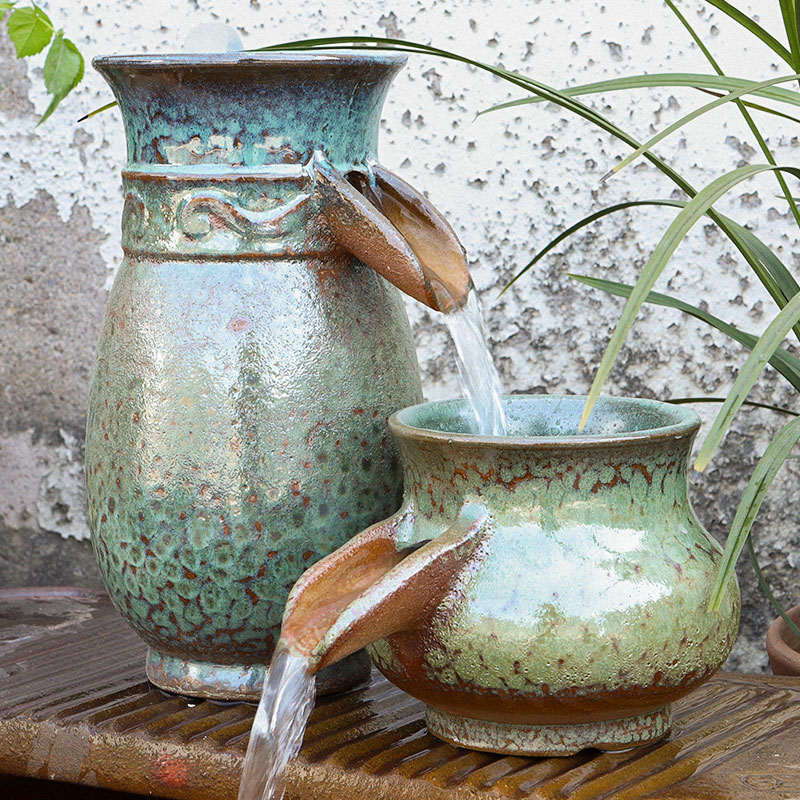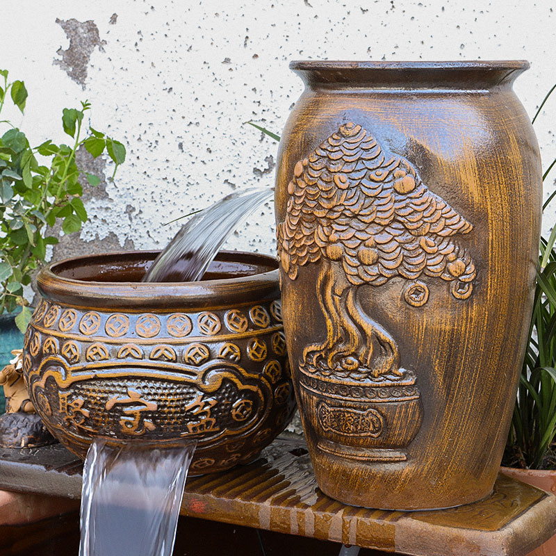 순환수 도자기 항아리 장식품, 고대 방식의 수조 및 연못 조경, 생태 폭포 필터, 어류 사육 도자기 풀 세트스토어 가기