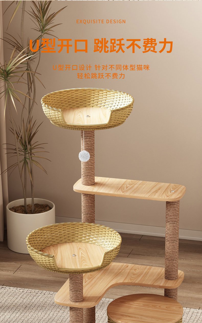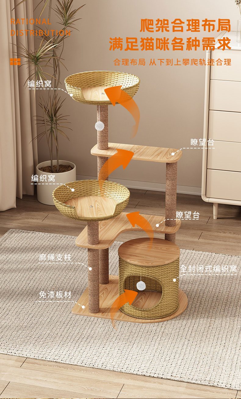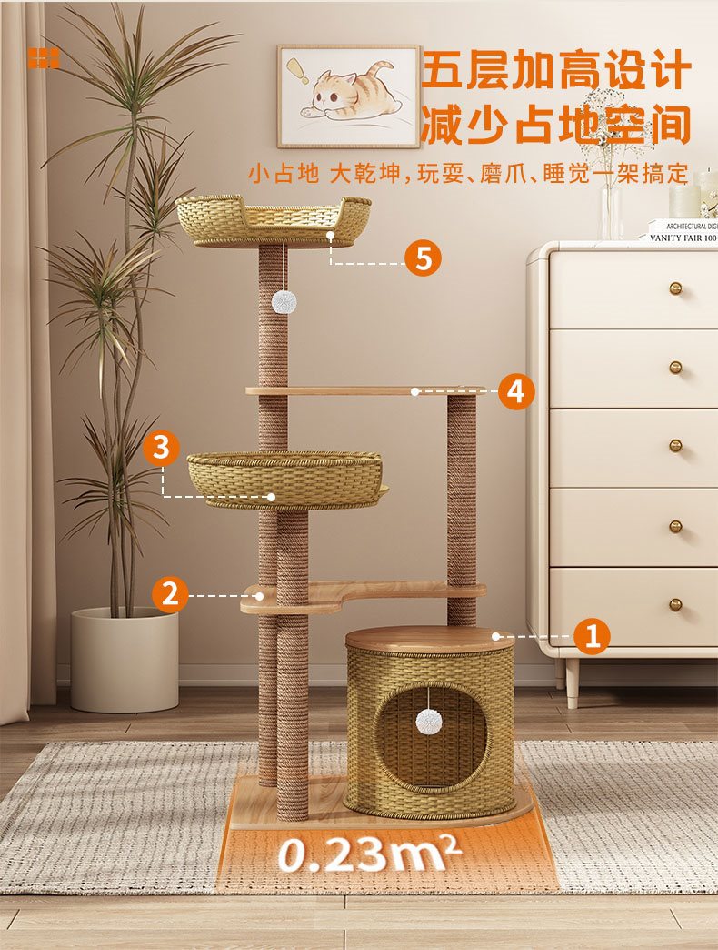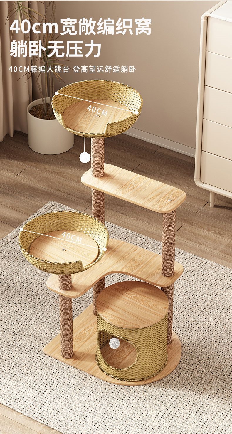 등나무 고양이 클라이밍 프레임, 고양이 둥지, 고양이 트리, 일체형 다중 고양이 장난감, 고양이 스크래치 보드, 사이잘라 대형 클라이밍 컬럼, 고양이 스크래치 트리