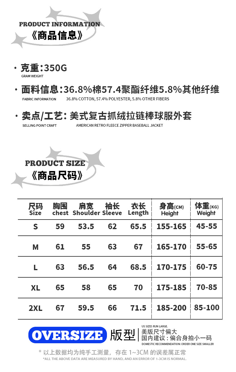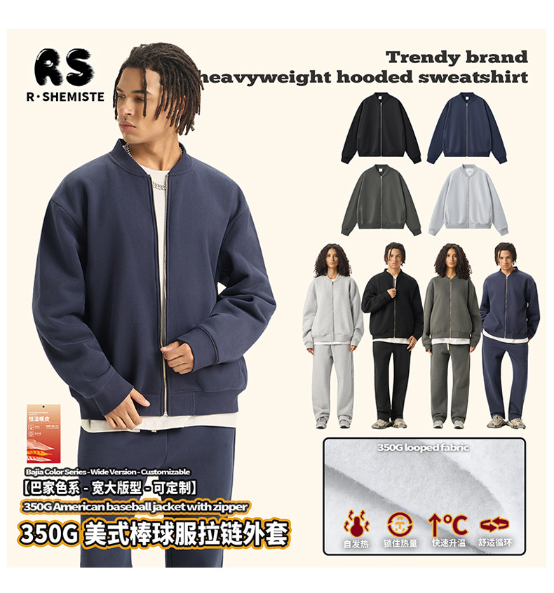 RS 남성복 | 크로스보더 올드 머니 스타일 야구 유니폼 클린핏 플리스 350G 아메리칸 지퍼 재킷 남성용