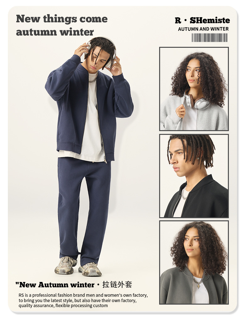 RS 남성복 | 크로스보더 올드 머니 스타일 야구 유니폼 클린핏 플리스 350G 아메리칸 지퍼 재킷 남성용스토어 가기