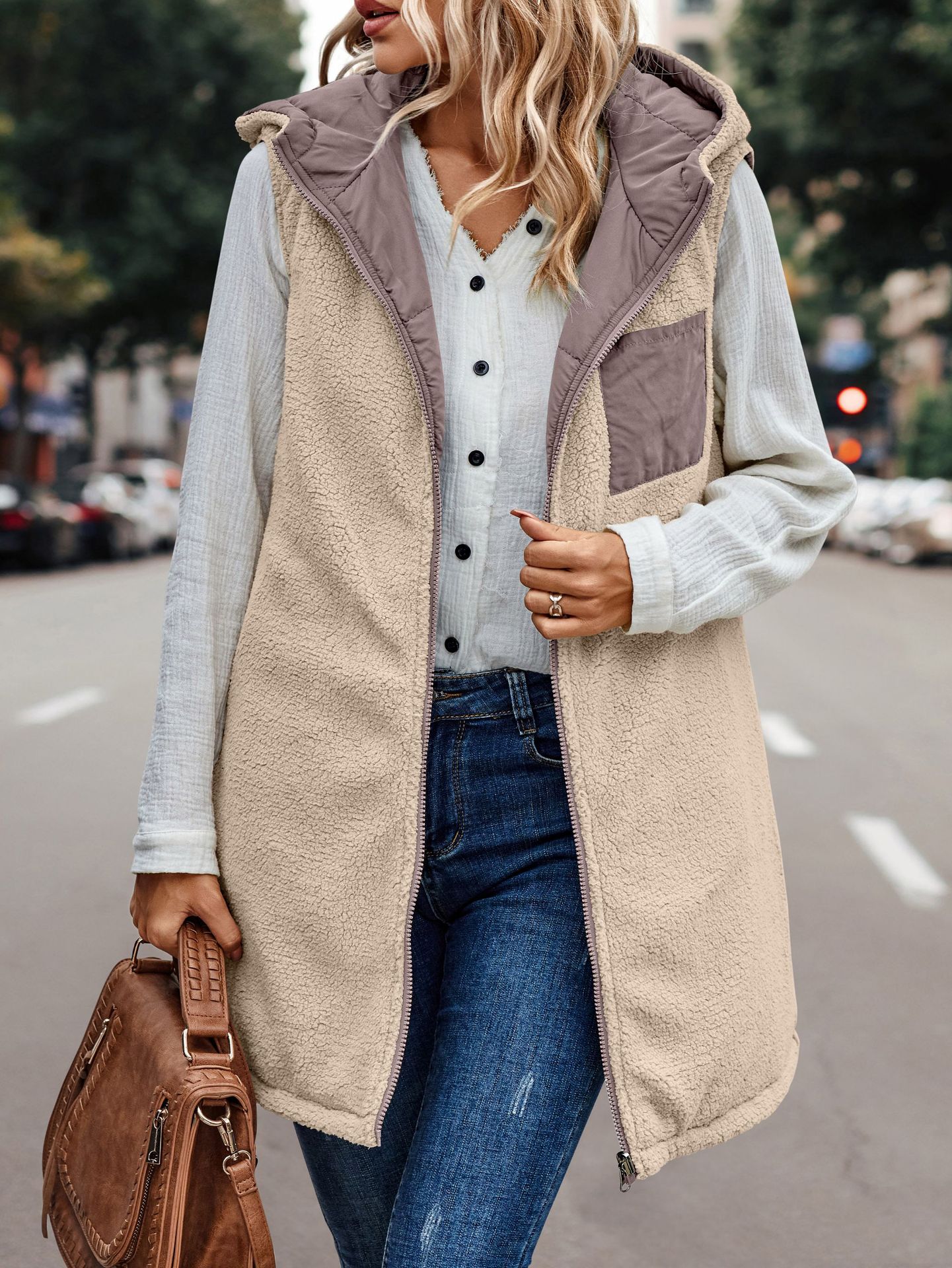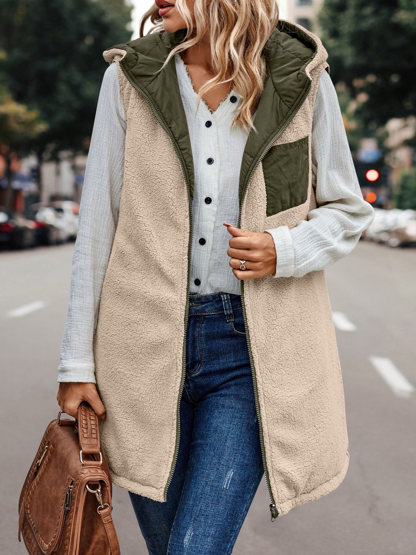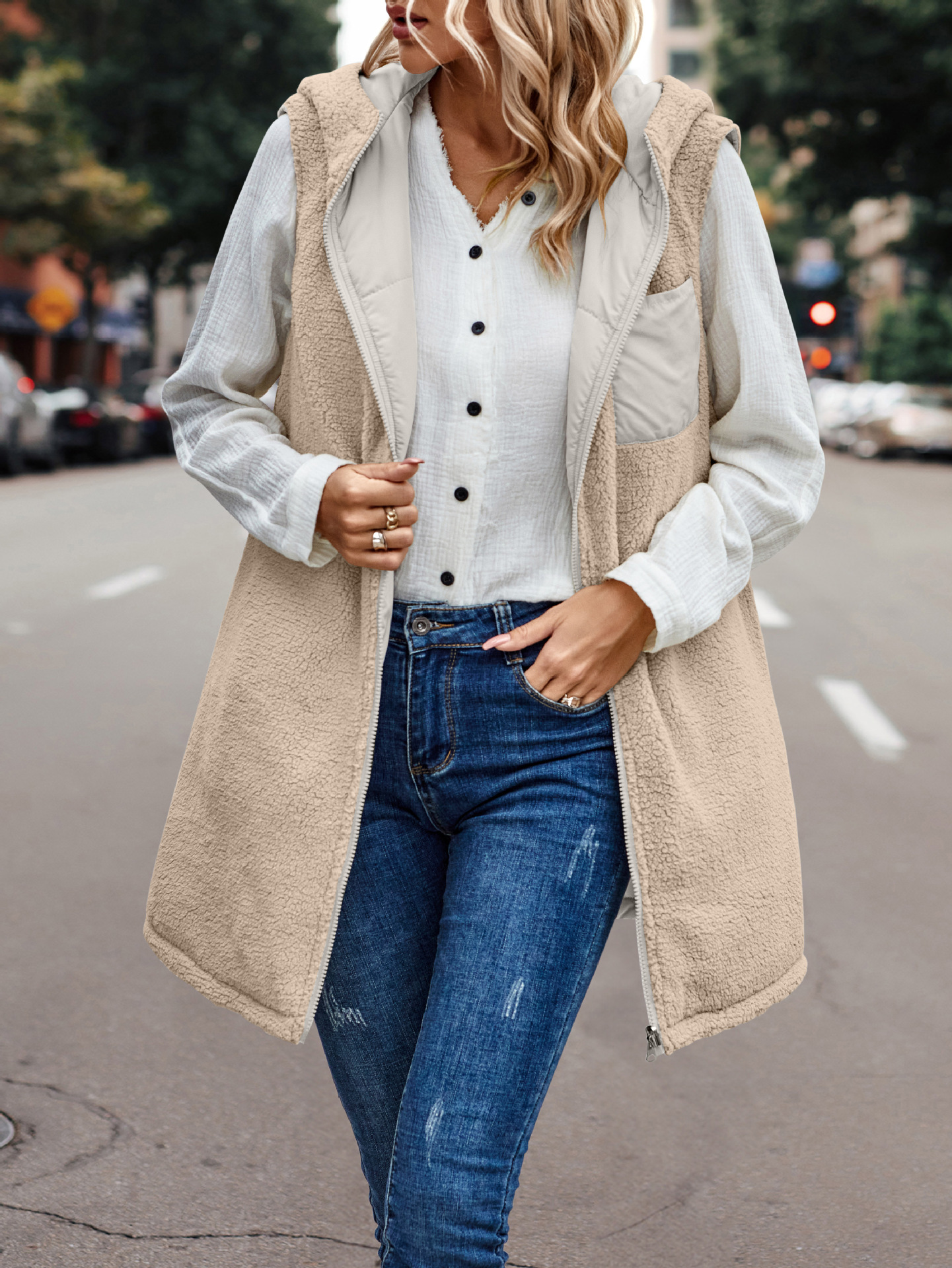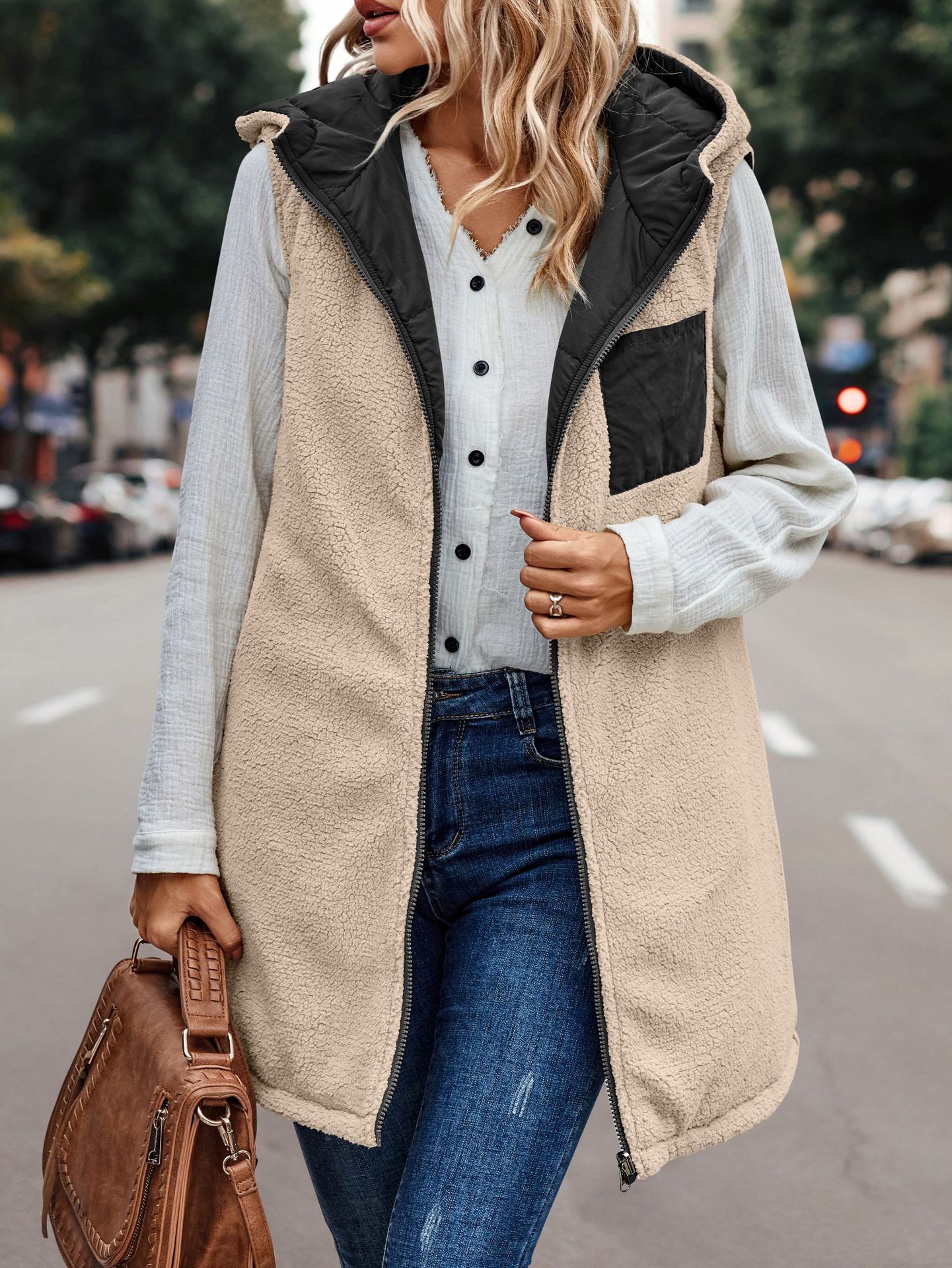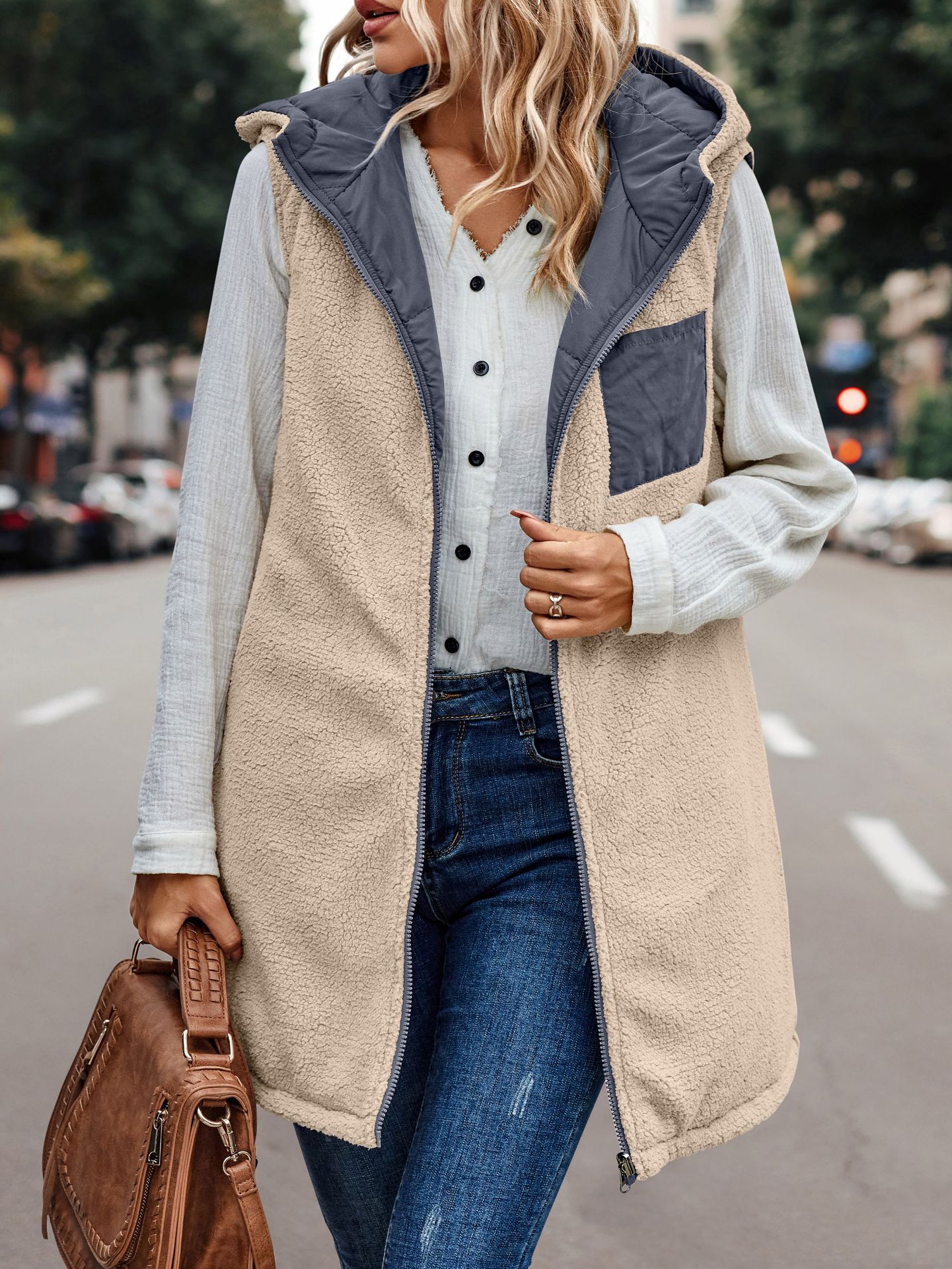 Amazon Supply 2023 패셔너블하고 심플한 스플라이스 플러시 리버시블 여성용 조끼 후드 DWT0108285