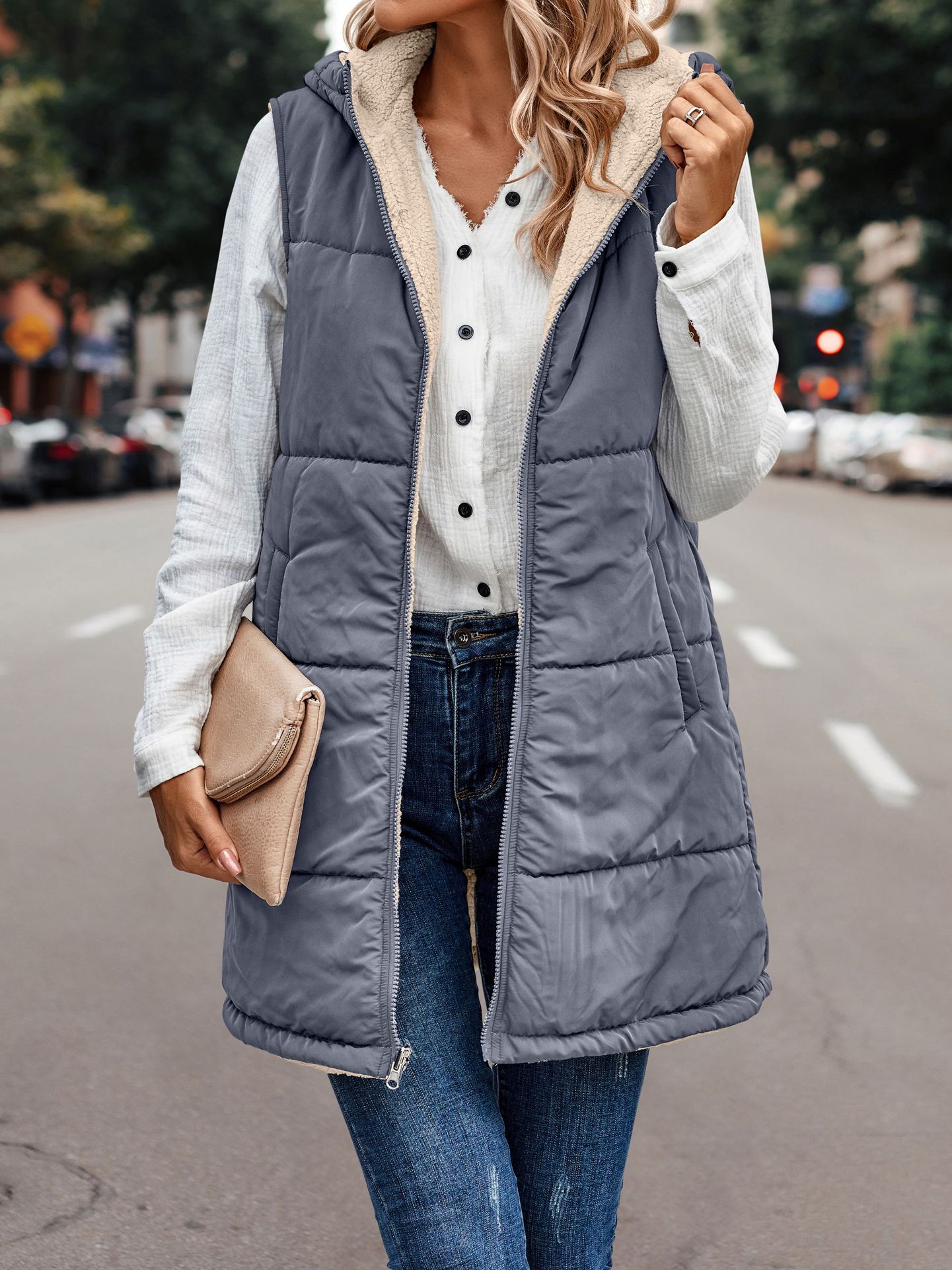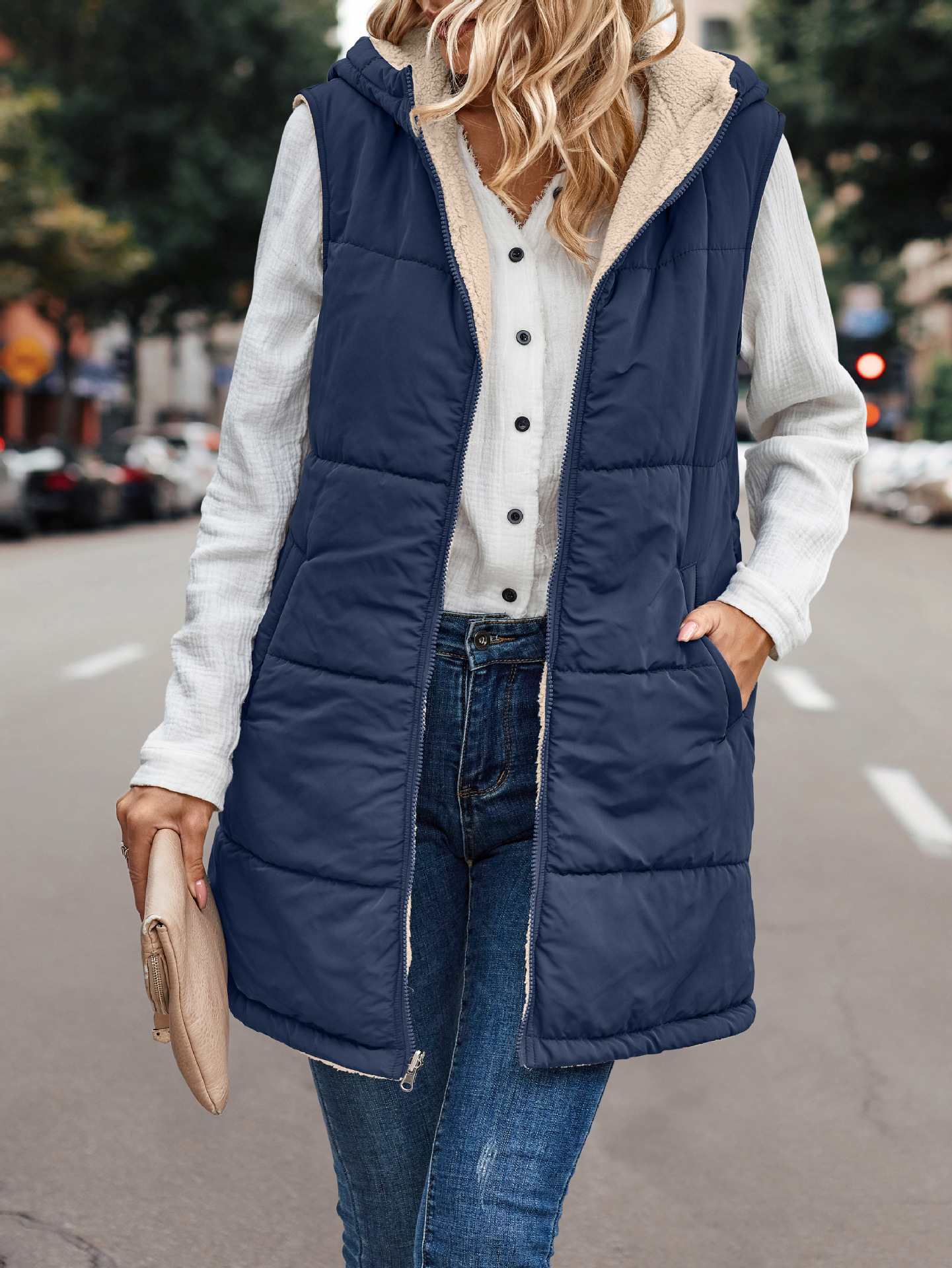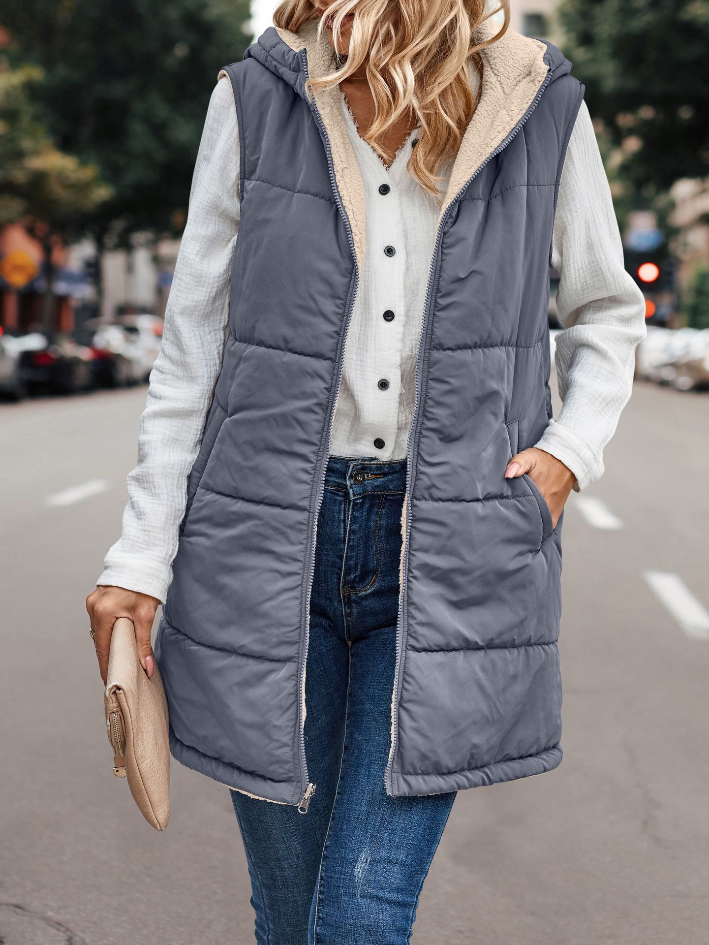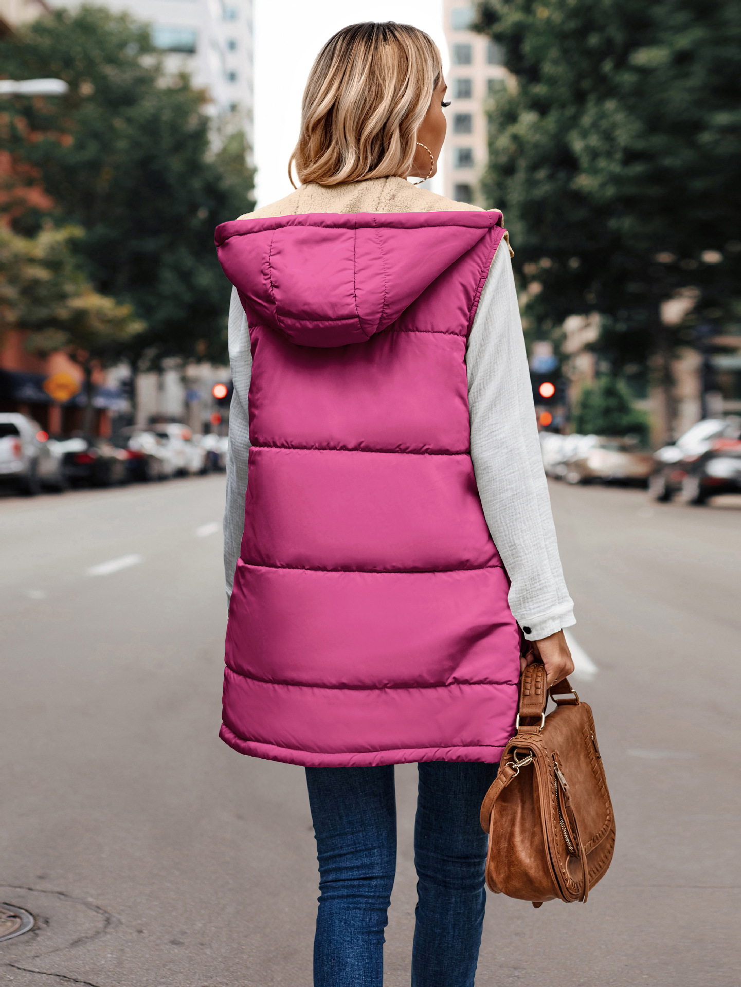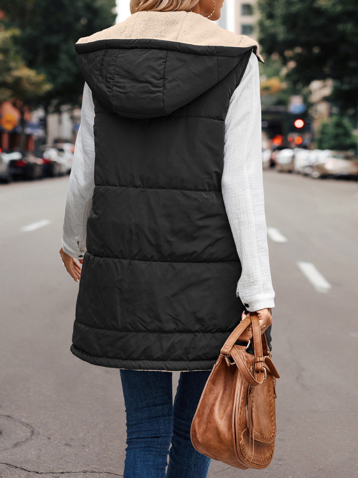 Amazon Supply 2023 패셔너블하고 심플한 스플라이스 플러시 리버시블 여성용 조끼 후드 DWT0108285