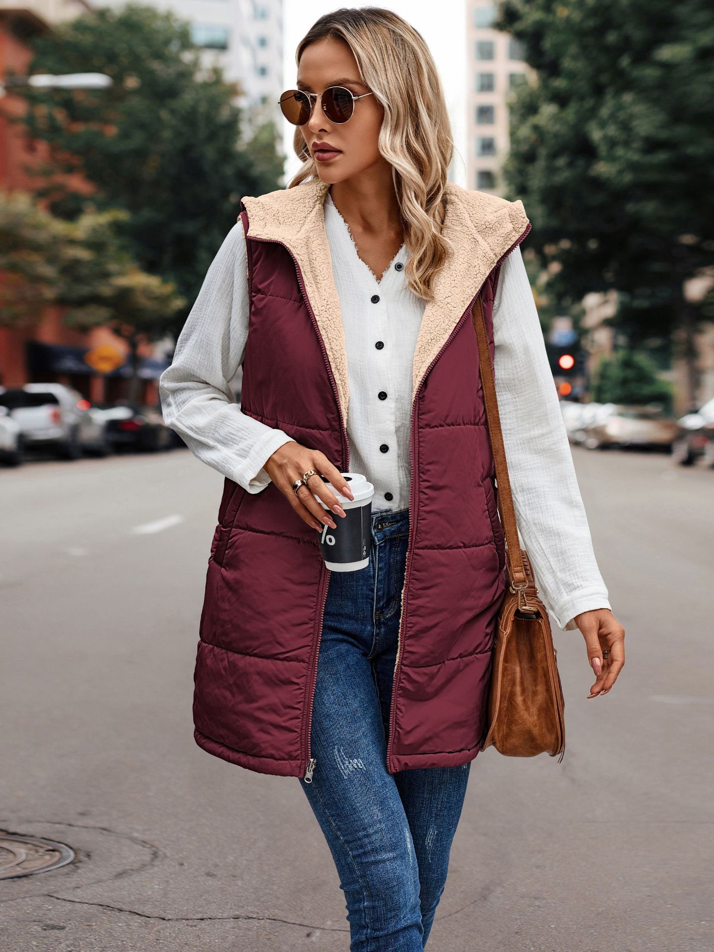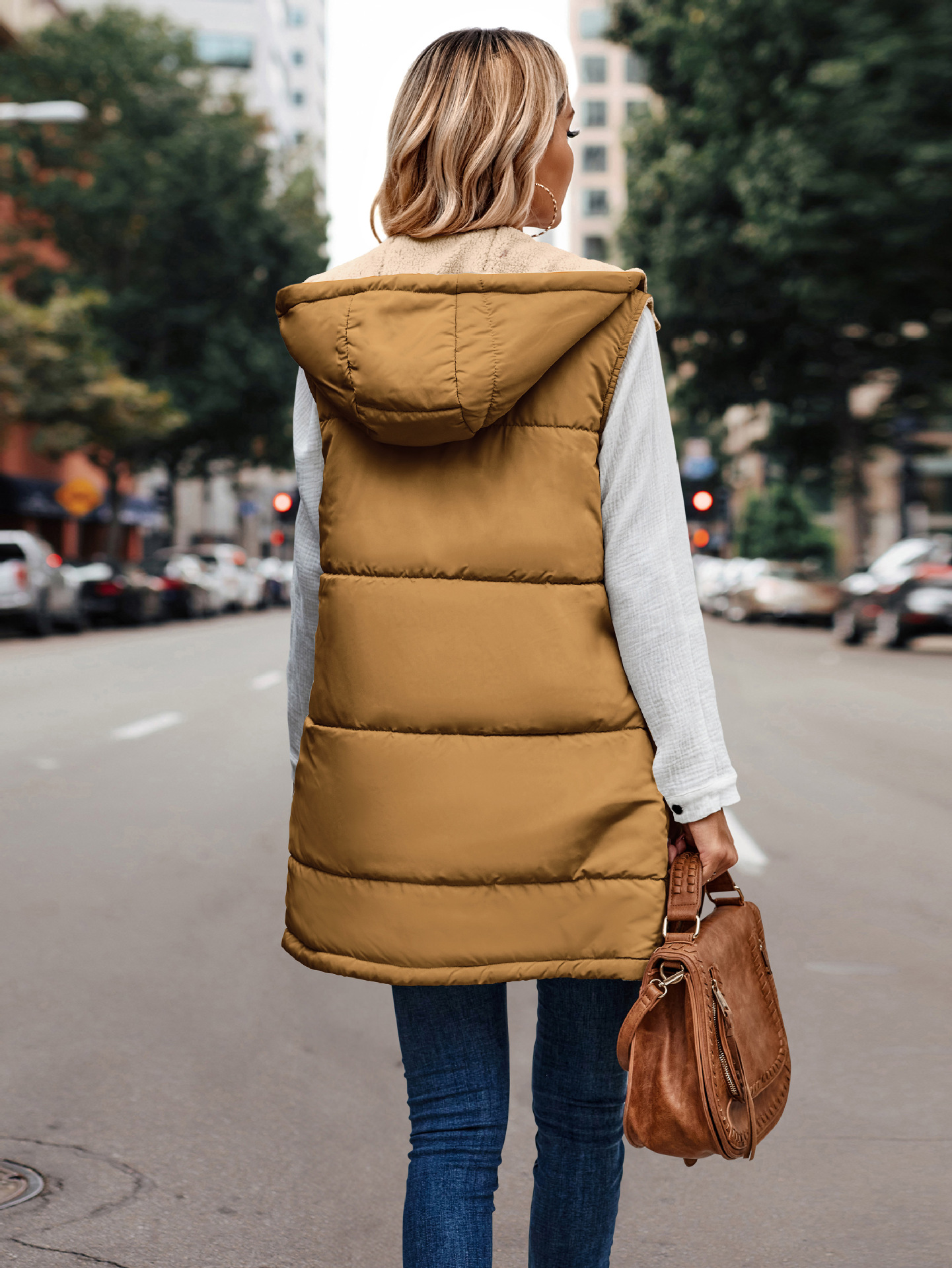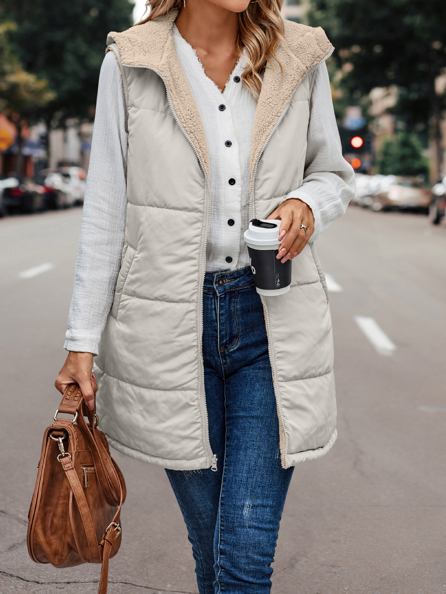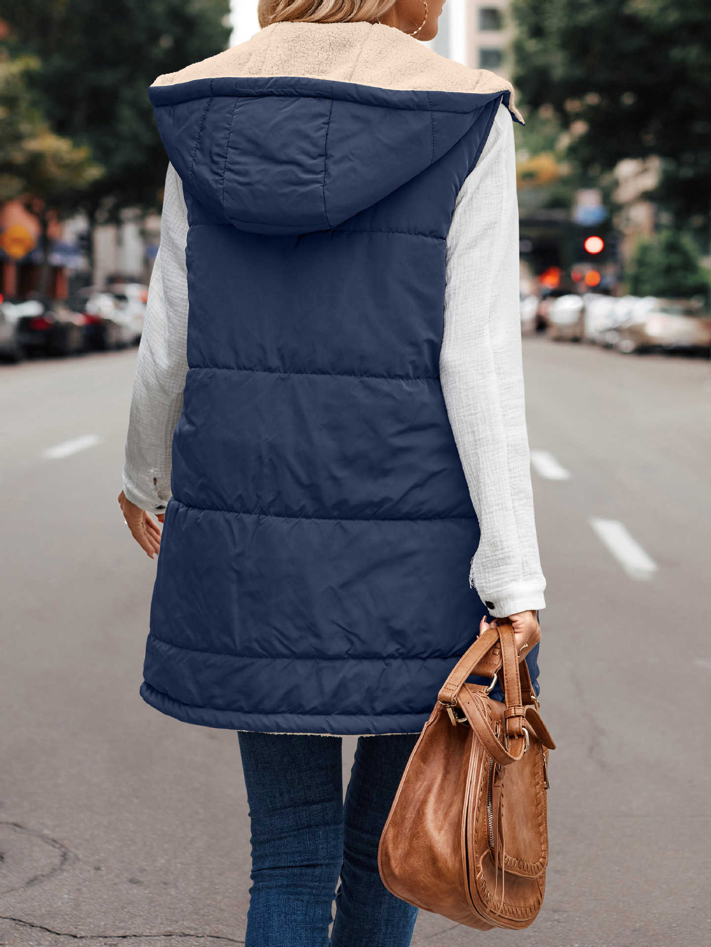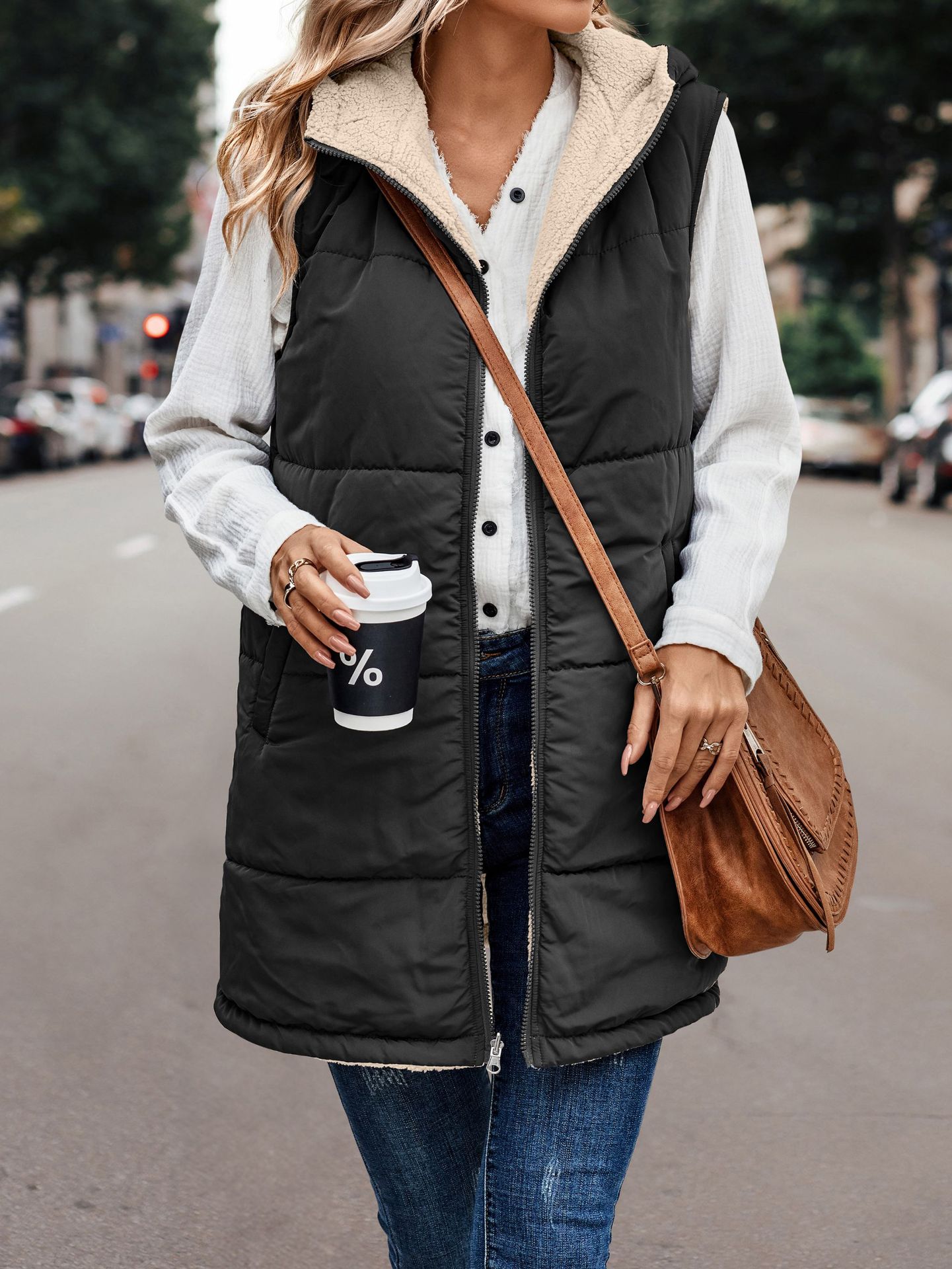Amazon Supply 2023 패셔너블하고 심플한 스플라이스 플러시 리버시블 여성용 조끼 후드 DWT0108285