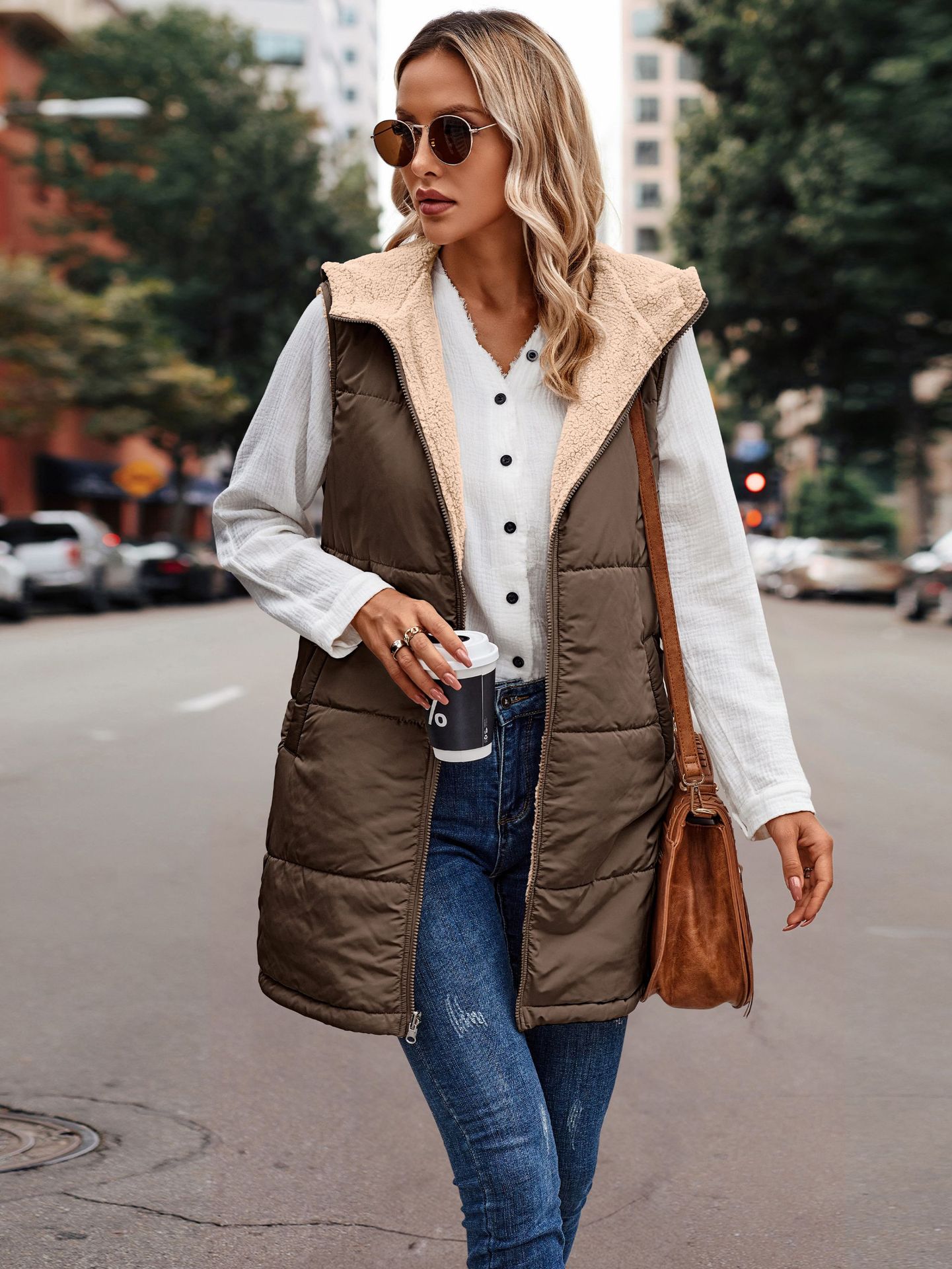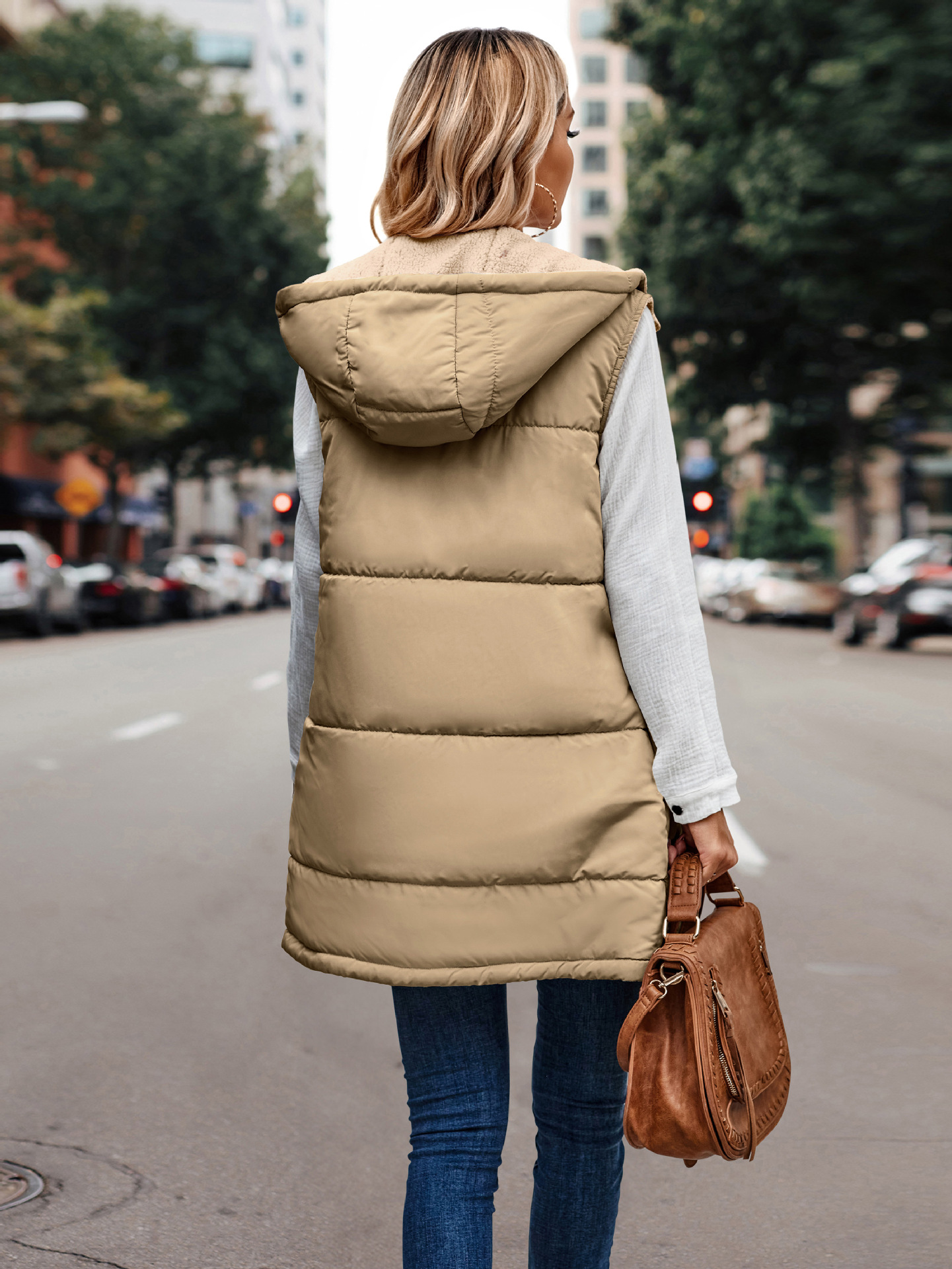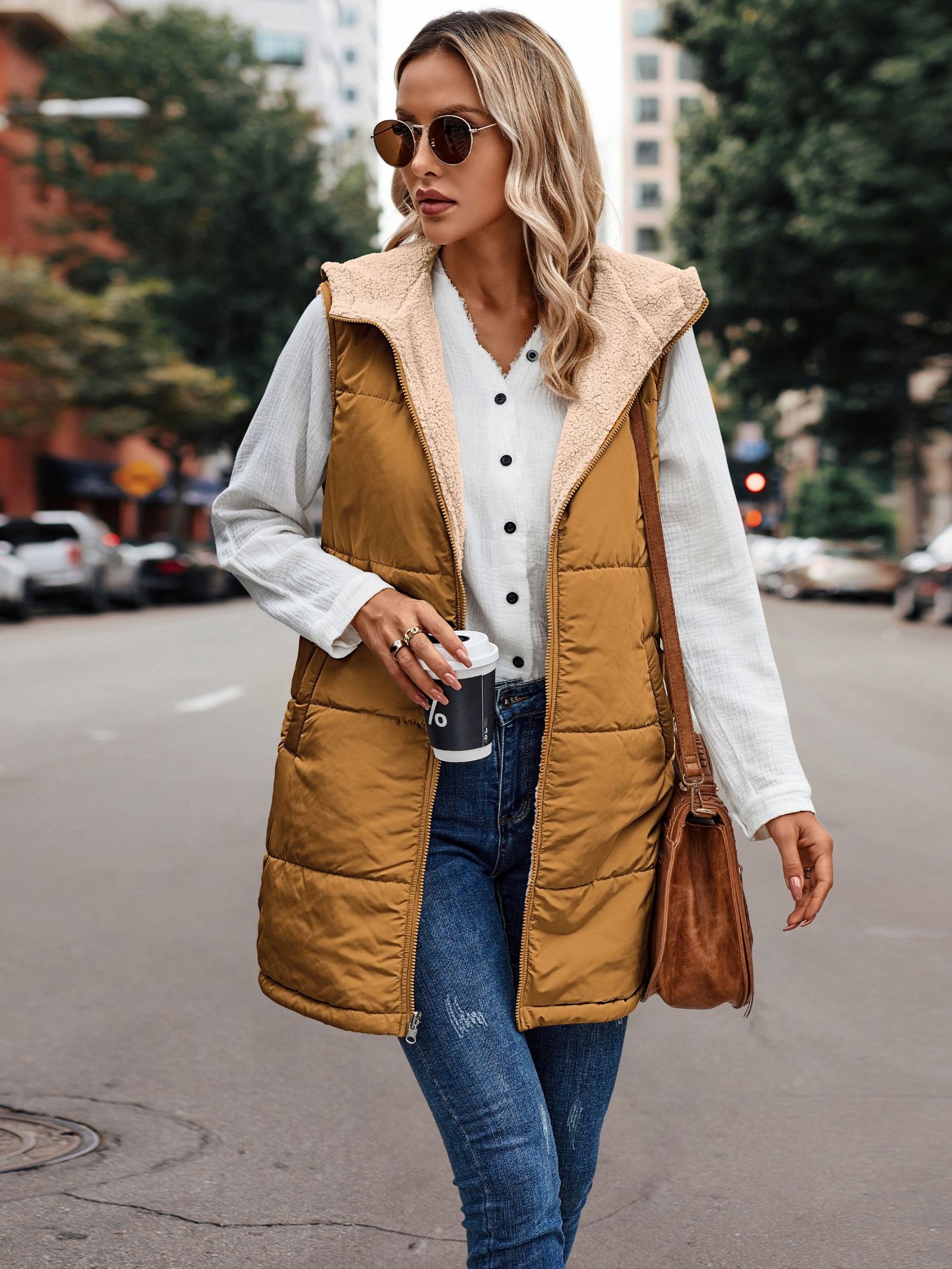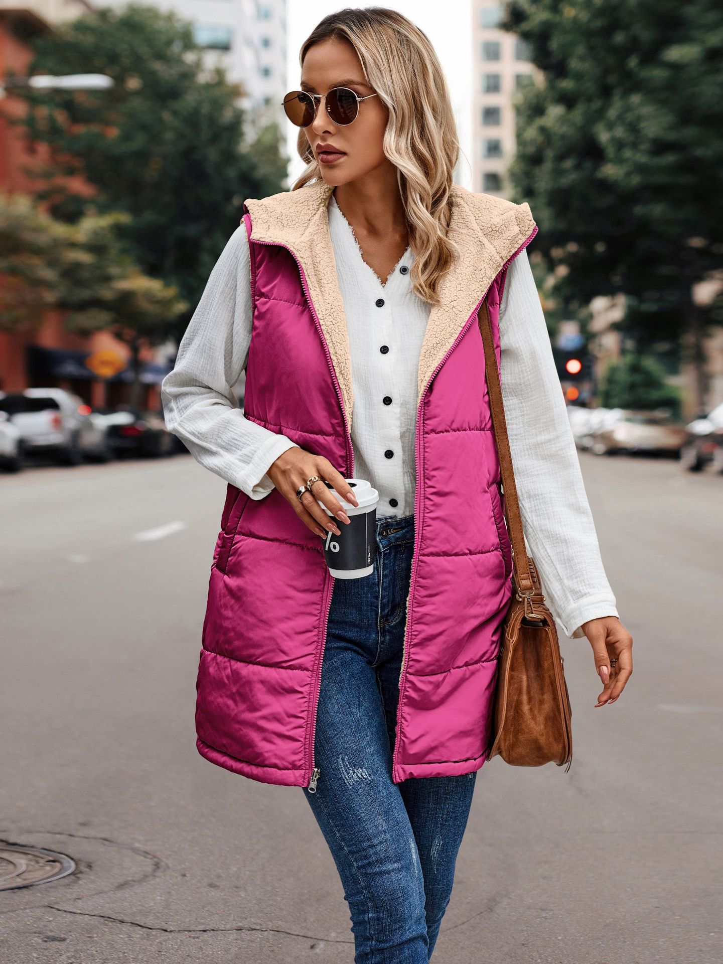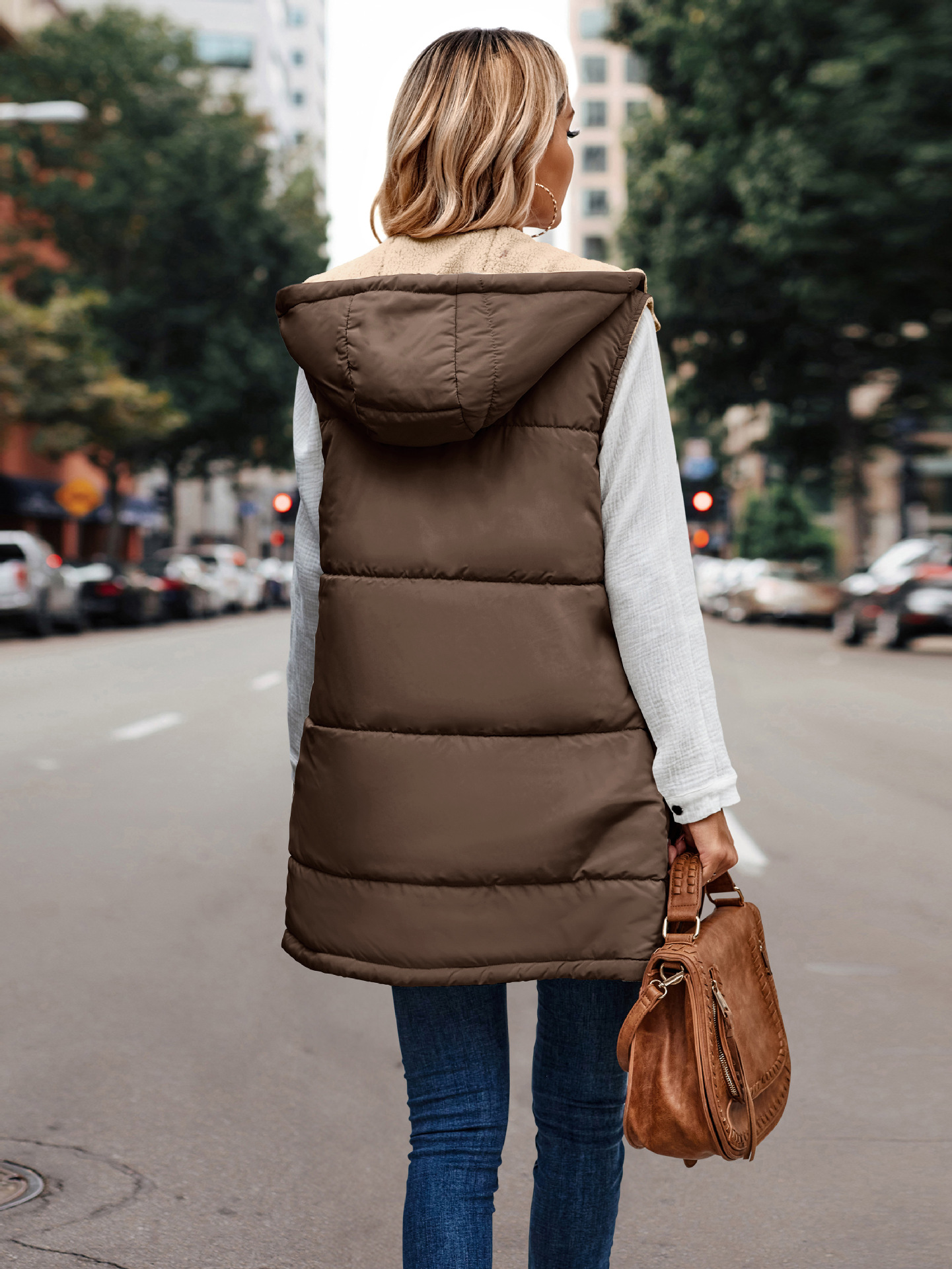 Amazon Supply 2023 패셔너블하고 심플한 스플라이스 플러시 리버시블 여성용 조끼 후드 DWT0108285