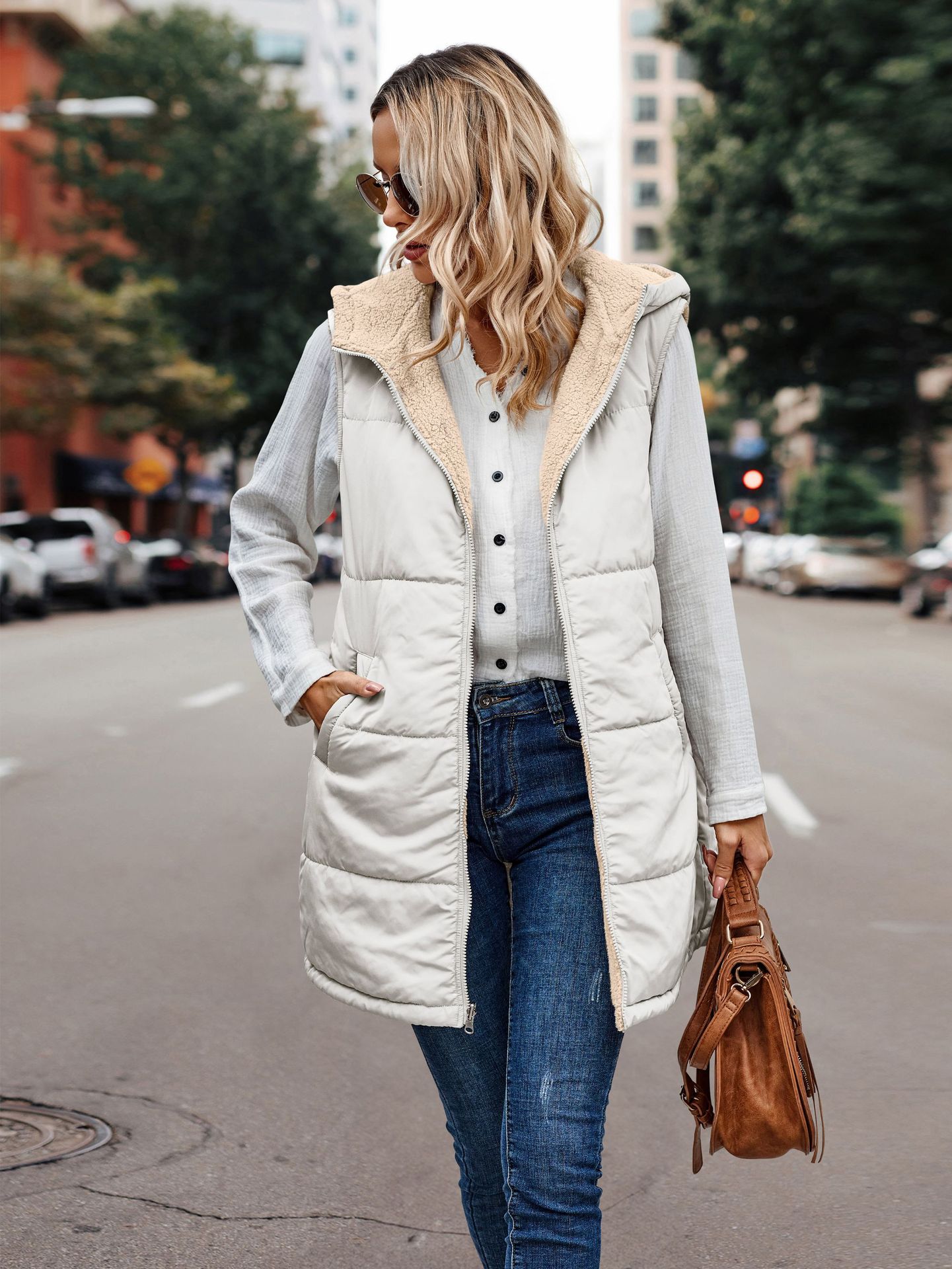 Amazon Supply 2023 패셔너블하고 심플한 스플라이스 플러시 리버시블 여성용 조끼 후드 DWT0108285스토어 가기