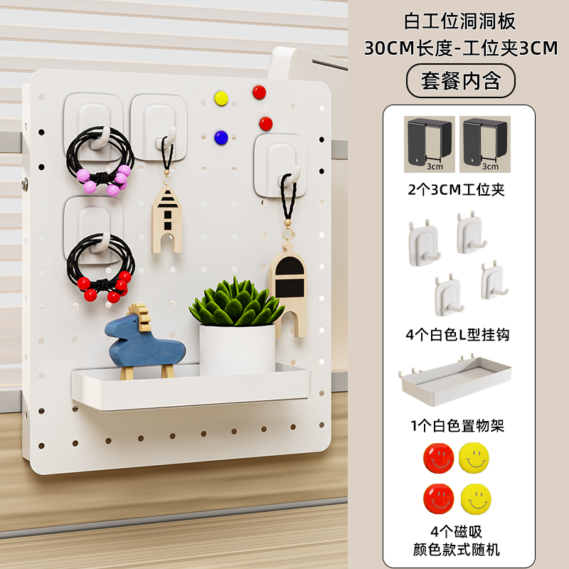 • [3CM 워크스테이션] 흰색 길이 30개 후크 4개 자석 4개 수납선반 1개