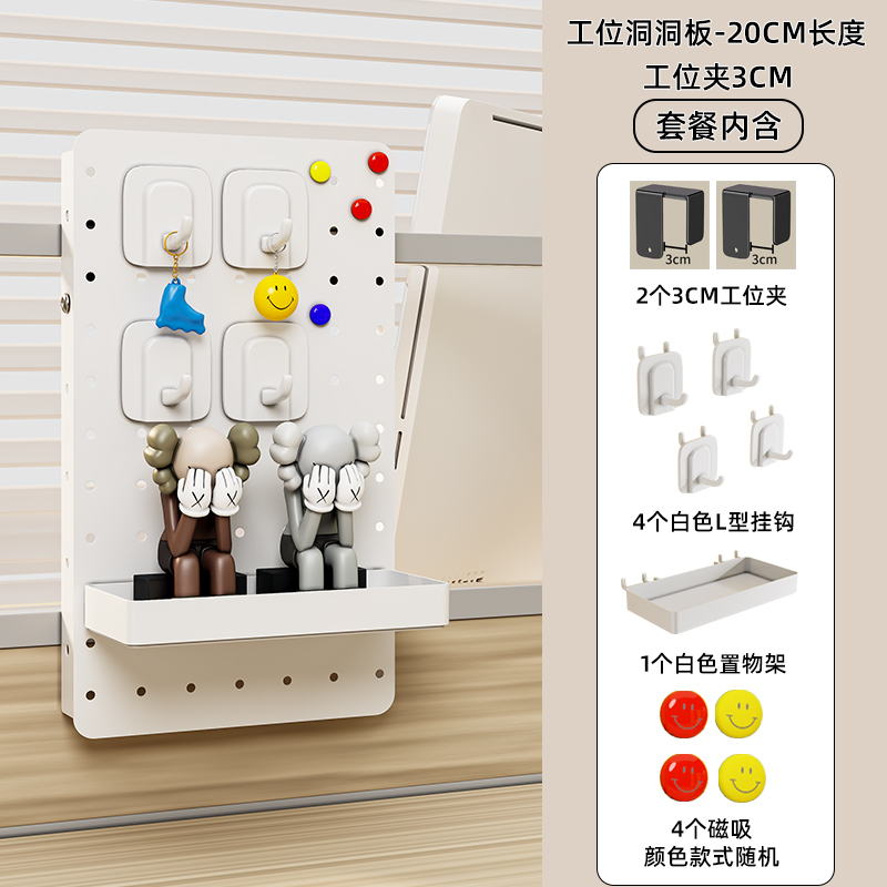 • [3CM 워크스테이션] 흰색 길이 20개 후크 4개 자석 4개 수납선반 1개