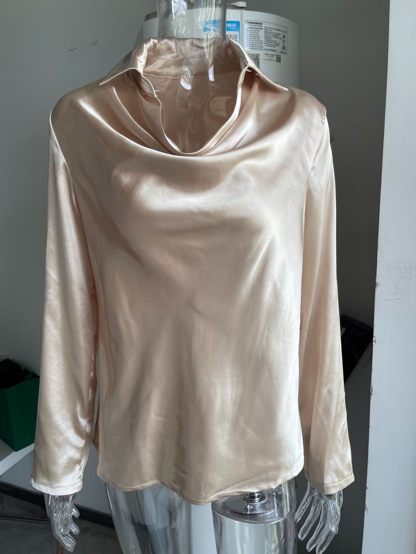 2025 Amazon shein 크로스 보더 독립 스테이션 유럽과 미국 새틴 긴팔 봄, 가을 셔츠 탑 여성 신작