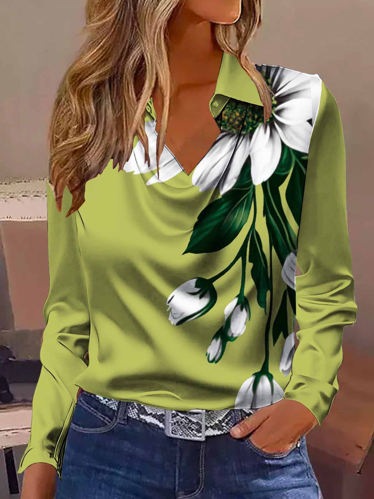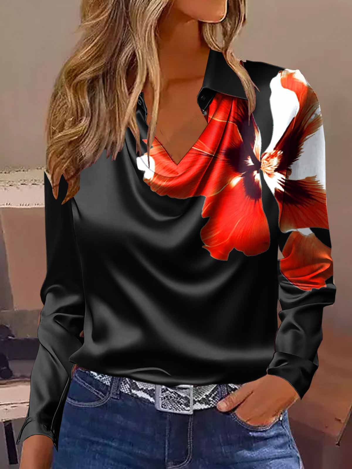 2025 Amazon shein 크로스 보더 독립 스테이션 유럽과 미국 새틴 긴팔 봄, 가을 셔츠 탑 여성 신작스토어 가기