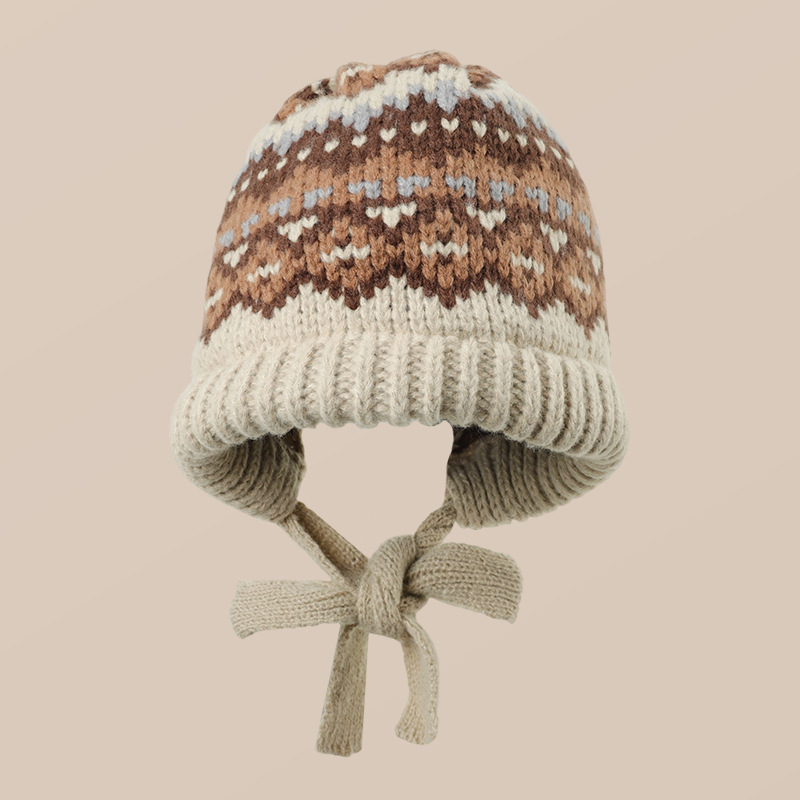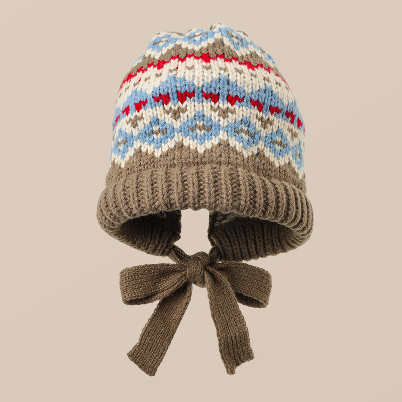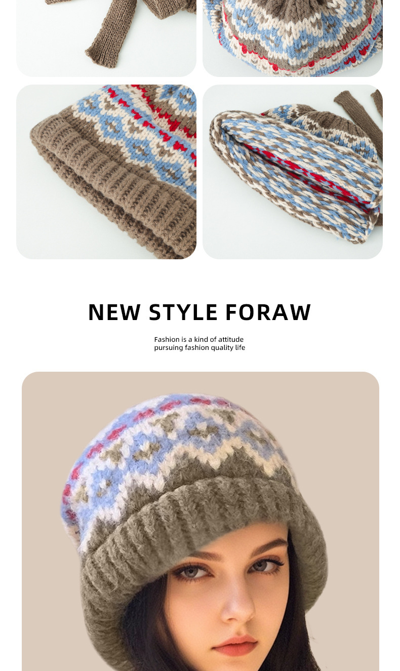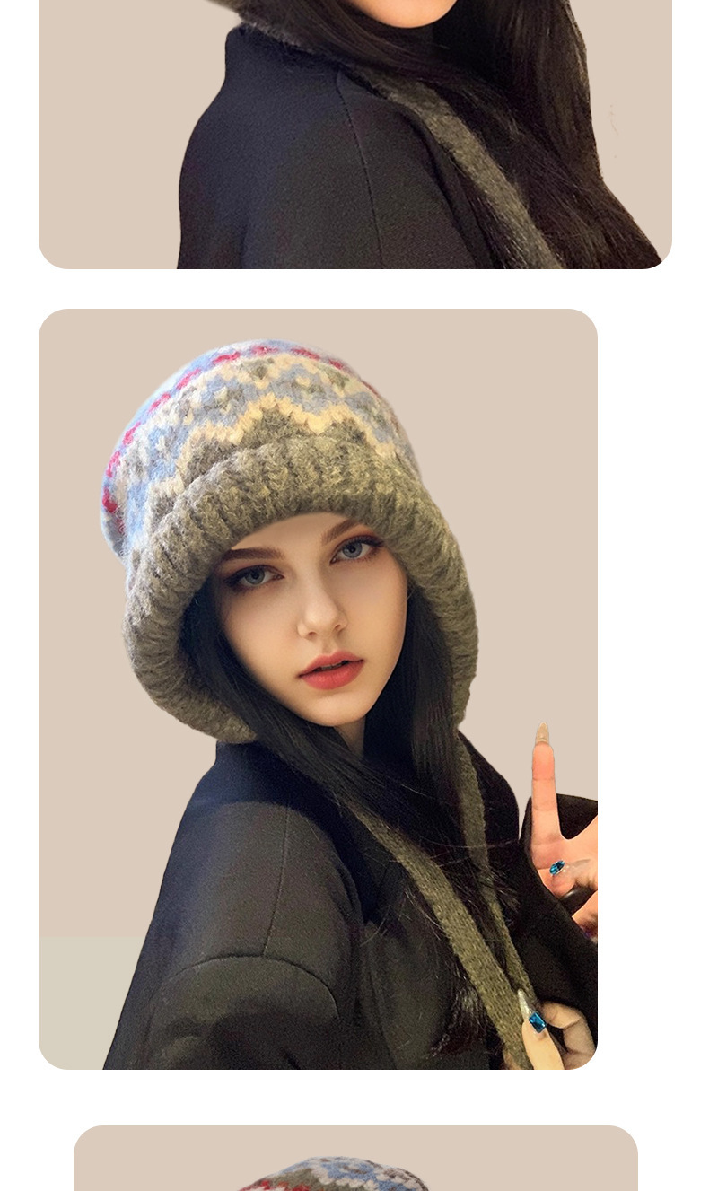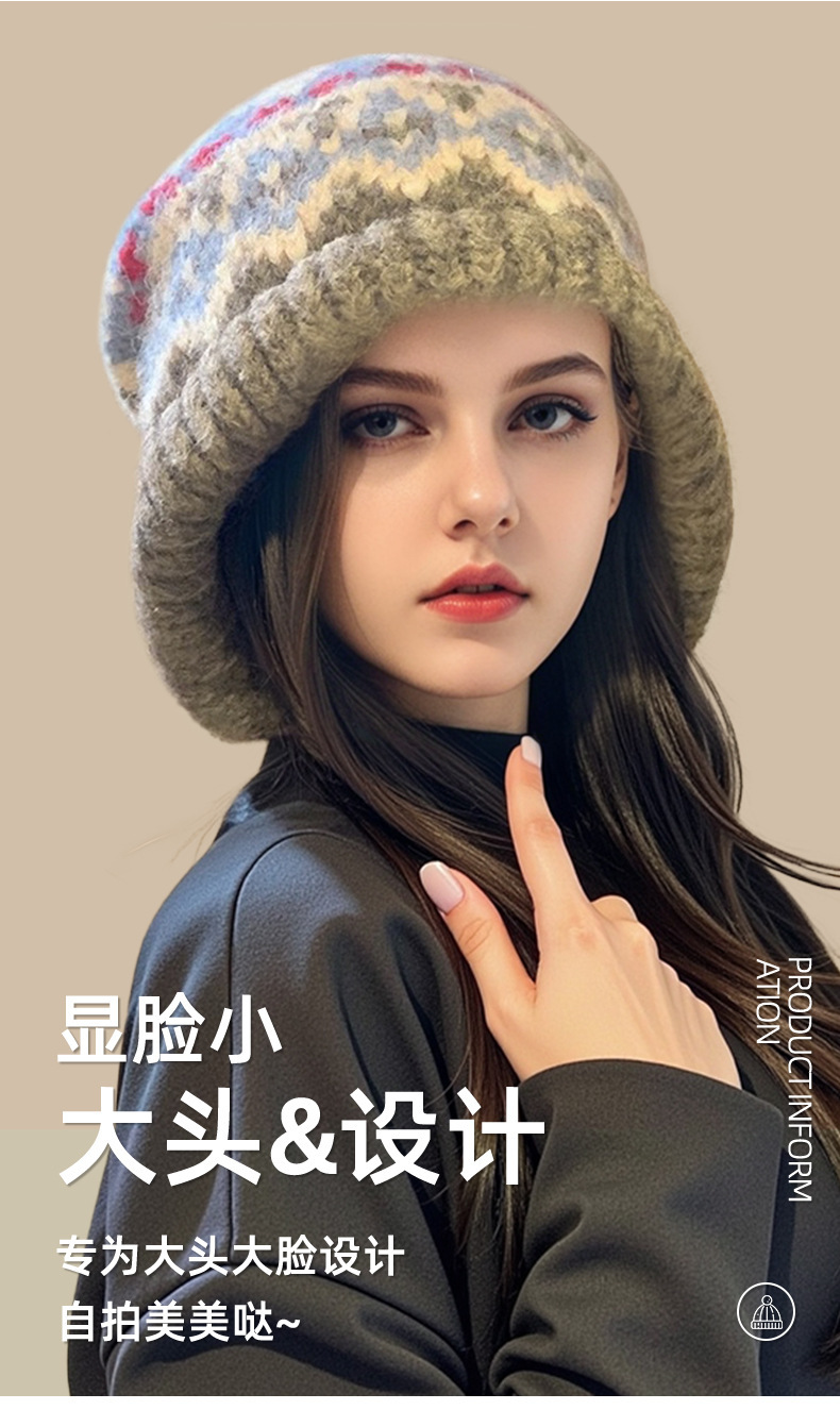 페어 아일 스타일 벨벳 두꺼운 따뜻한 레이펑 모자 모피 볼 귀 보호 모직 모자 여성 겨울을위한 큰 머리 둘레 니트 모자스토어 가기