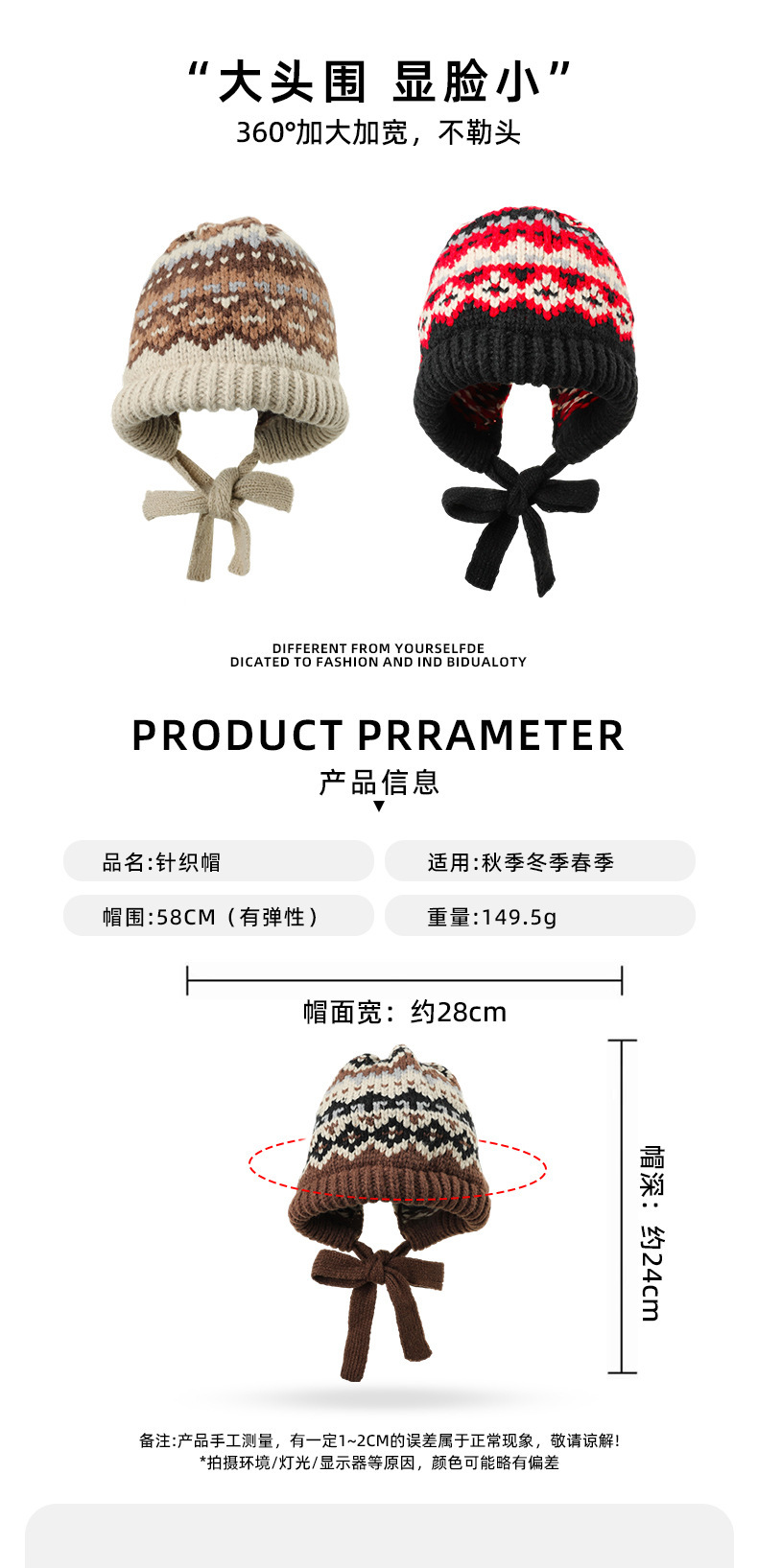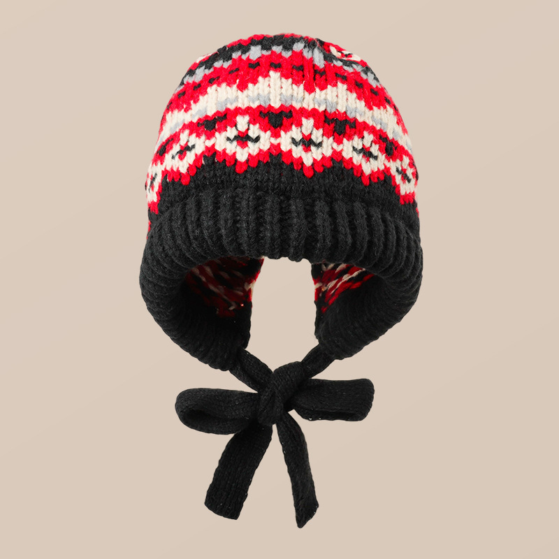 페어 아일 스타일 벨벳 두꺼운 따뜻한 레이펑 모자 모피 볼 귀 보호 모직 모자 여성 겨울을위한 큰 머리 둘레 니트 모자