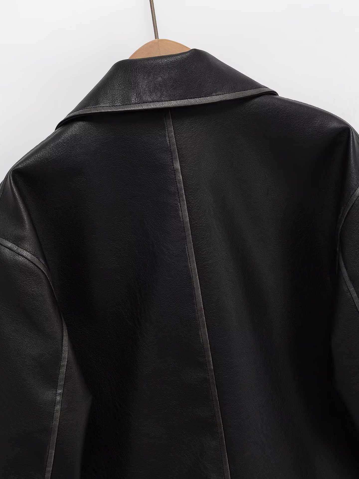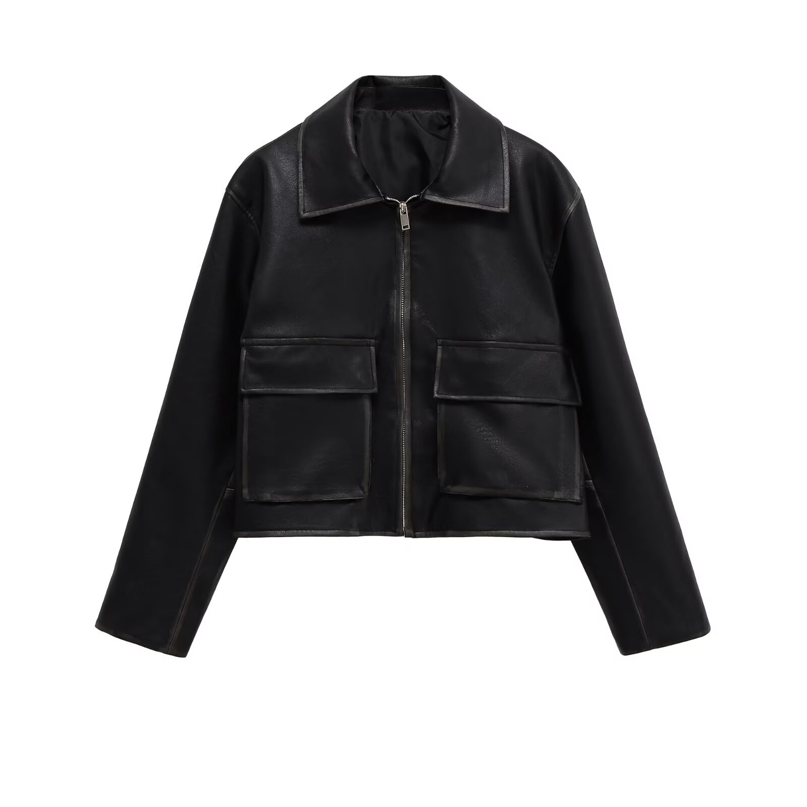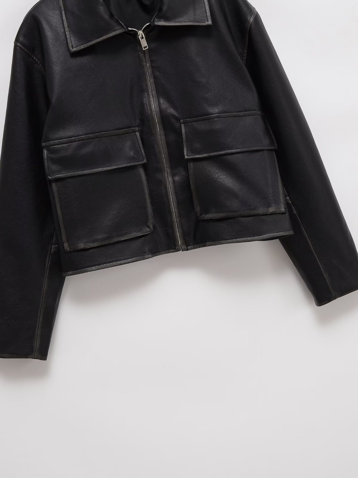 가을, 겨울 여성 옷깃 블랙 워시 대형 포켓 지퍼 PU 재킷 유럽과 미국의 국경 간 스타일의 새로운 가죽 코트