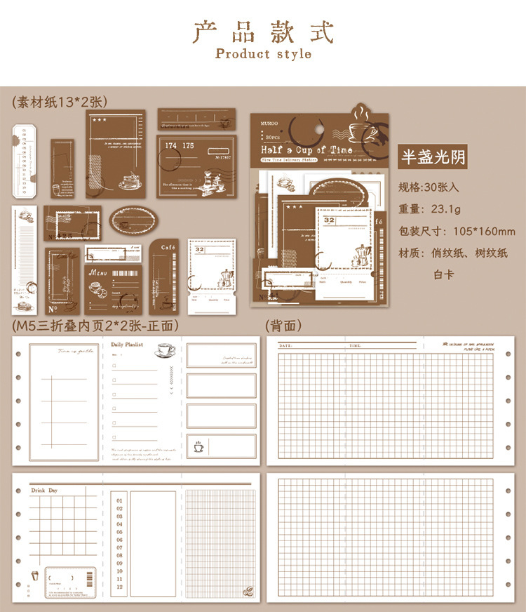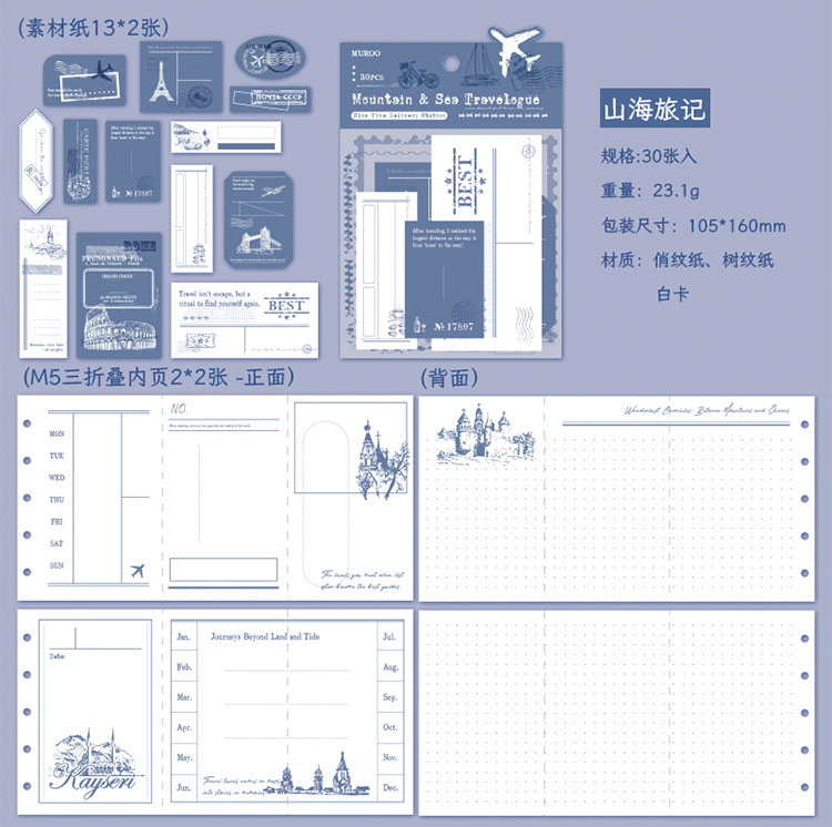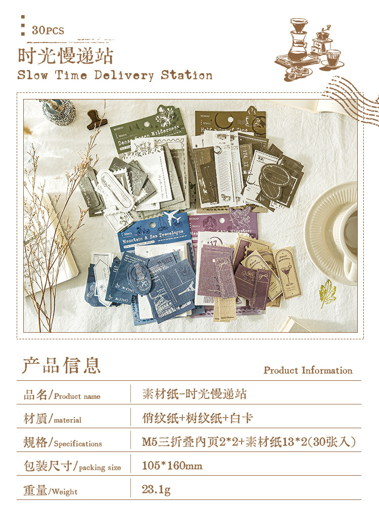 Muran 소재 패키지, 느린 우편국, 가벼운 복고풍 스타일, 찢을 수 있는 다용도 핸드북, DIY 장식 루스리프 내부 페이지 용지