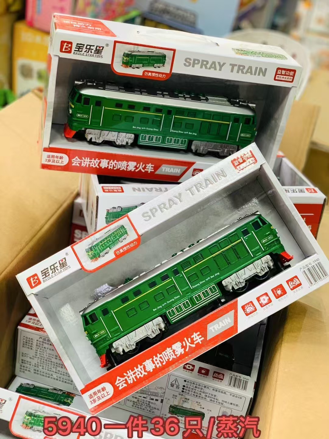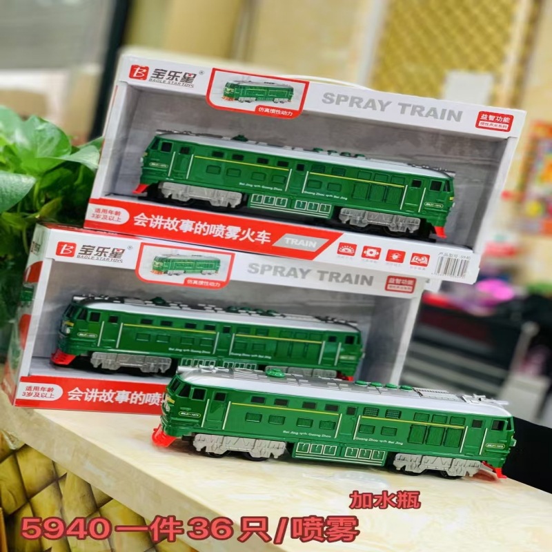 새로운 Baolaxing 관성 자동차 5940 스프레이 기차 시뮬레이션 녹색 가죽 기차 어린이 장난감 자동차 이야기를 들려줍니다스토어 가기