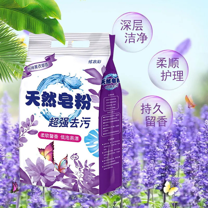 라벤더 천연 비누 분말 세탁 세제 프로모션 저발포 및 표백 용이-스토어 가기