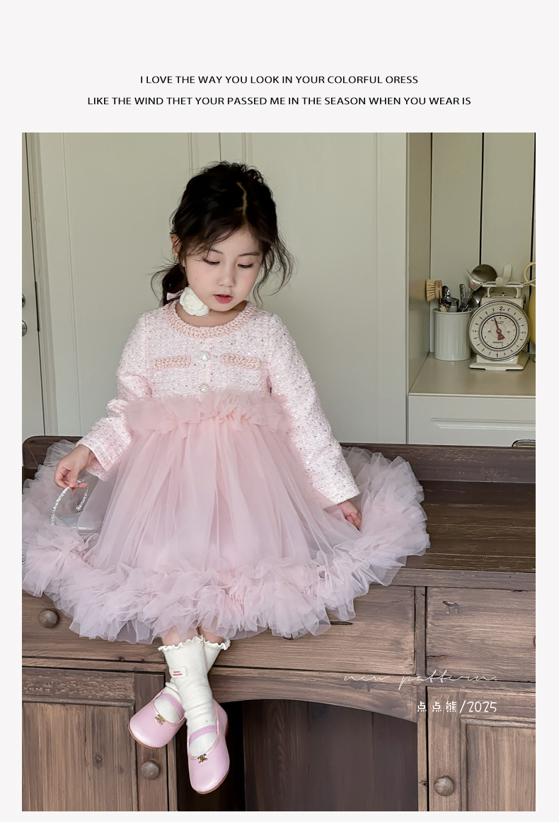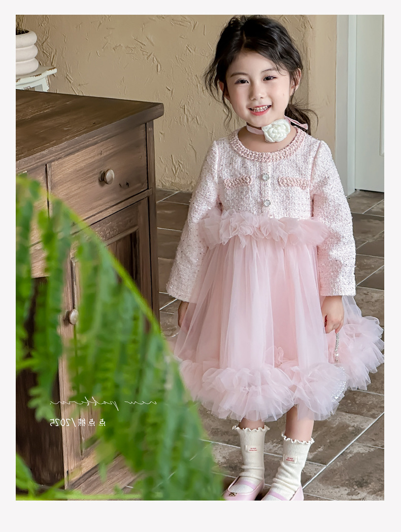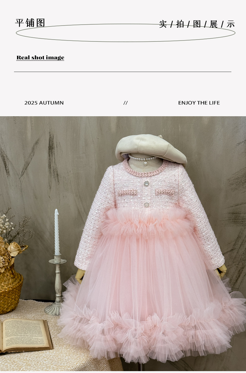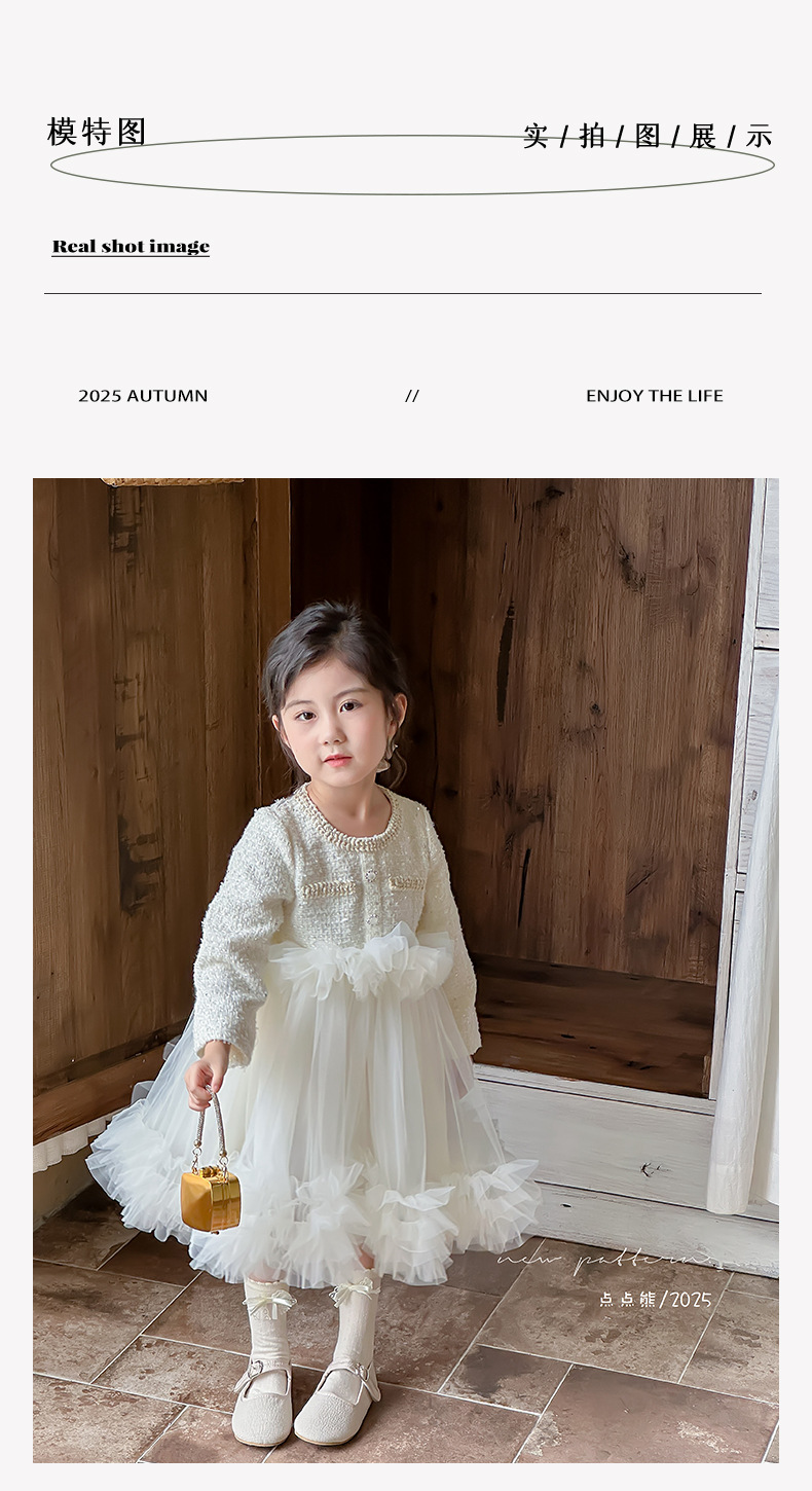 여자 드레스 2025 가을 새로운 한국 스타일 모직 작은 향기 스타일 모직 공주 드레스 슬리밍 메쉬 퍼프 스커트스토어 가기