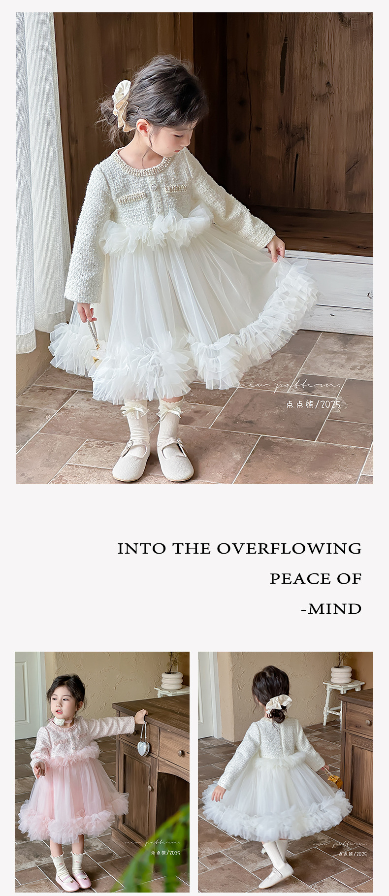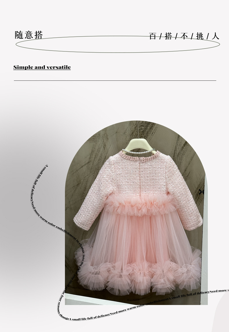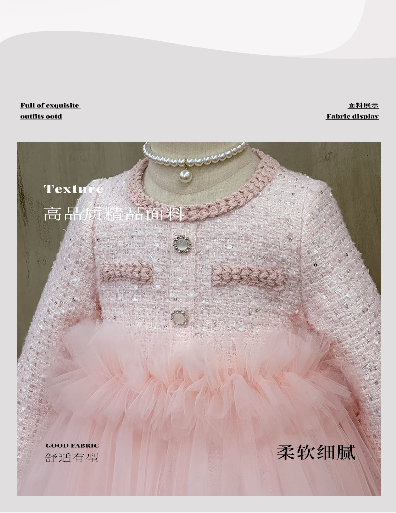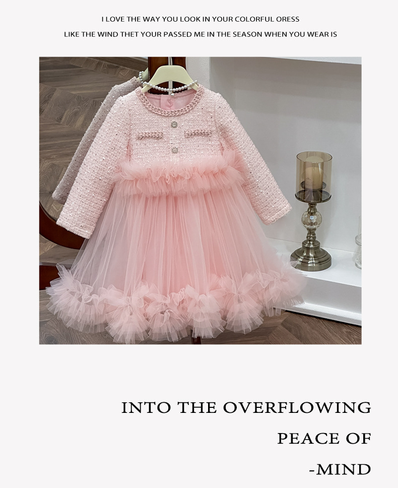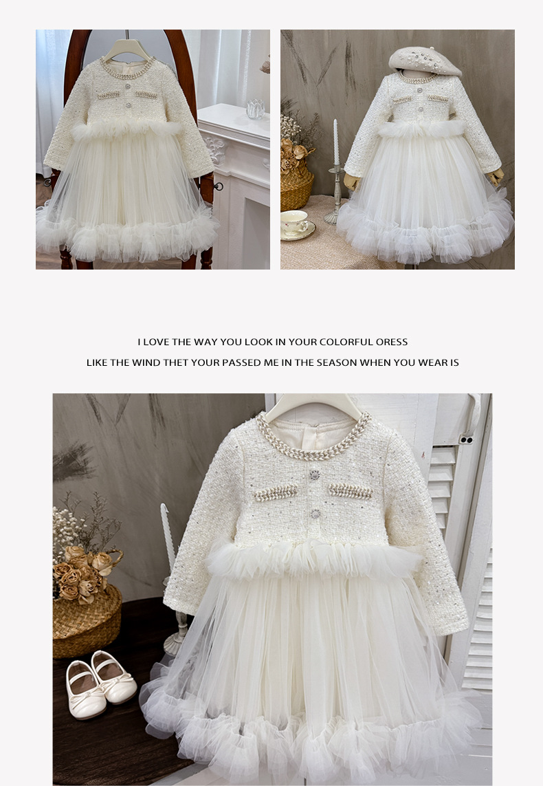 여자 드레스 2025 가을 새로운 한국 스타일 모직 작은 향기 스타일 모직 공주 드레스 슬리밍 메쉬 퍼프 스커트스토어 가기