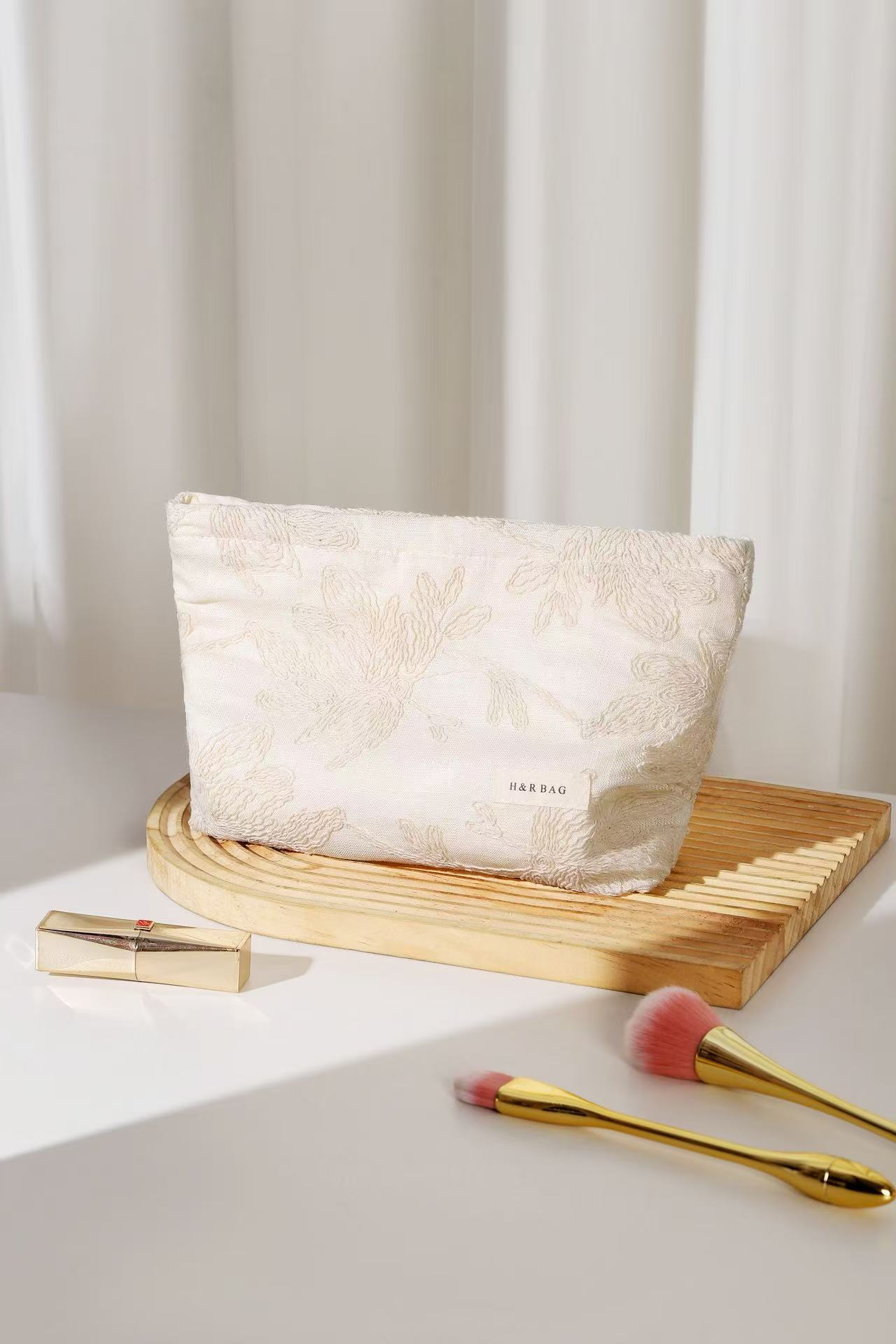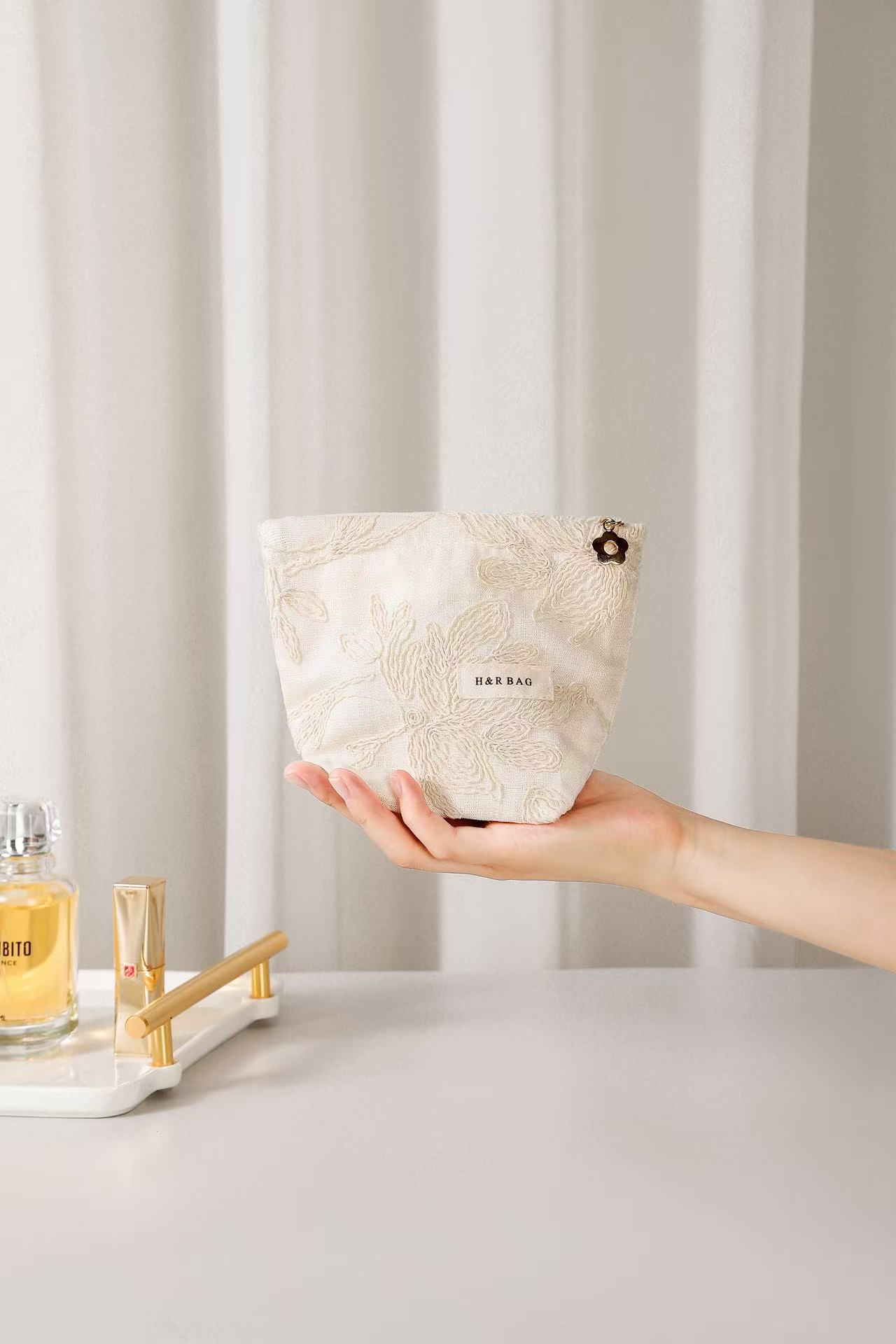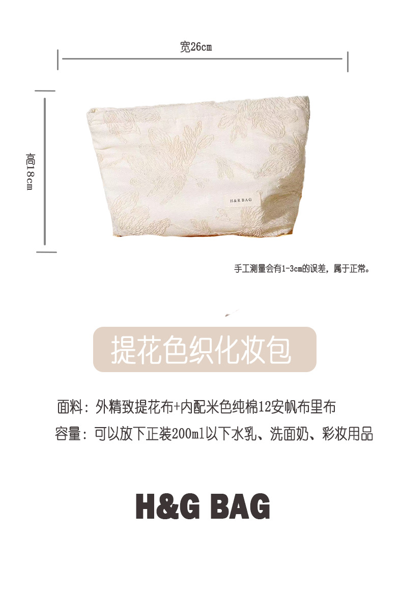 프랑스 절묘한 고급 면 및 린넨 자수 여성용 휴대용 화장품 가방 휴대용 여행 정리 및 보관 가방 베개 가방