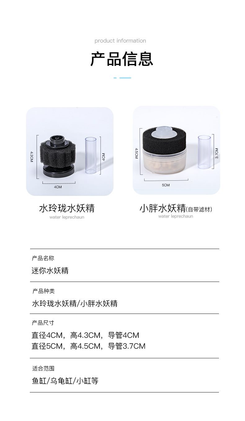 迷你水妖精过滤器斗鱼孔雀鱼金鱼小型鱼缸过滤棉加增氧制氧一体机