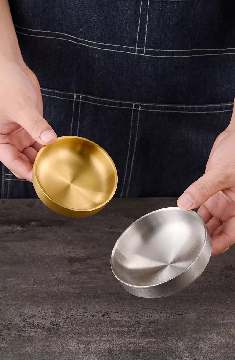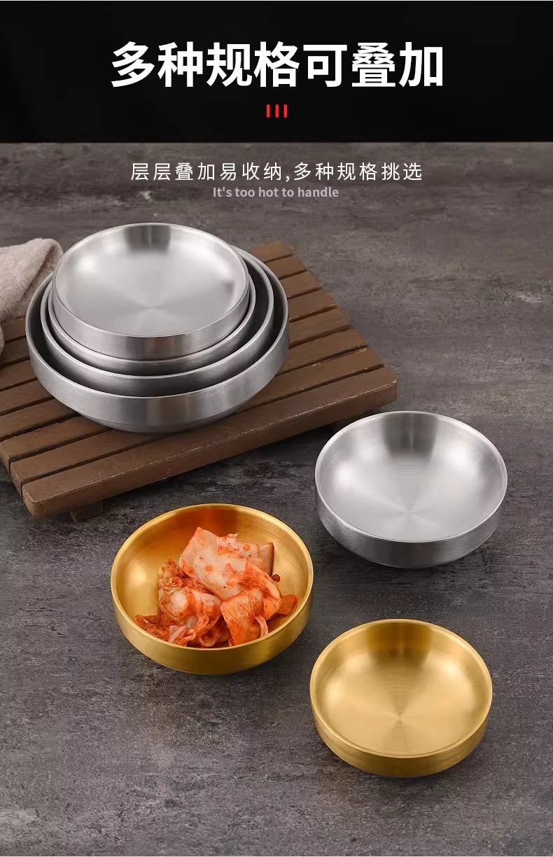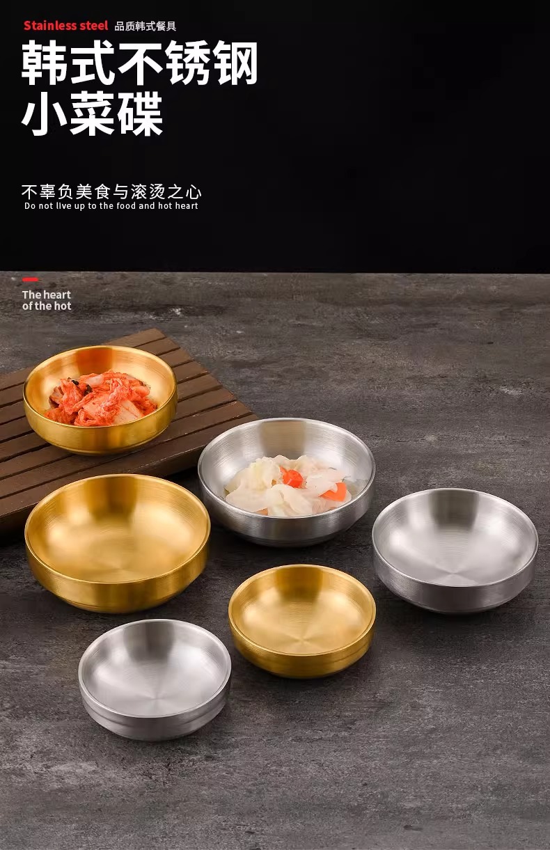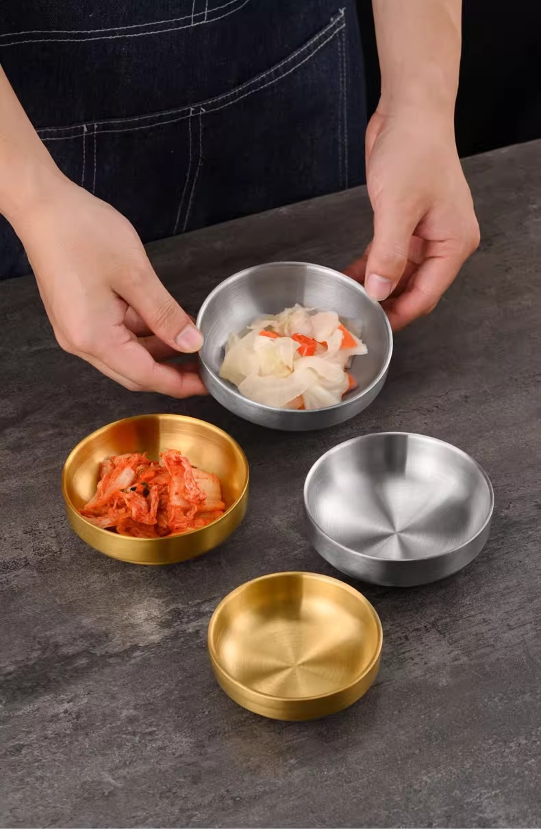 한국식 304 스테인리스 소스 접시, 반찬 접시, 한국식 금색 김치 접시, 바비큐 소스 접시, 양념 접시, 식기스토어 가기