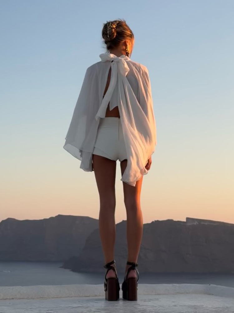 목가적 스타일의 가볍고 단색의 반 하이 칼라 작은 숄 통기성 쉬폰 셔츠 여성 2025 크로스 보더 유럽과 미국 스타일의 새로운 스타일