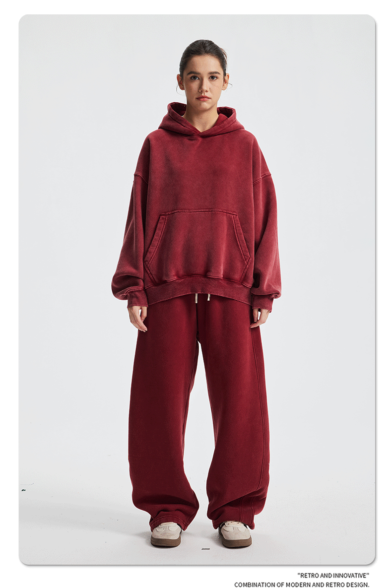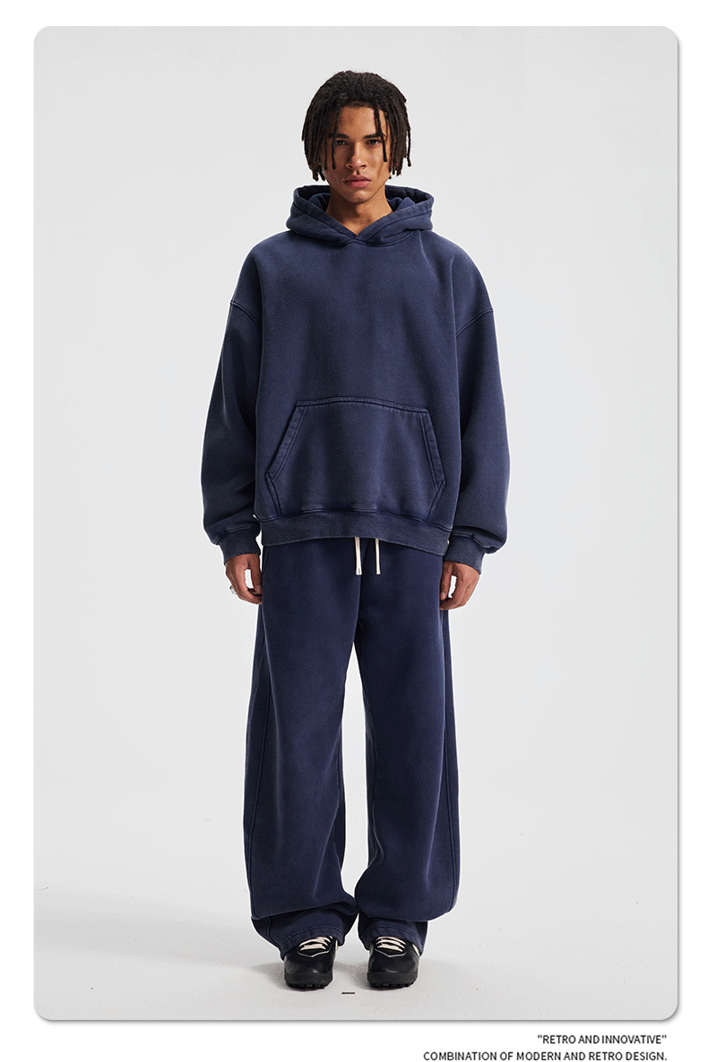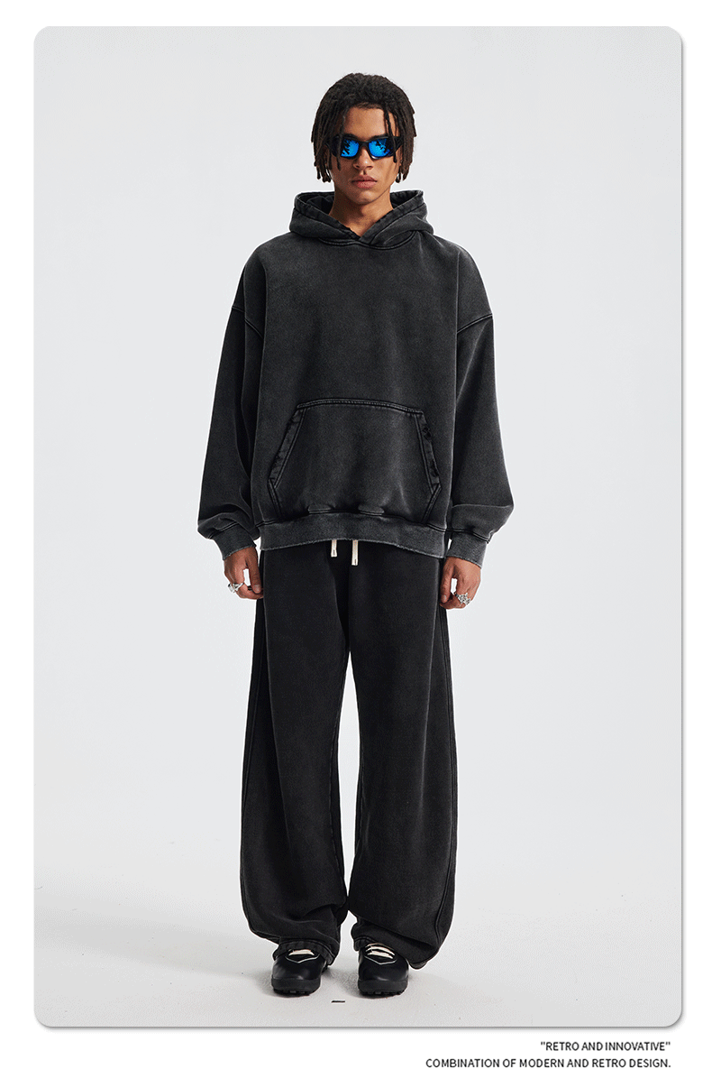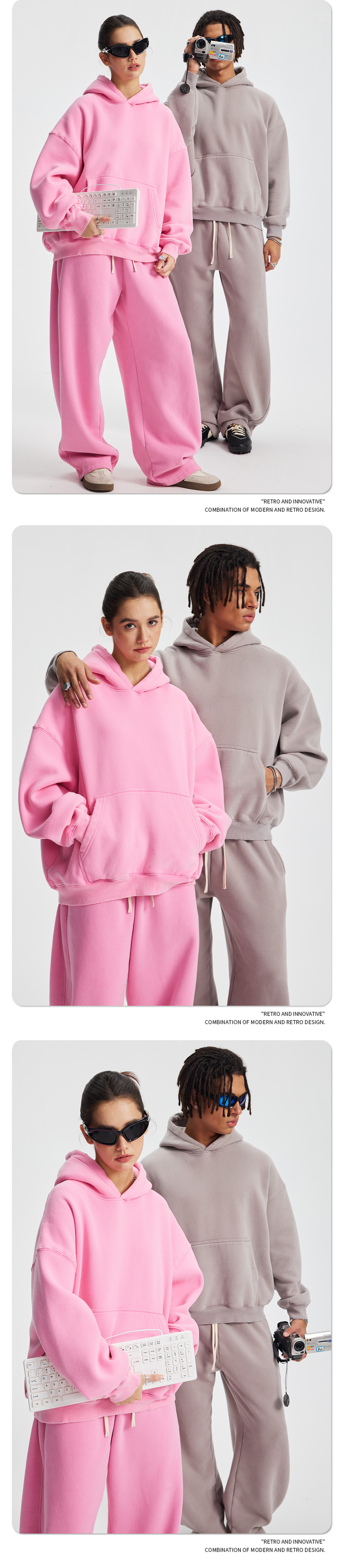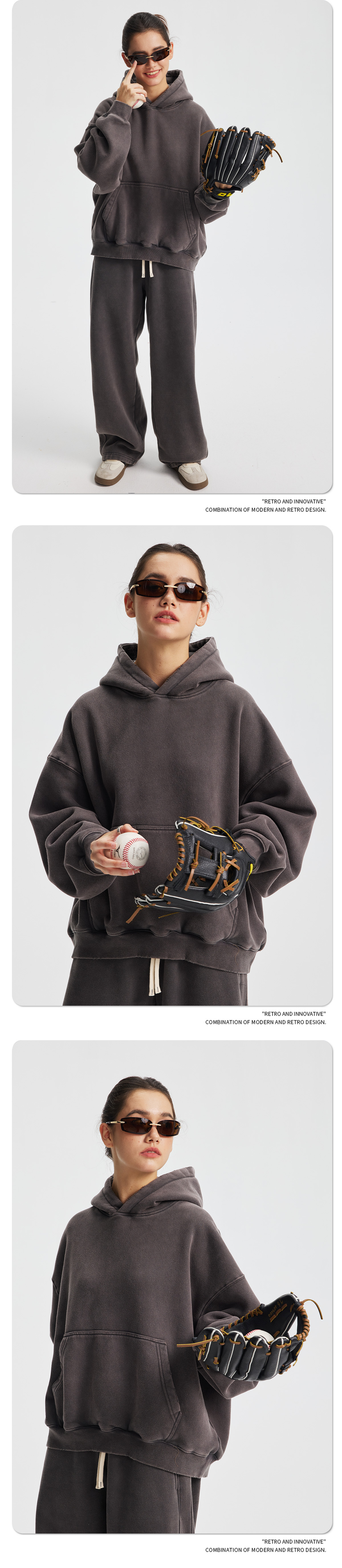 加绒BOXY短宽版连帽卫衣 磨破做旧工艺双面加绒保暖男女潮牌批发;