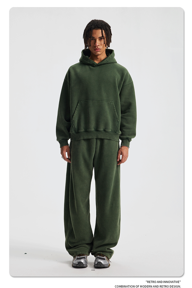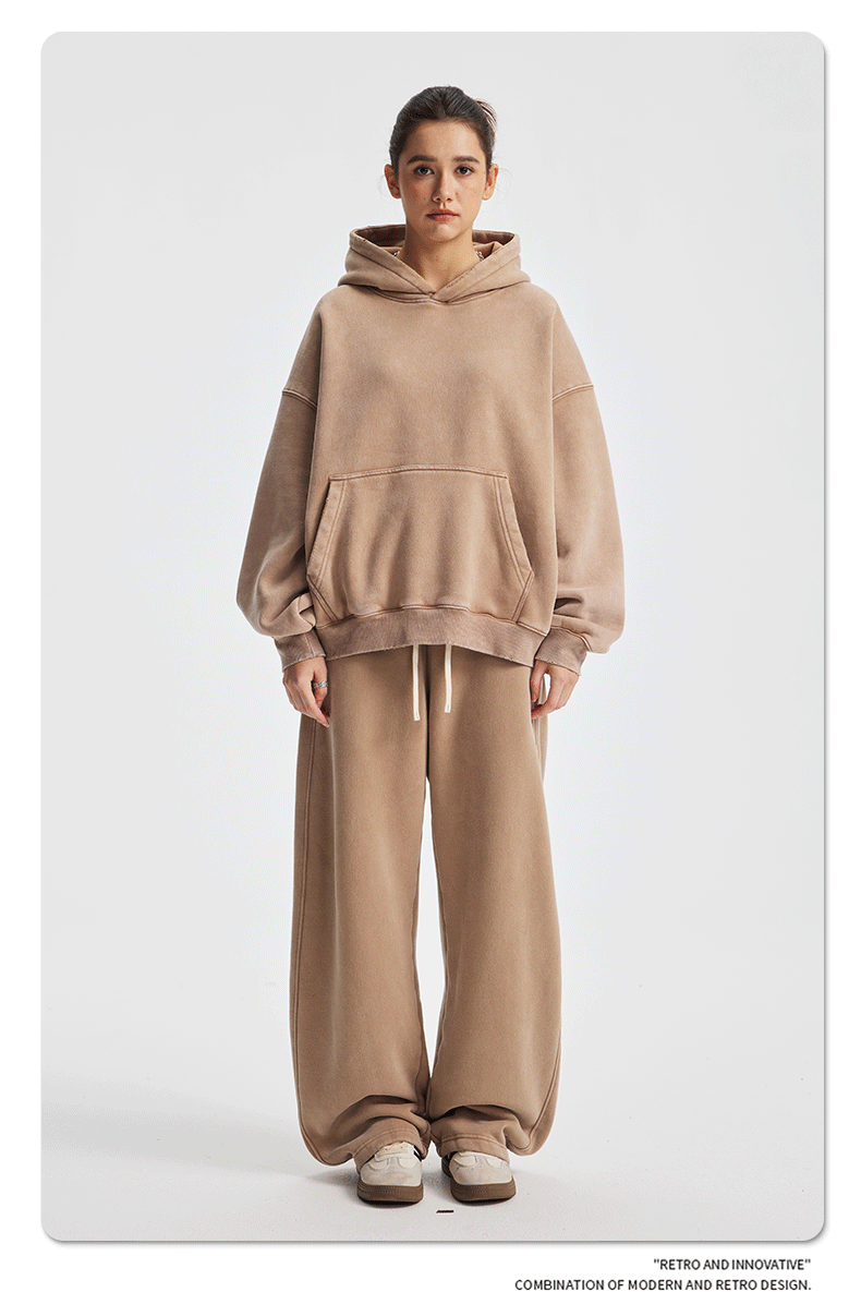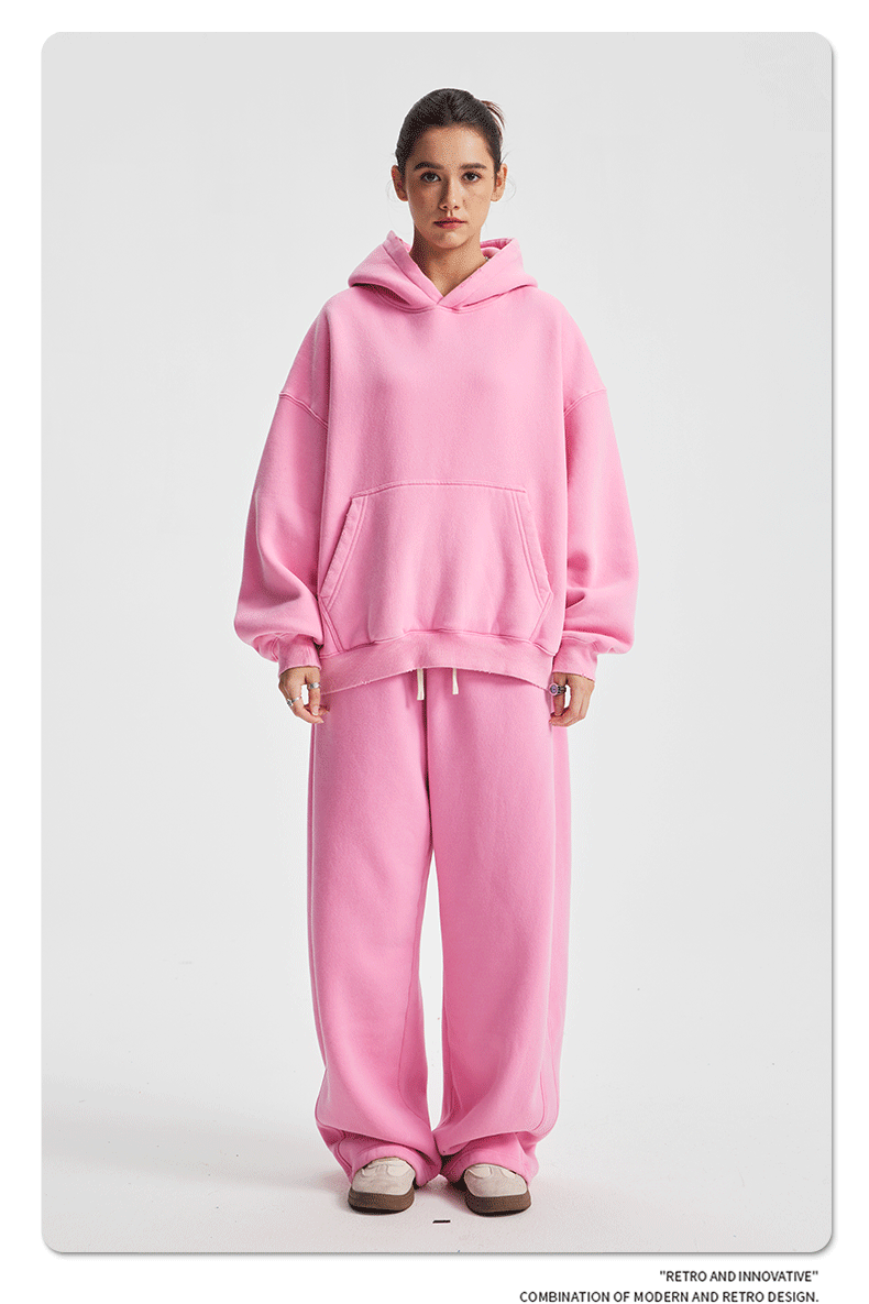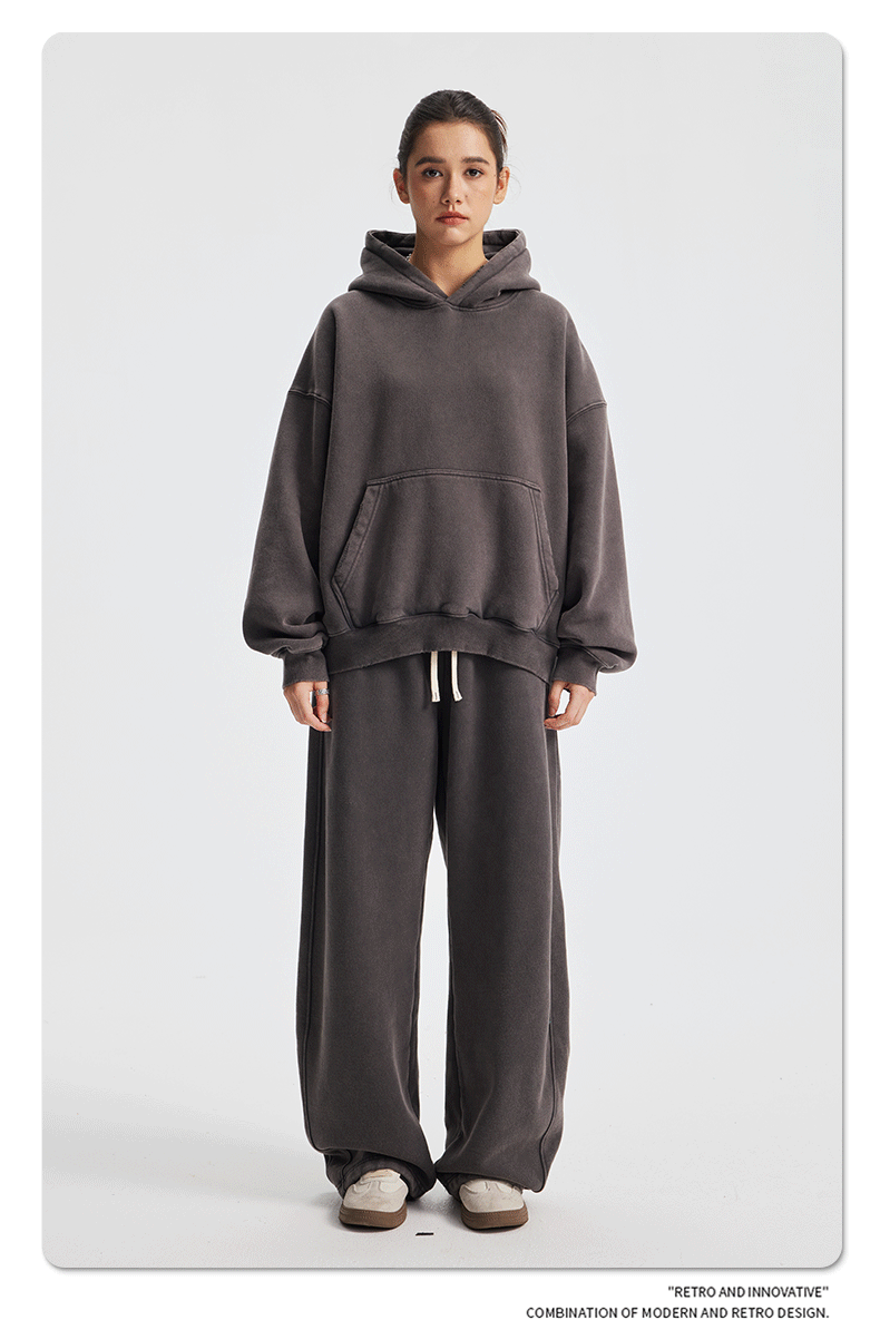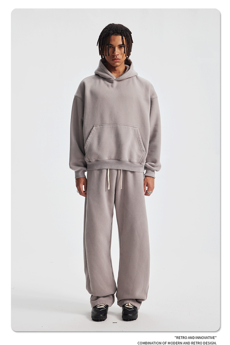 加绒BOXY短宽版连帽卫衣 磨破做旧工艺双面加绒保暖男女潮牌批发;