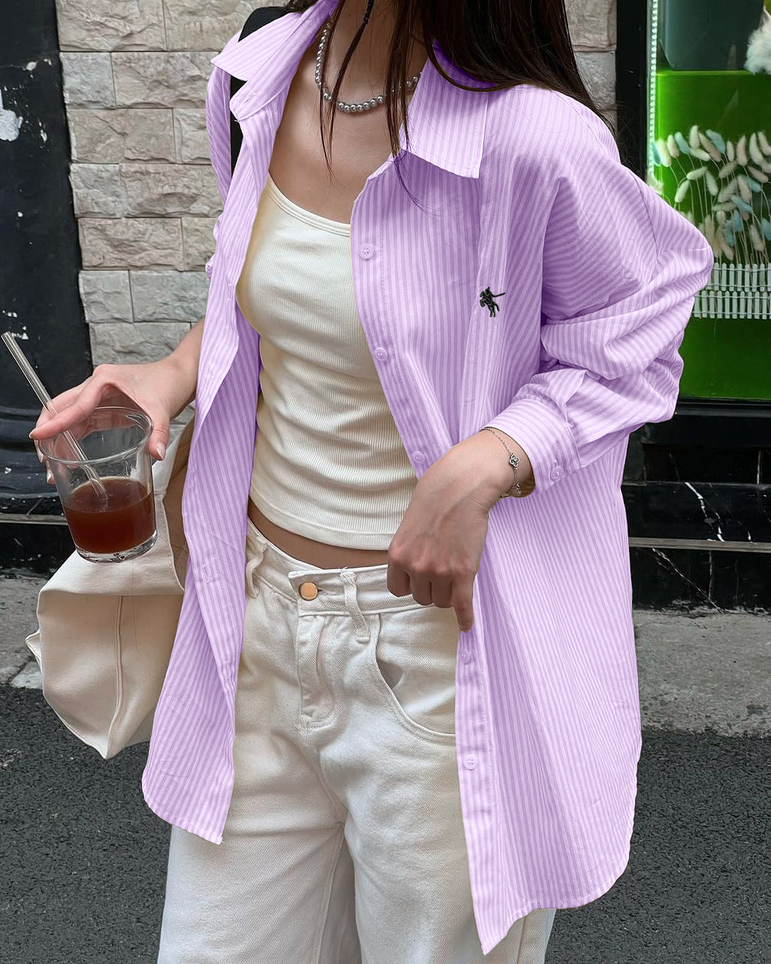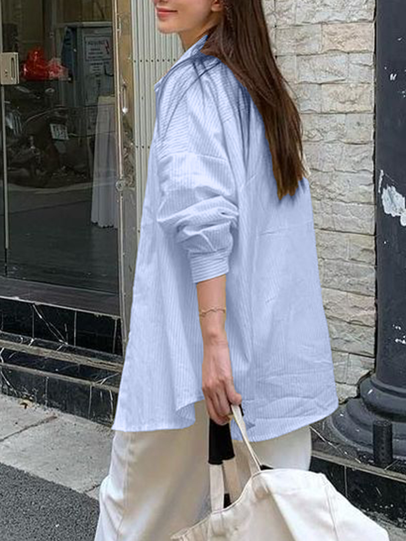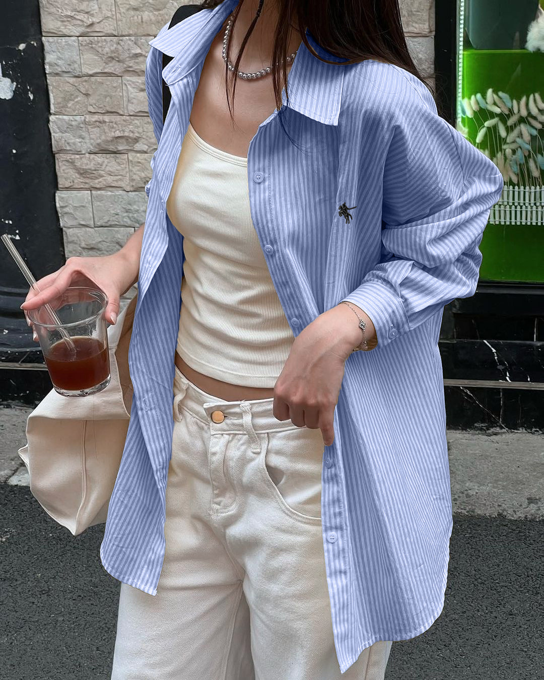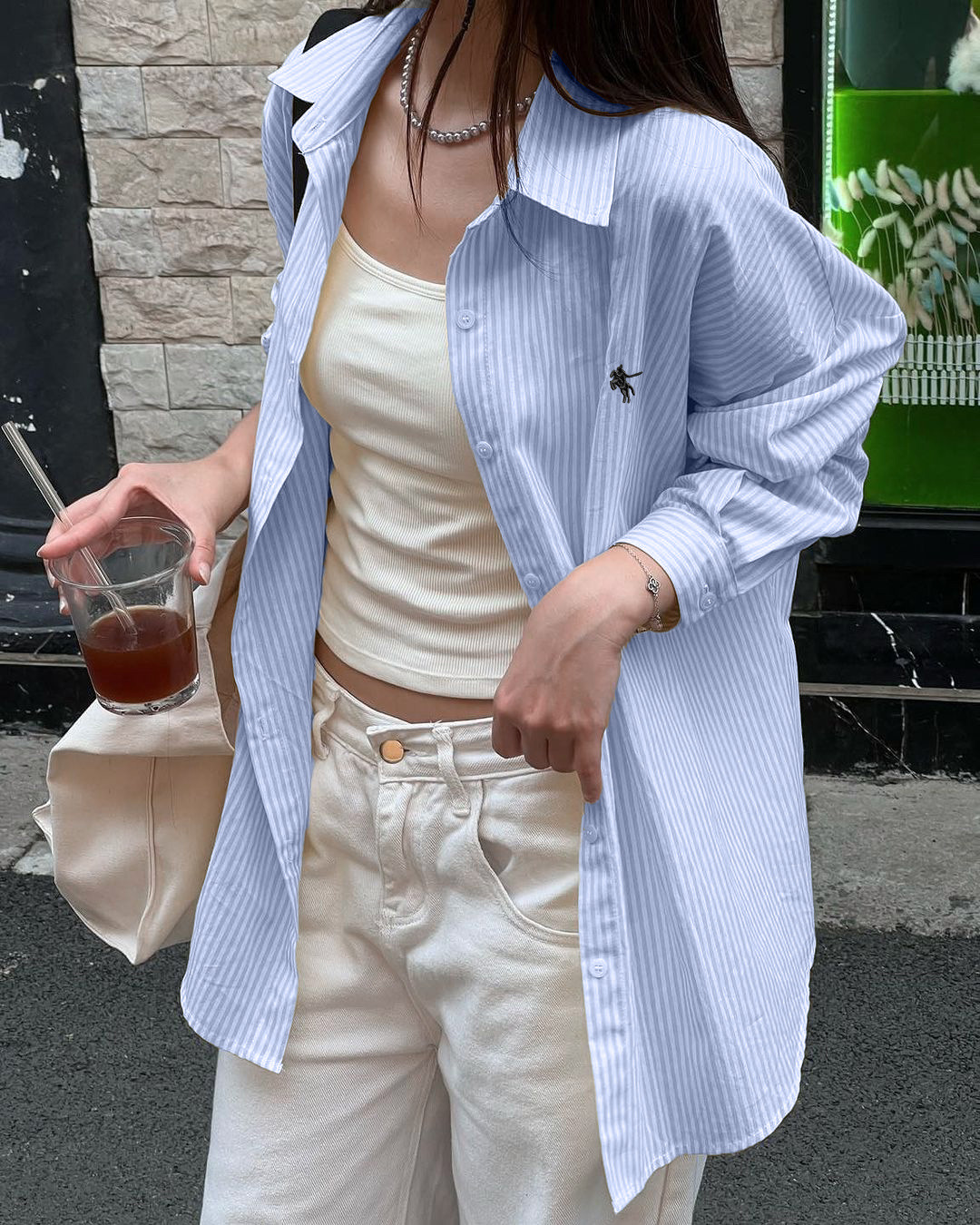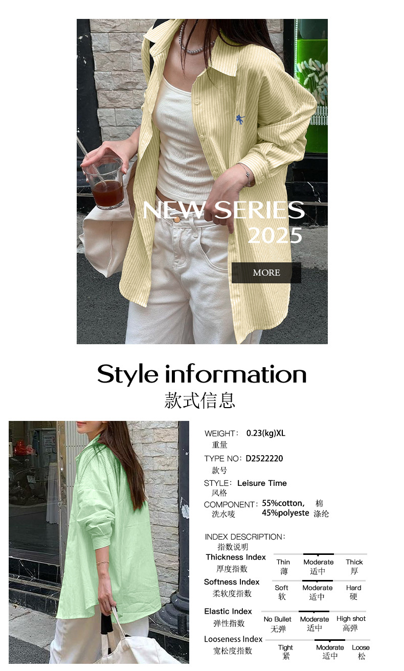 Diyun 국경 간 유럽과 미국 캐주얼 휴가 고급 줄무늬 긴팔 셔츠 여성 2025 가을, 겨울 Amazon 독립 스테이션스토어 가기