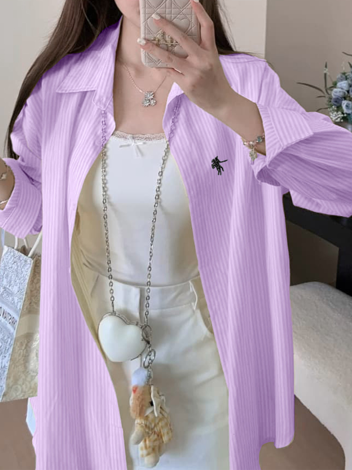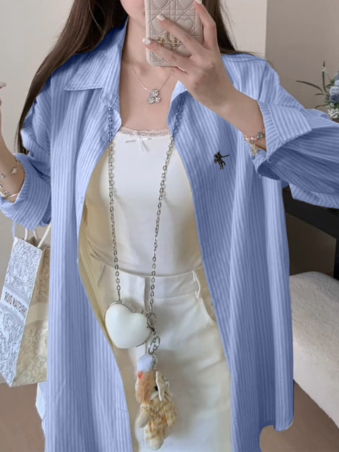 Diyun 국경 간 유럽과 미국 캐주얼 휴가 고급 줄무늬 긴팔 셔츠 여성 2025 가을, 겨울 Amazon 독립 스테이션