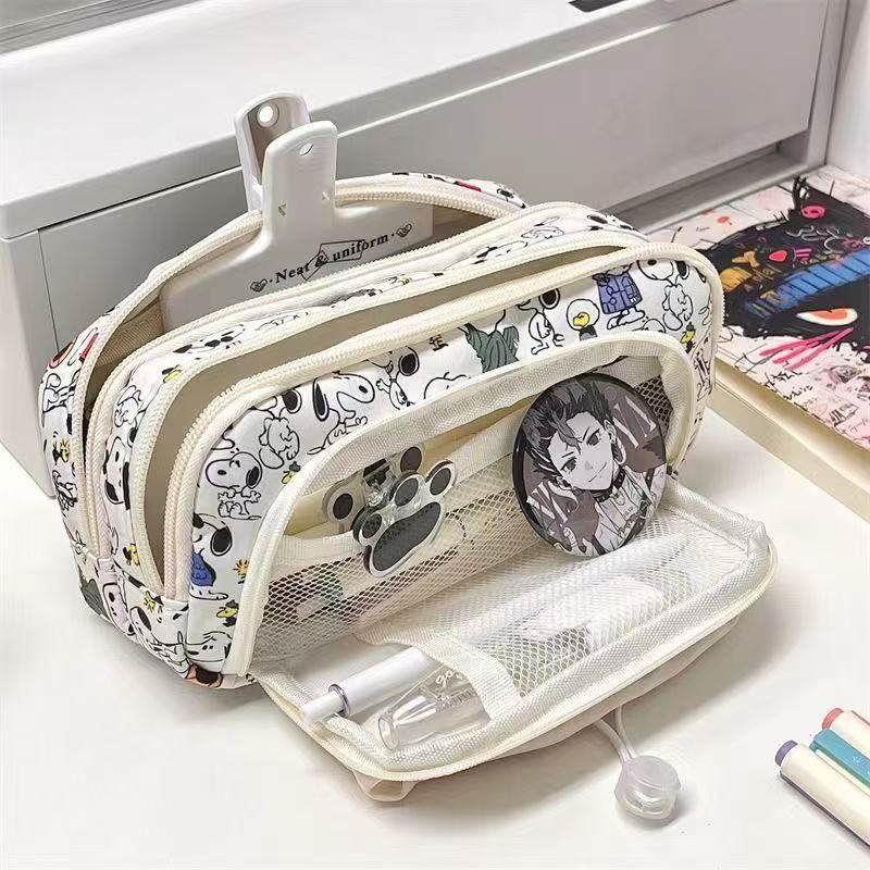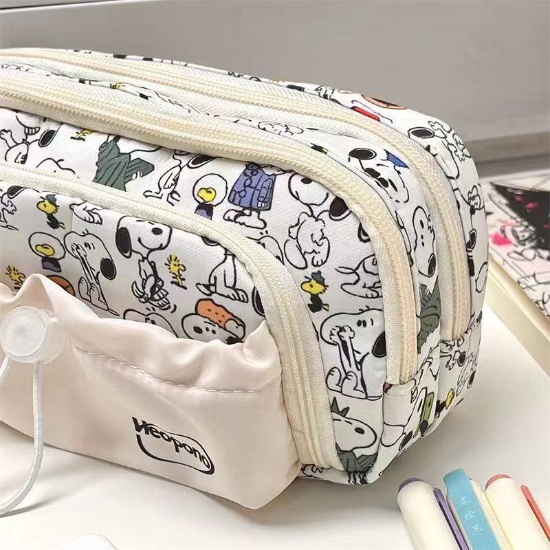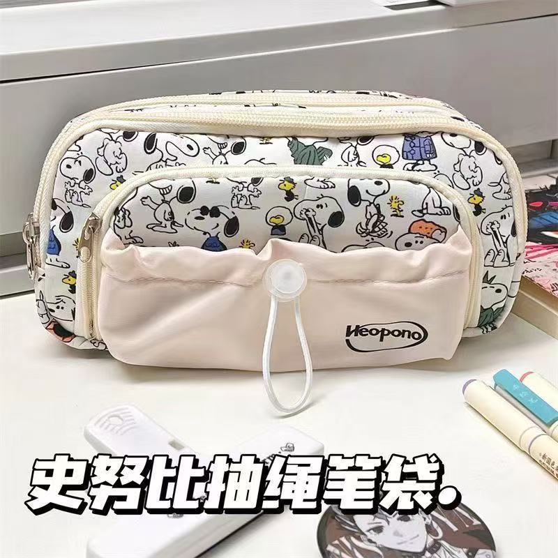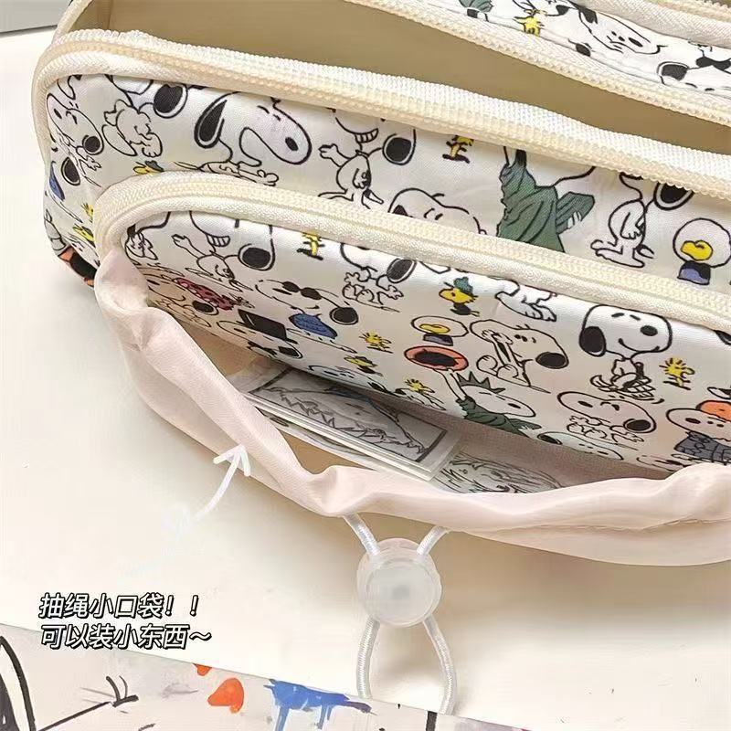 Ins 일본 스누피 졸라매는 끈 연필 가방 학생 귀여운 만화 고가치 대용량 다층 문구 보관 가방스토어 가기