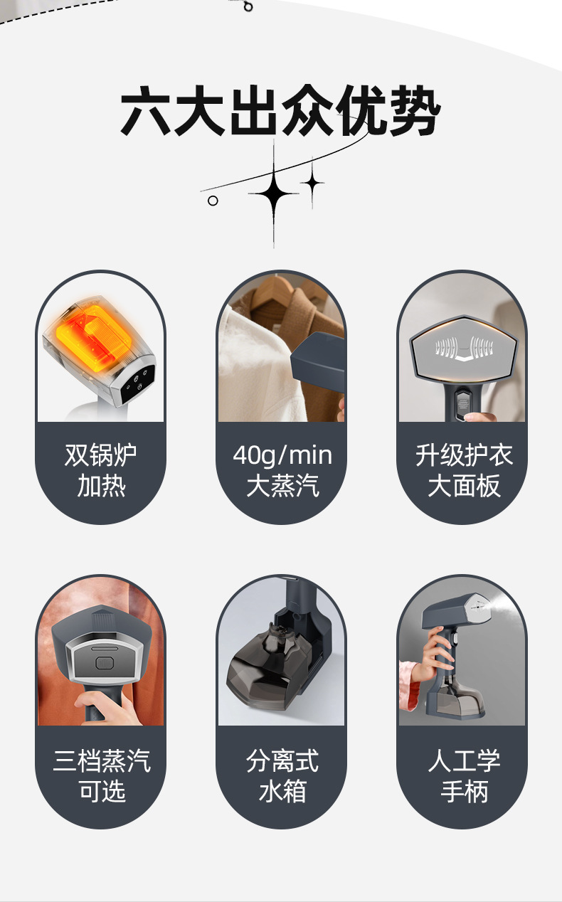 新款跨境手持挂烫机干湿两用蒸汽电熨斗便携式大功率蒸汽刷熨烫机