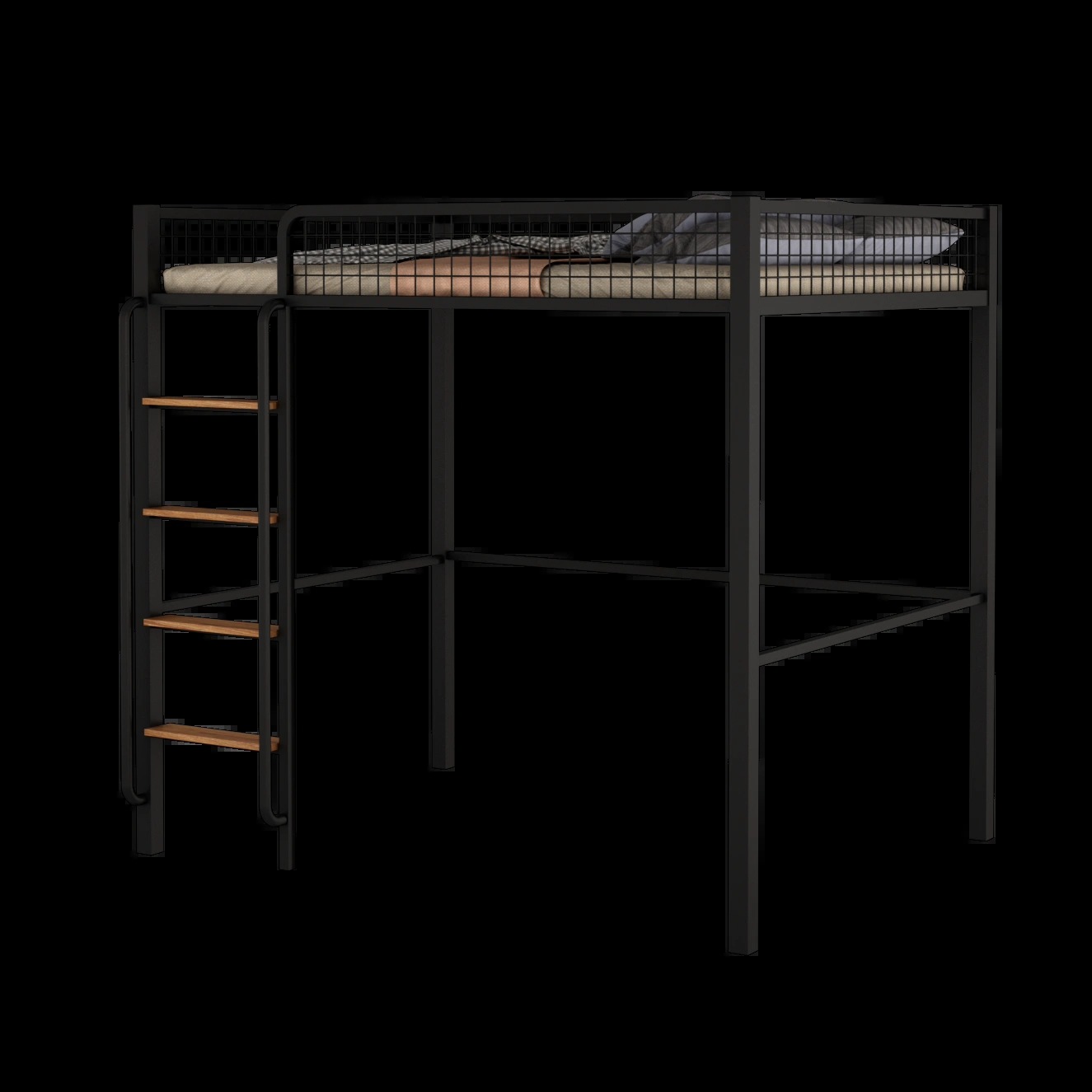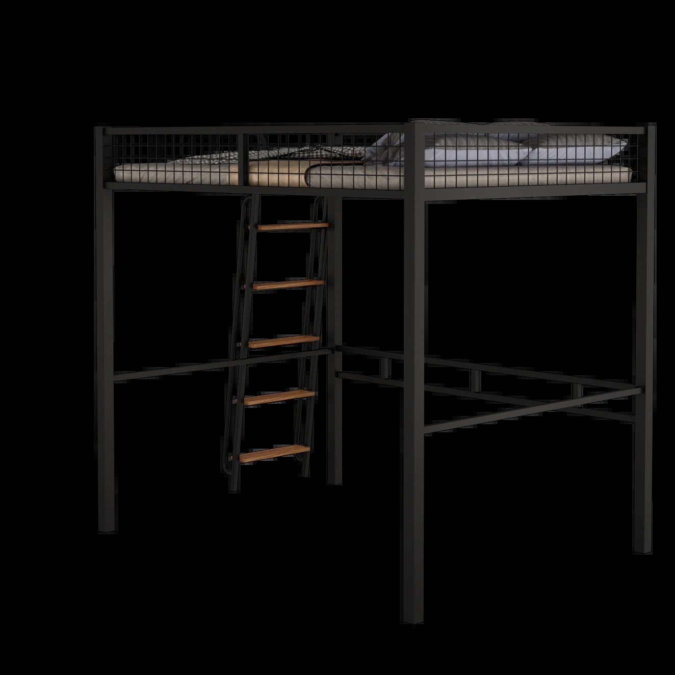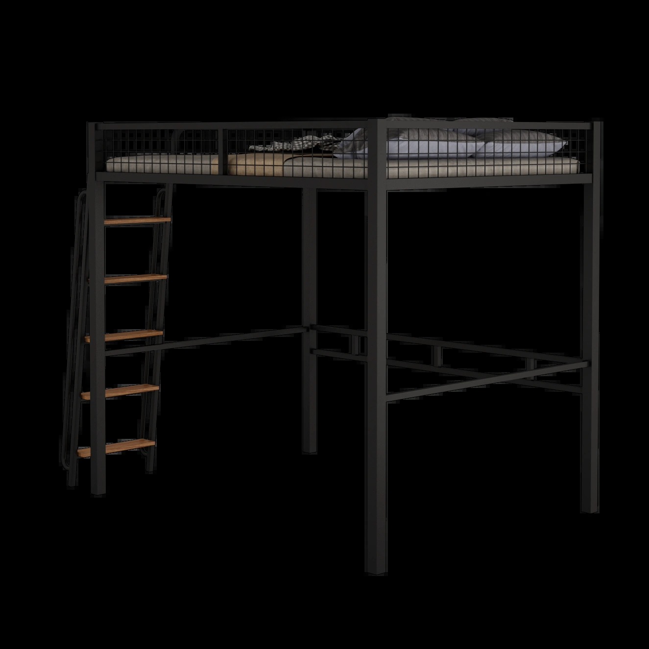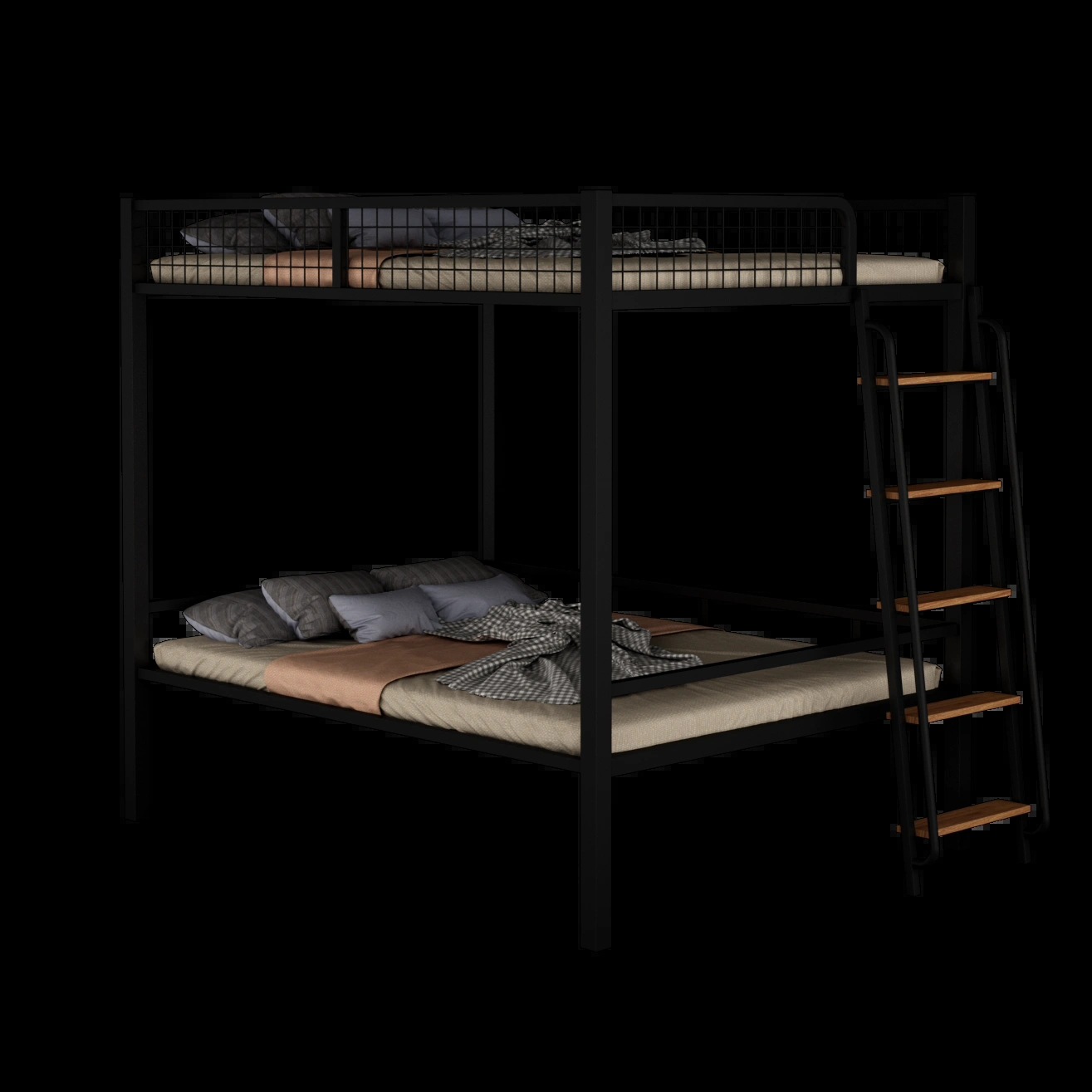 • 검정색 이층침대(계단 오른쪽 벽에 기대어 있음)
