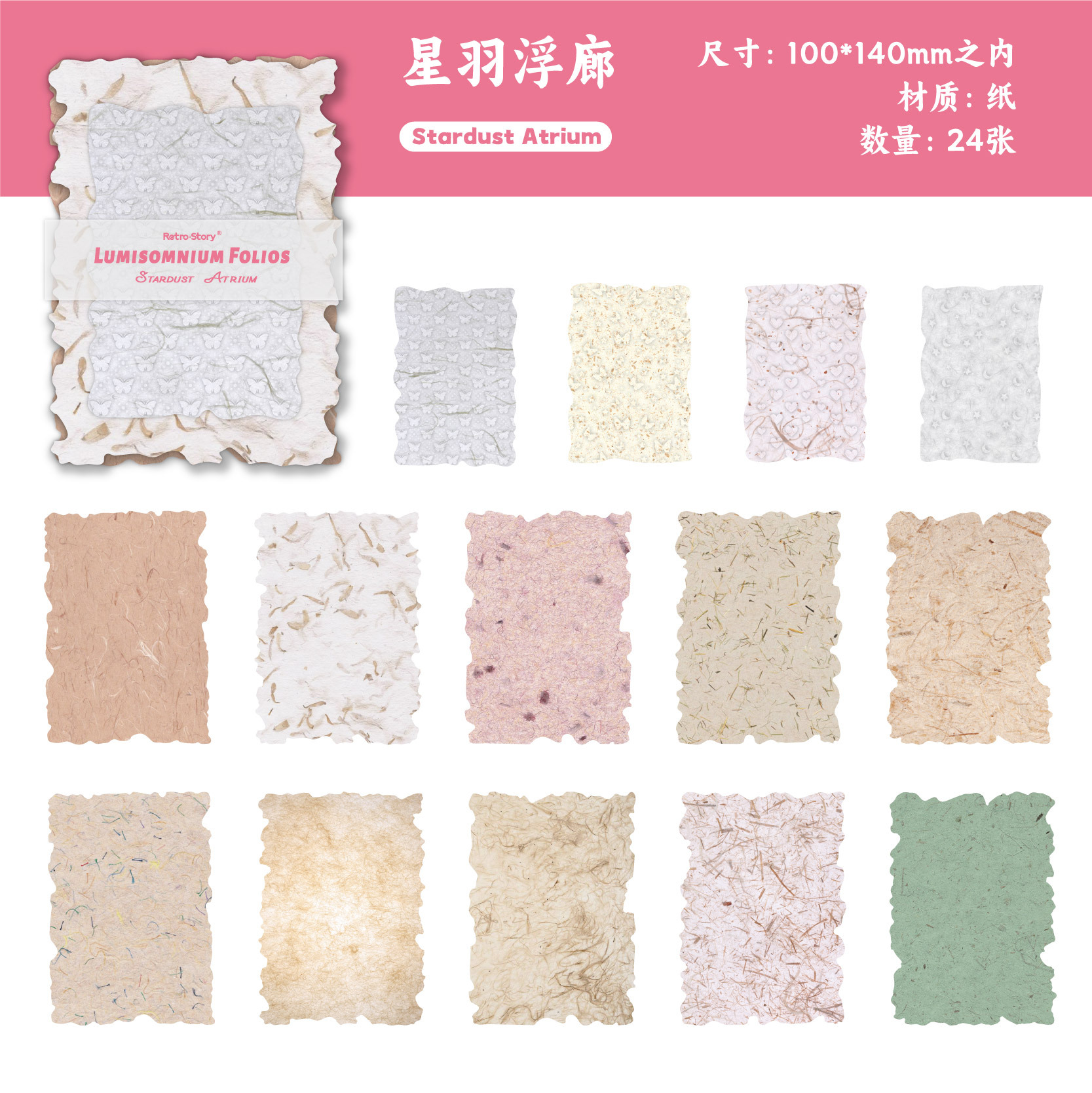 레트로 스토리 소재 종이 드림 드림 플로팅 라이트 컬렉션 시리즈 입체 릴리프 콜라주 핸드북 장식 소재 24장